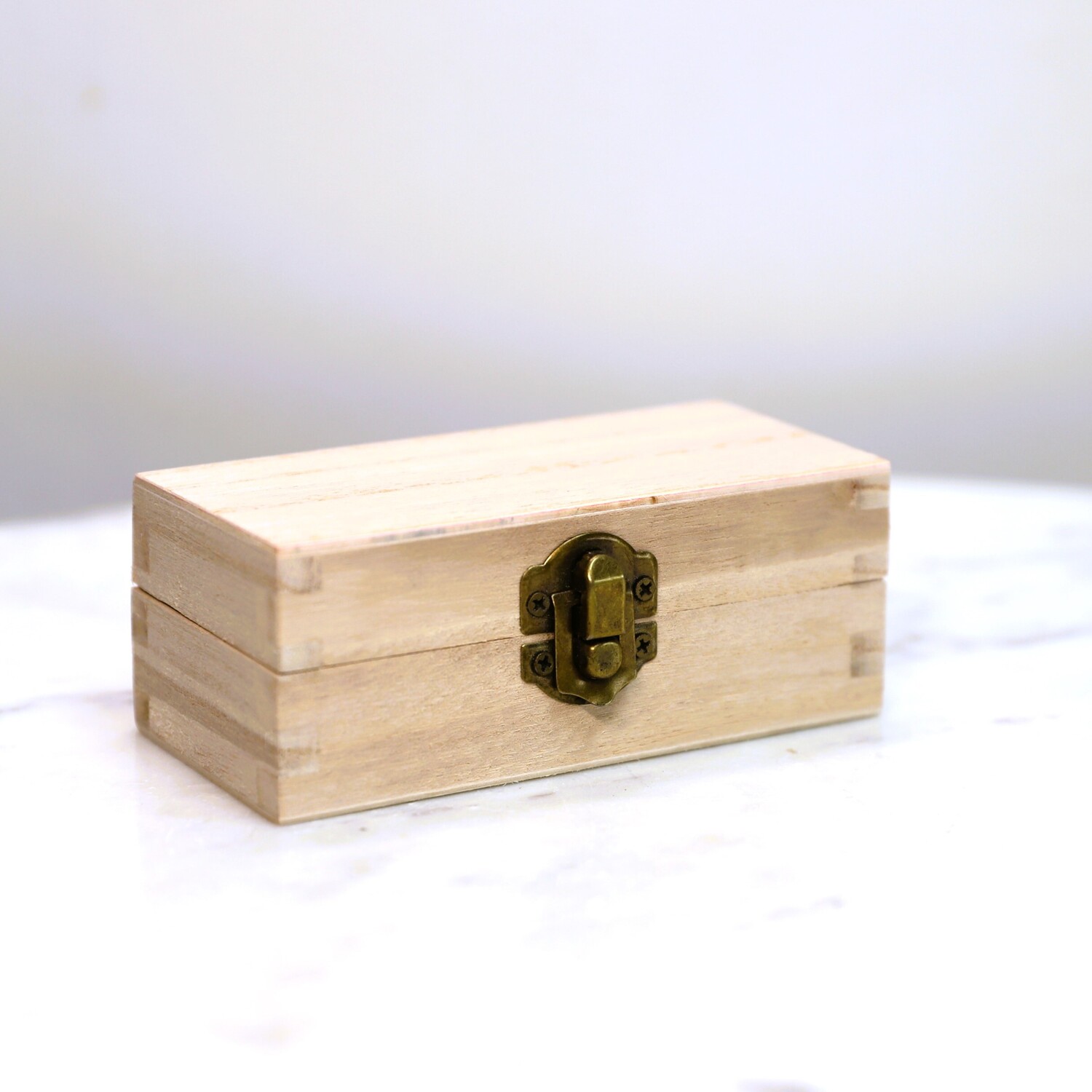 Plus Free natural soft wood storage box approx 45mm h x 115mm w x 55mm d.