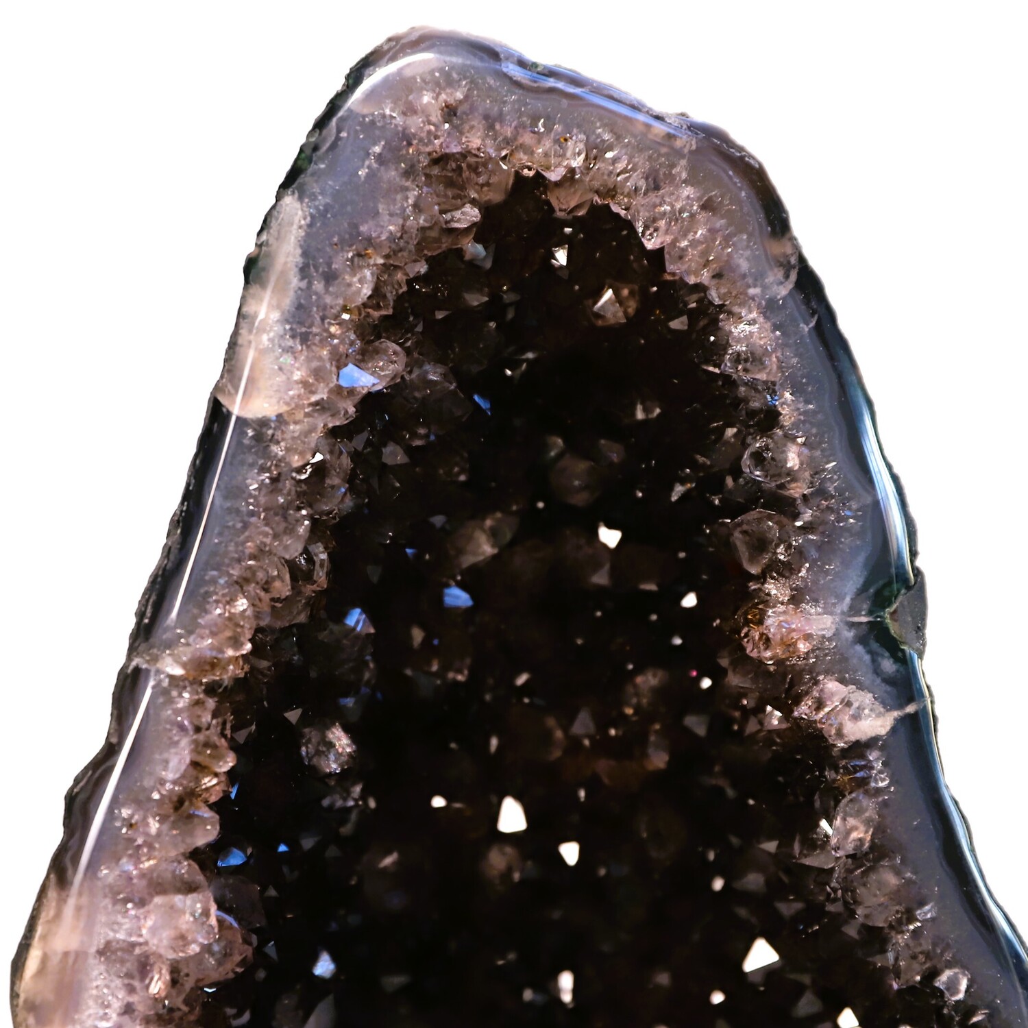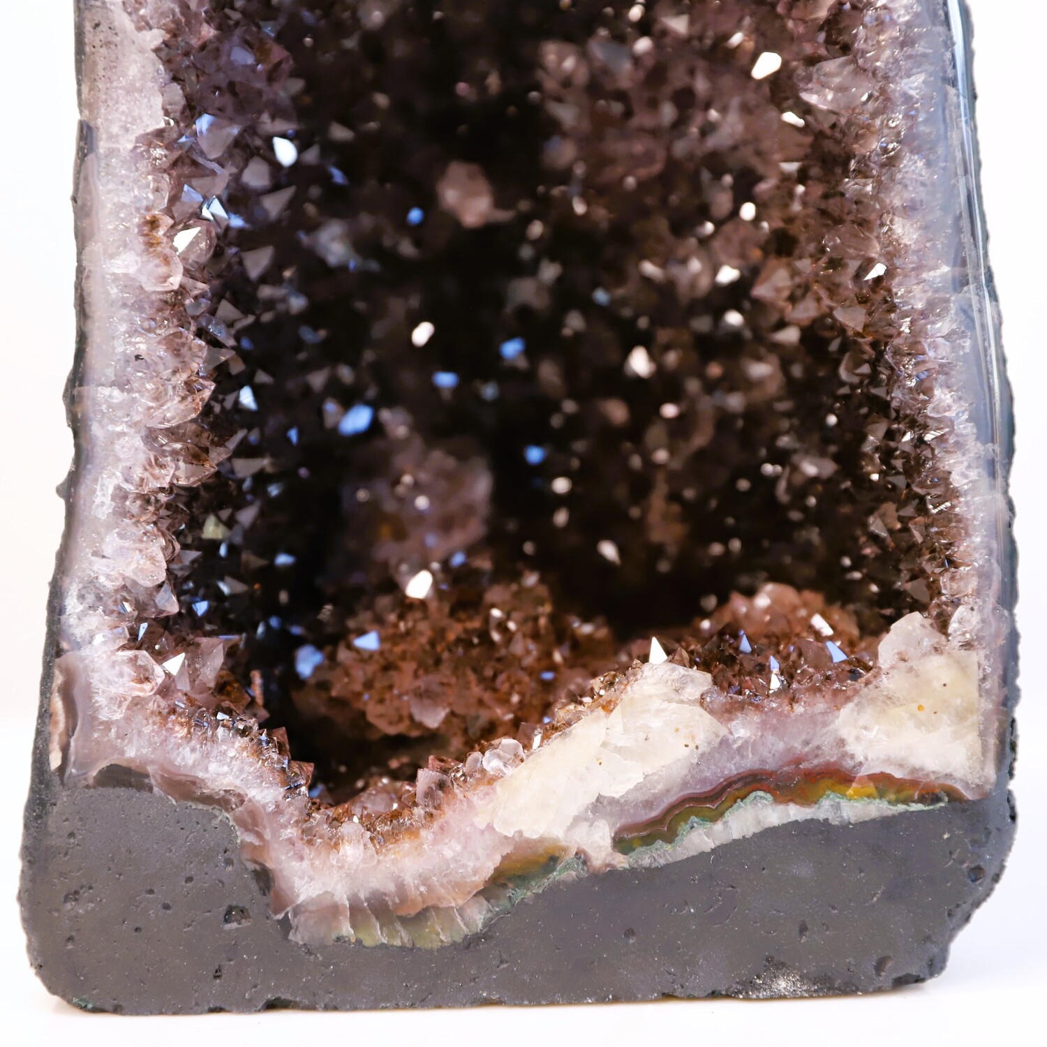 Geology: Amethyst is a variety of Quartz formed in the Earth from a combination of minerals, extreme heat and water, over 130 million years ago. It is found inside pyrogenic volcanic rocks commonly known as Basalts. Amethyst forms in fissures of volcanic rocks where there was once very hot volcanic lava, (50-250°c) silica enriched water, trace amounts (10-100ppm) of ferric iron (Fe3+).