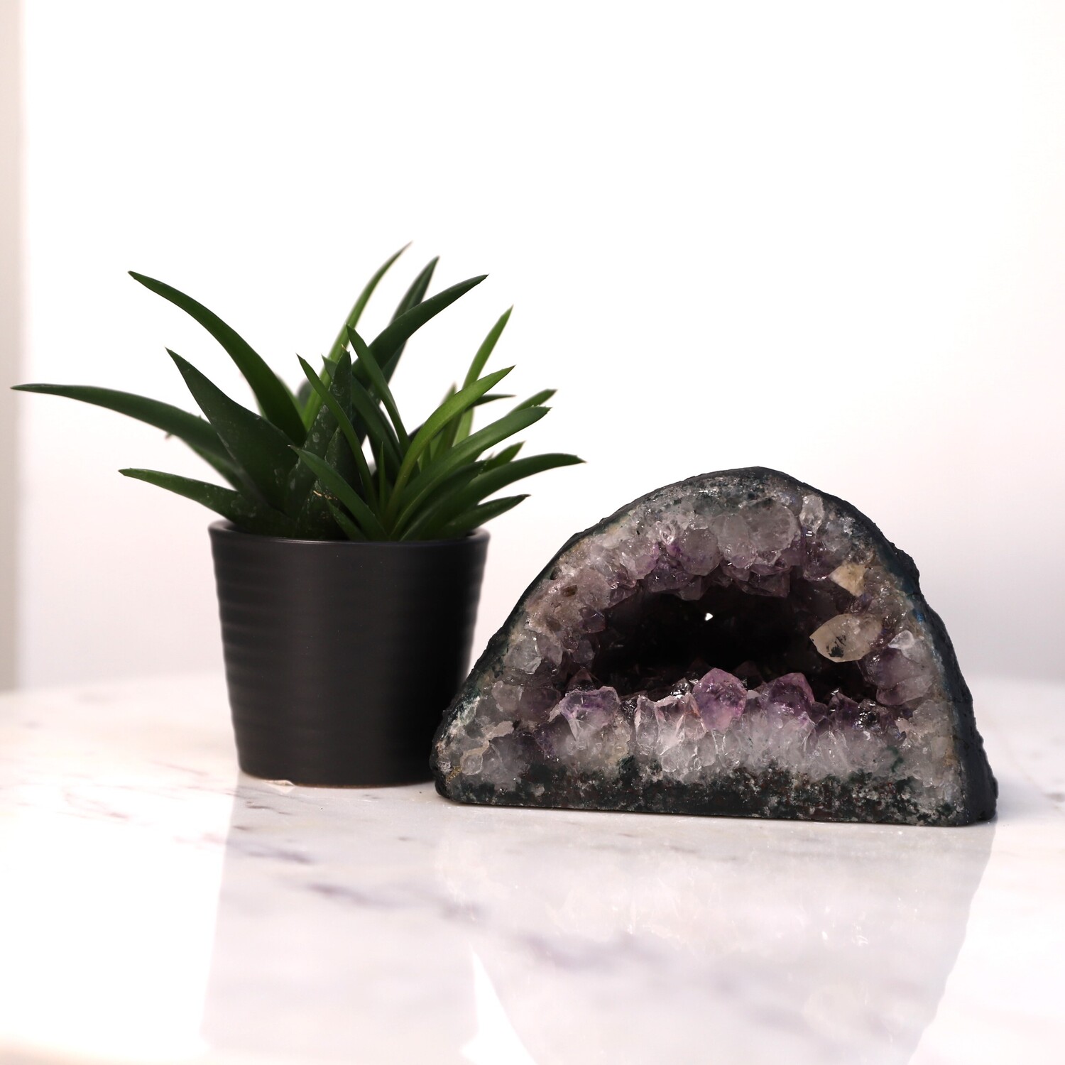 Geology: Amethyst is a variety of Quartz formed in the Earth from a combination of minerals, extreme heat and water, over 130 million years ago. It is found inside pyrogenic volcanic rocks commonly known as Basalts. Amethyst forms in fissures of volcanic rocks where there was once very hot volcanic lava, (50-250°c) silica enriched water, trace amounts (10-100ppm) of ferric iron (Fe3+).