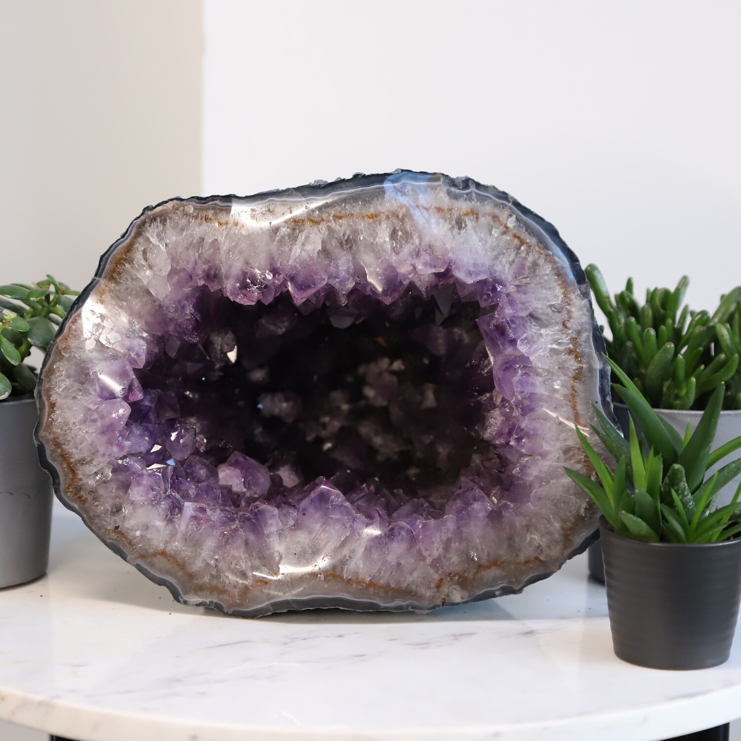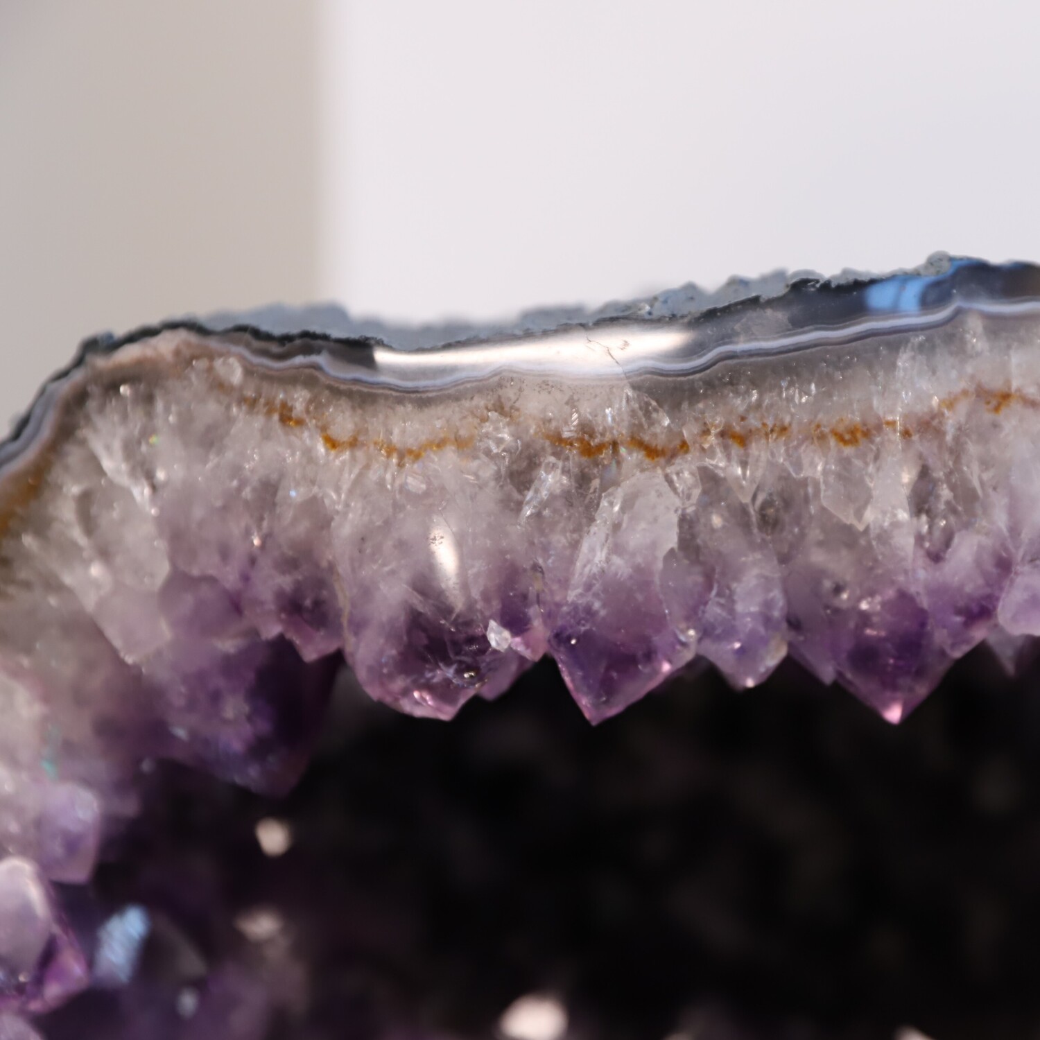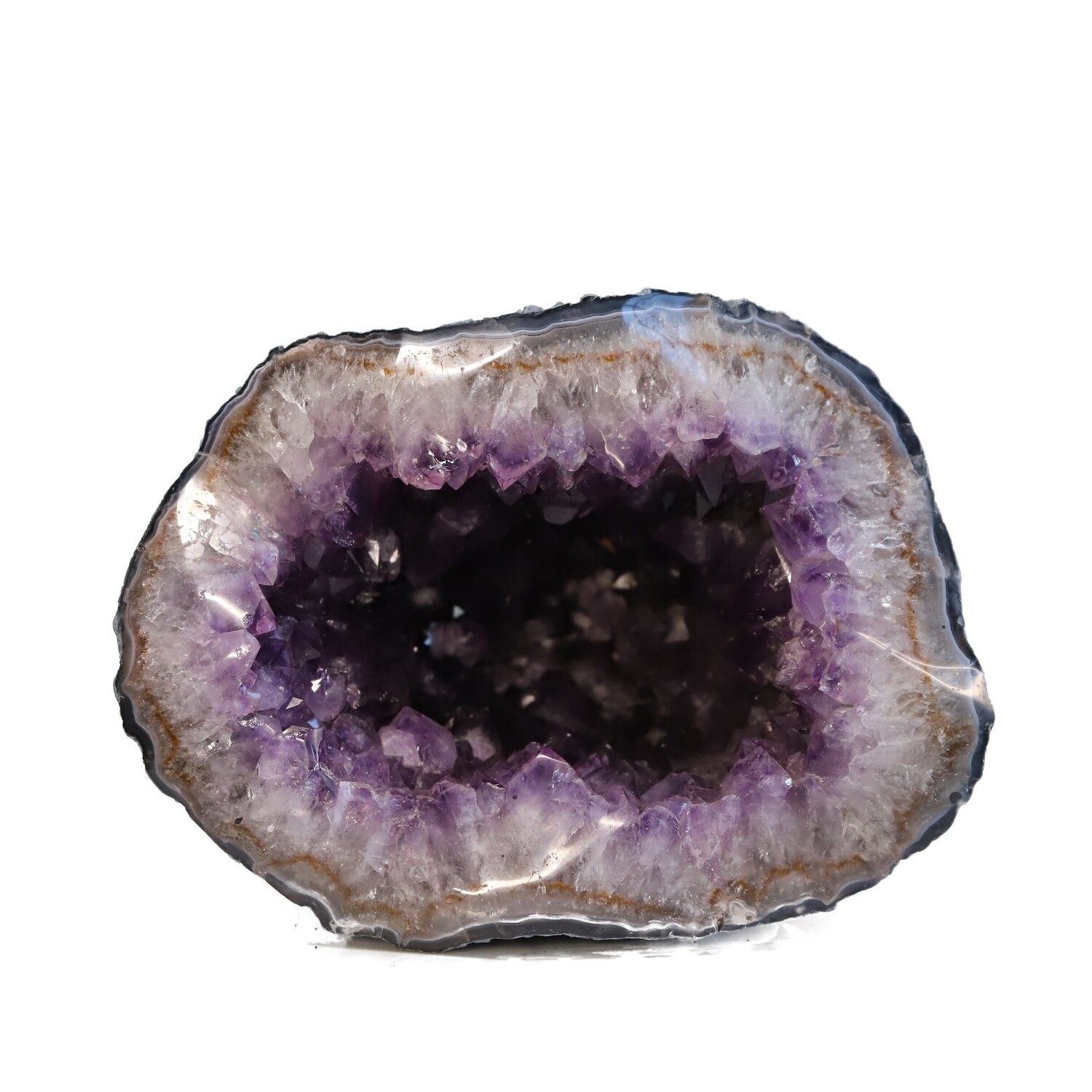 Geology: Amethyst is a variety of Quartz formed in the Earth from a combination of minerals, extreme heat and water, over 130 million years ago. It is found inside pyrogenic volcanic rocks commonly known as Basalts. Amethyst forms in fissures of volcanic rocks where there was once very hot volcanic lava, (50-250°c) silica enriched water, trace amounts (10-100ppm) of ferric iron (Fe3+).