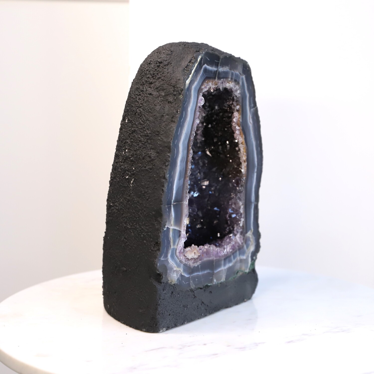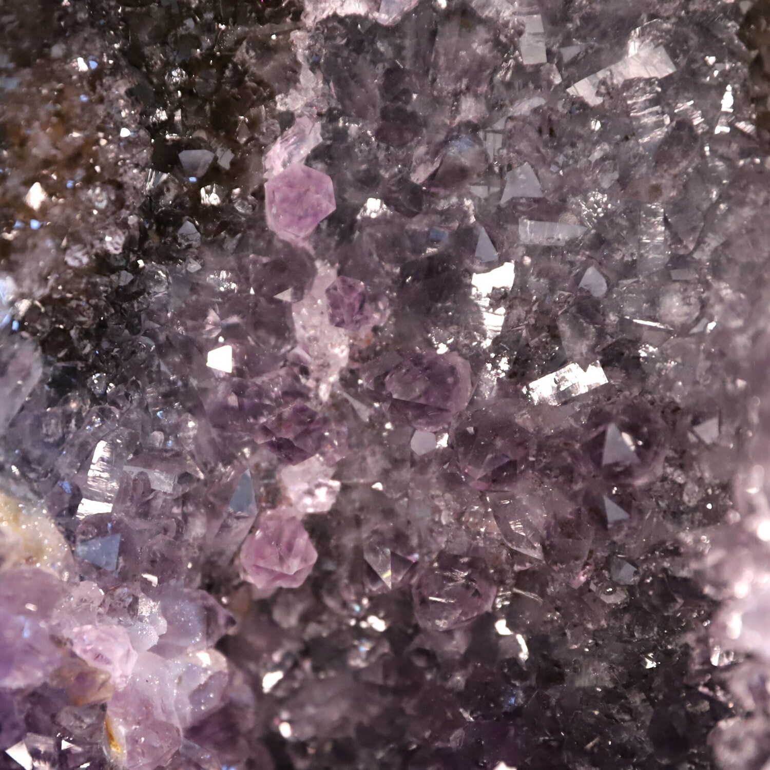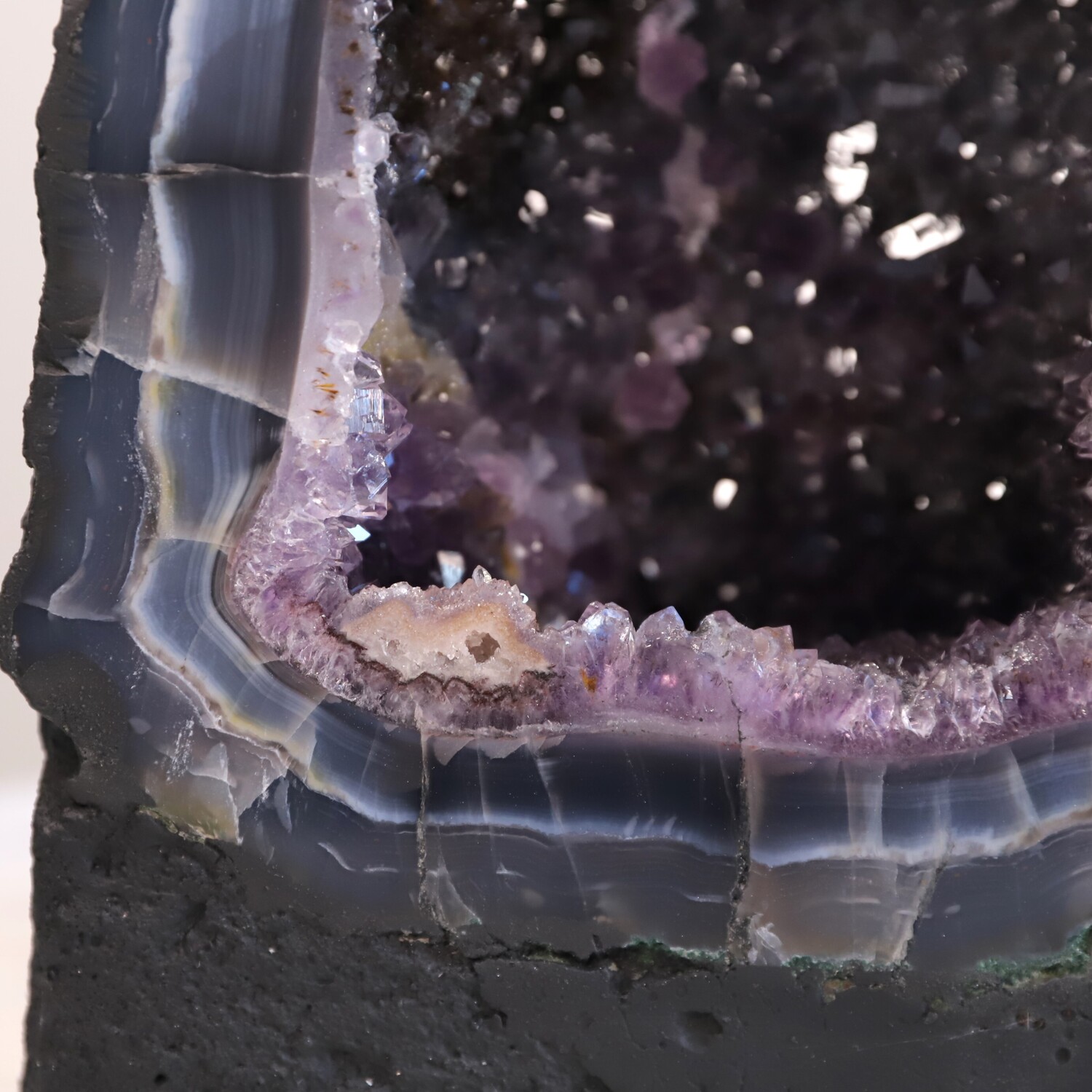 Geology: Amethyst is a variety of Quartz formed in the Earth from a combination of minerals, extreme heat and water, over 130 million years ago. It is found inside pyrogenic volcanic rocks commonly known as Basalts. Amethyst forms in fissures of volcanic rocks where there was once very hot volcanic lava, (50-250°c) silica enriched water, trace amounts (10-100ppm) of ferric iron (Fe3+).