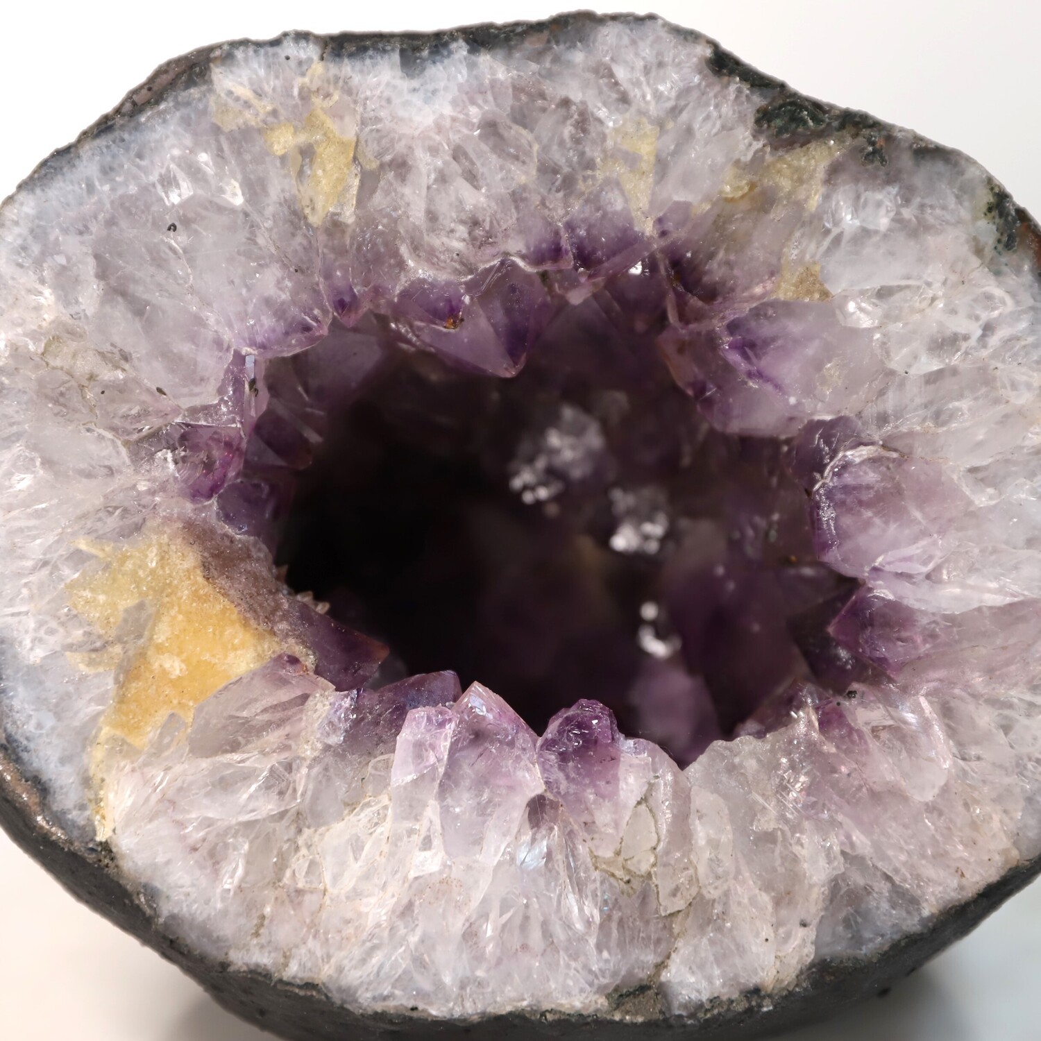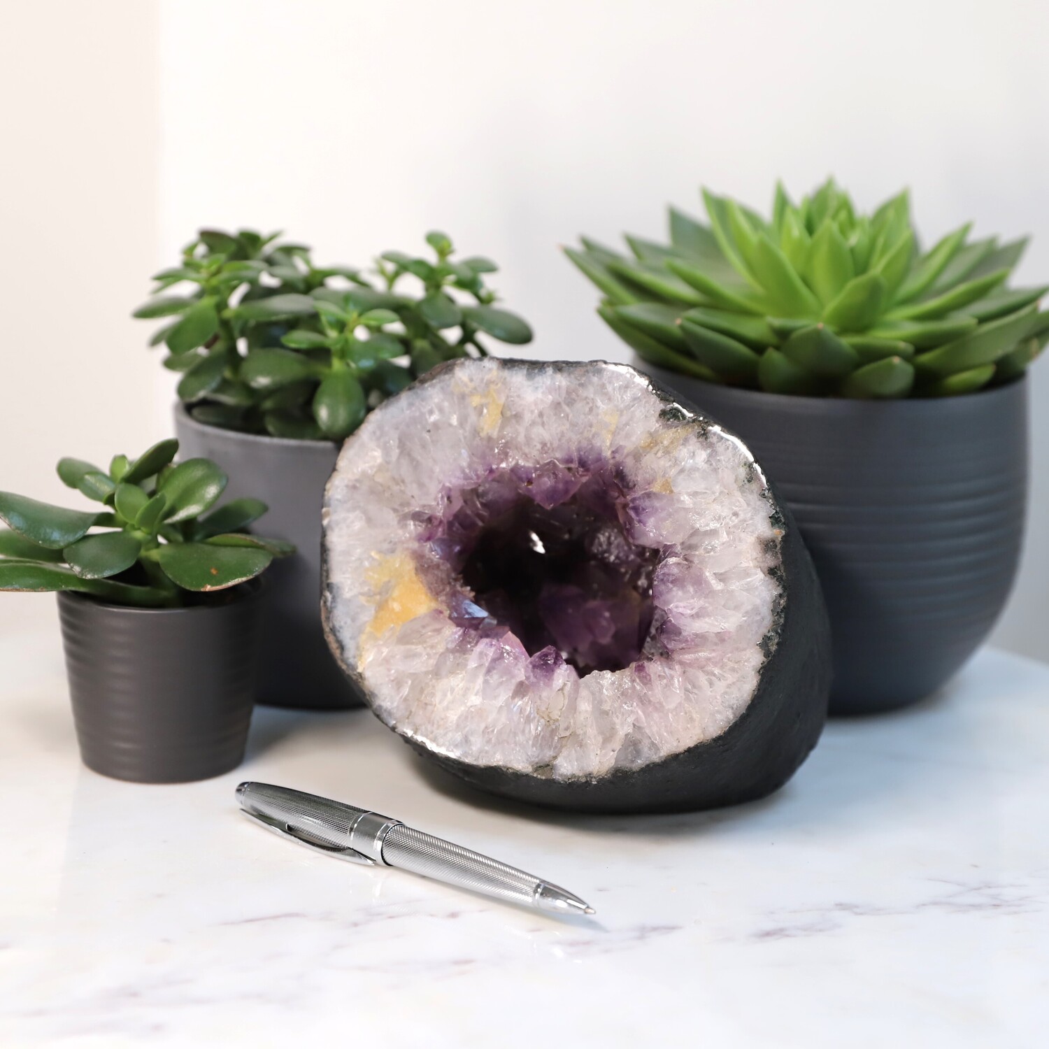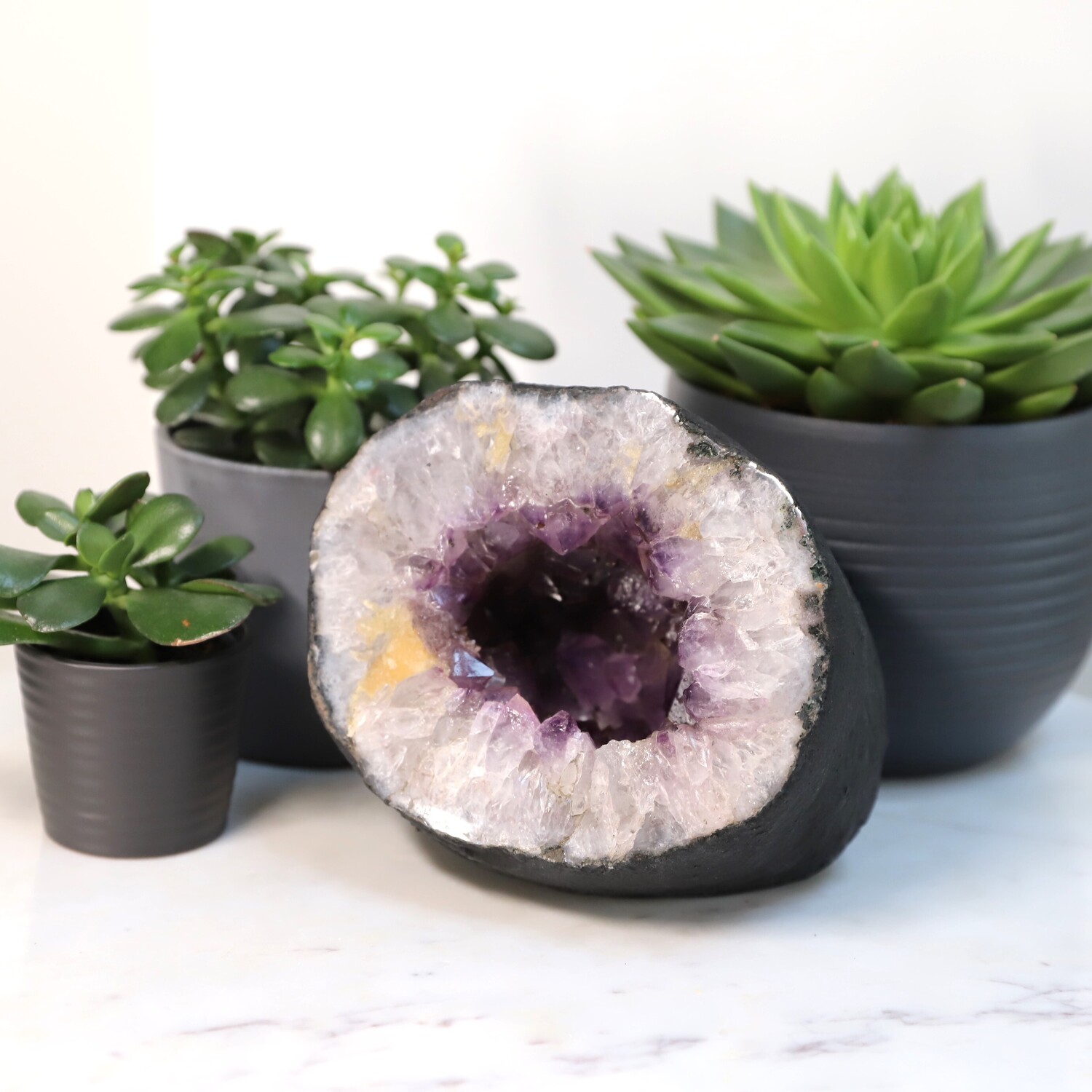 Geology: Amethyst is a variety of Quartz formed in the Earth from a combination of minerals, extreme heat and water, over 130 million years ago. It is found inside pyrogenic volcanic rocks commonly known as Basalts. Amethyst forms in fissures of volcanic rocks where there was once very hot volcanic lava, (50-250°c) silica enriched water, trace amounts (10-100ppm) of ferric iron (Fe3+).