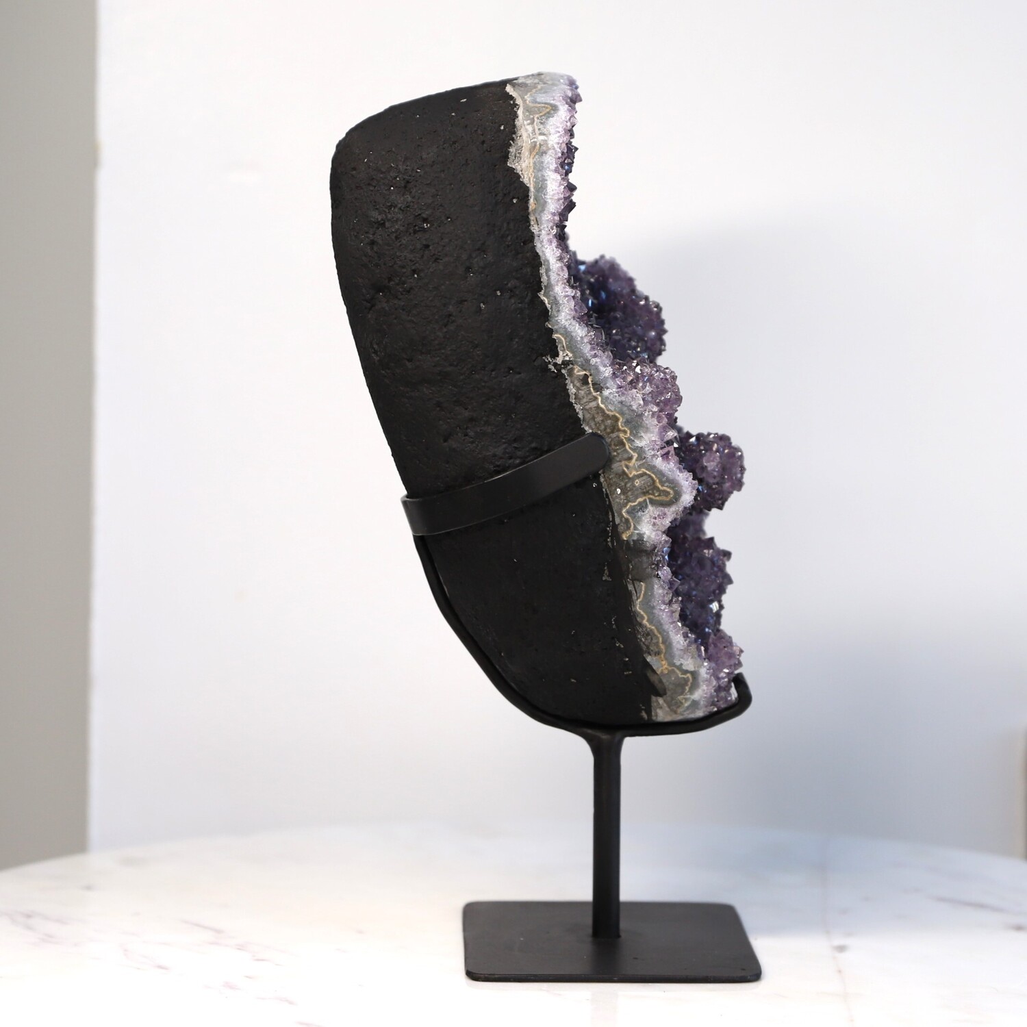 Geology: Amethyst is a variety of Quartz formed in the Earth from a combination of minerals, extreme heat and water, over 130 million years ago. It is found inside pyrogenic volcanic rocks commonly known as Basalts. Amethyst forms in fissures of volcanic rocks where there was once very hot volcanic lava, (50-250°c) silica enriched water, trace amounts (10-100ppm) of ferric iron (Fe3+).