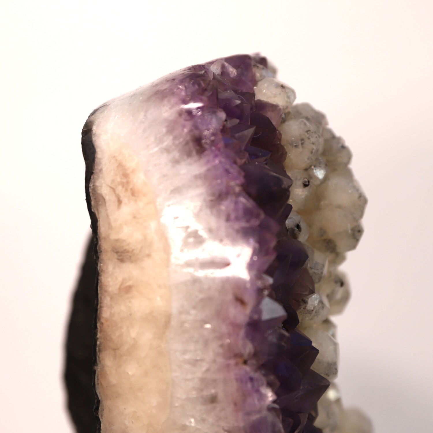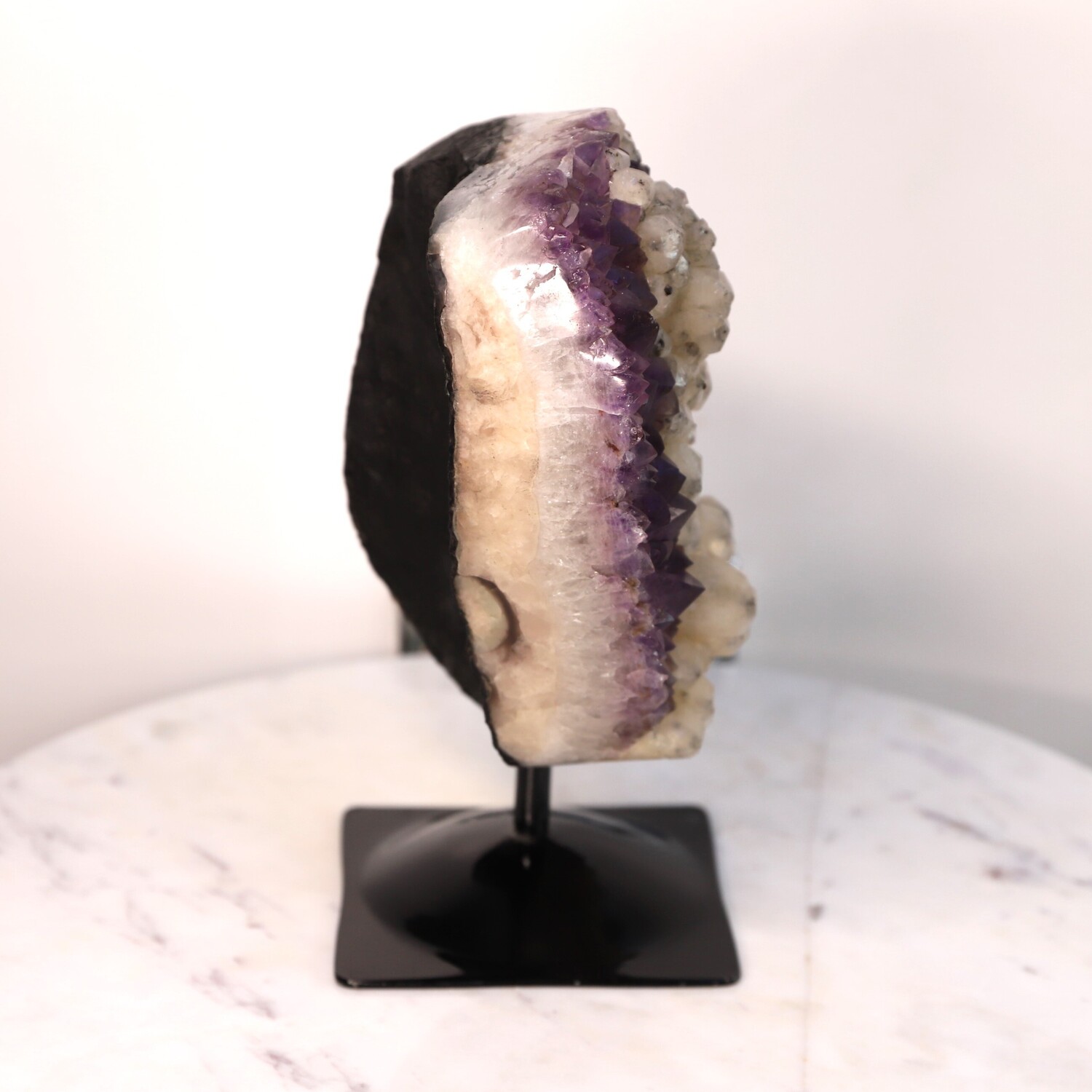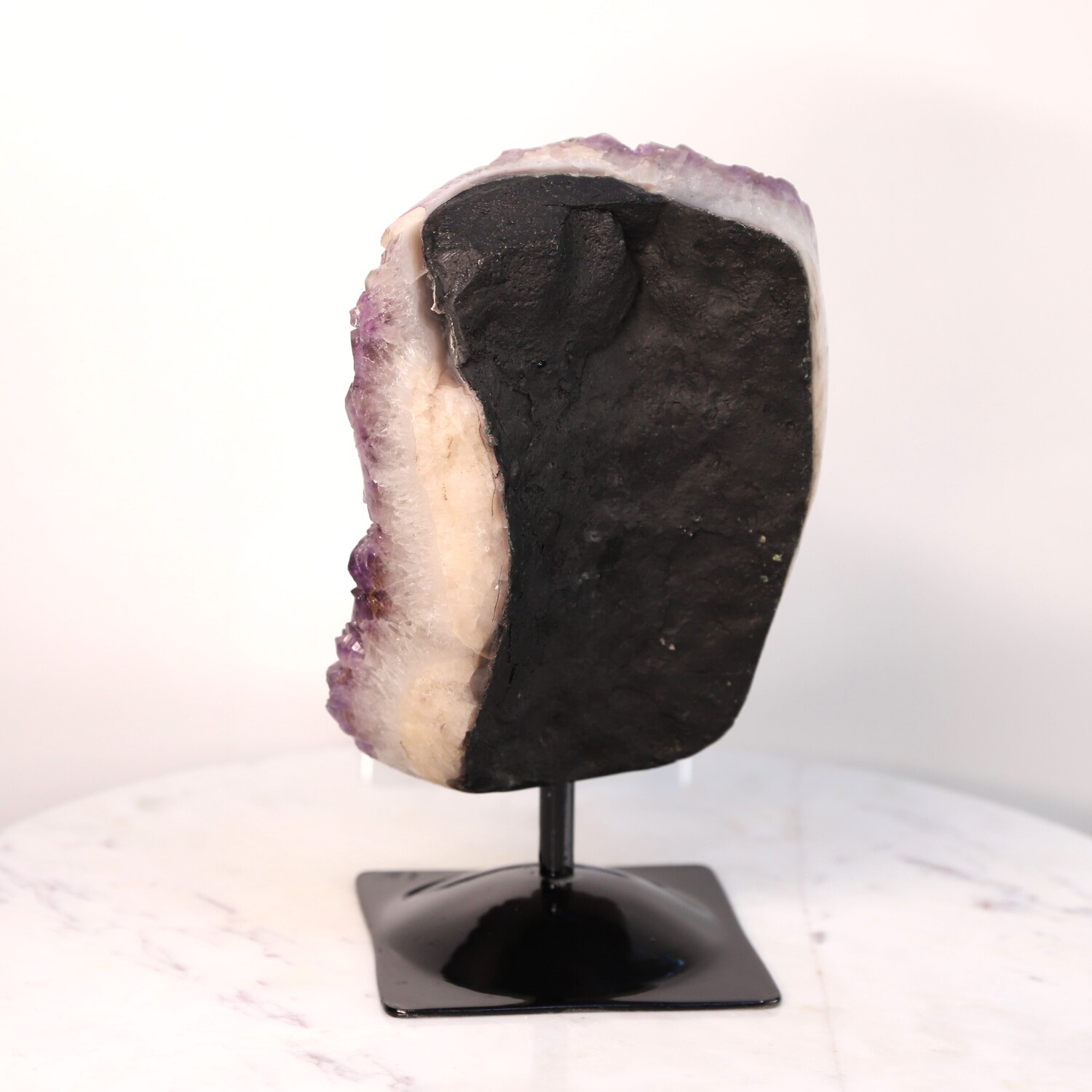Geology: Amethyst is a variety of Quartz formed in the Earth from a combination of minerals, extreme heat and water, over 130 million years ago. It is found inside pyrogenic volcanic rocks commonly known as Basalts. Amethyst forms in fissures of volcanic rocks where there was once very hot volcanic lava, (50-250°c) silica enriched water, trace amounts (10-100ppm) of ferric iron (Fe3+).