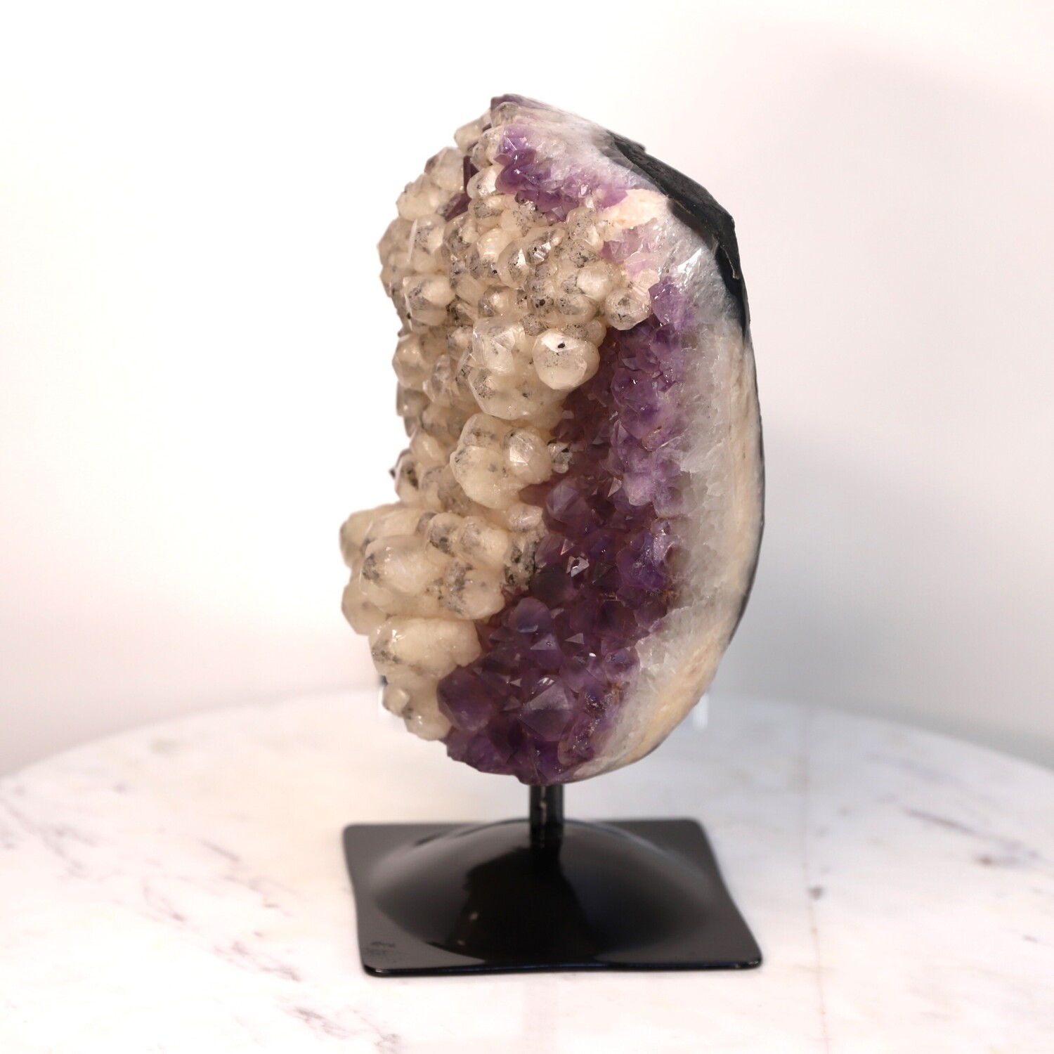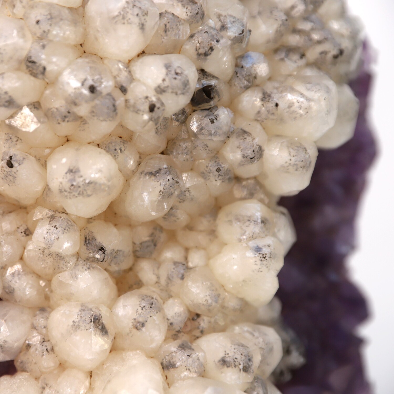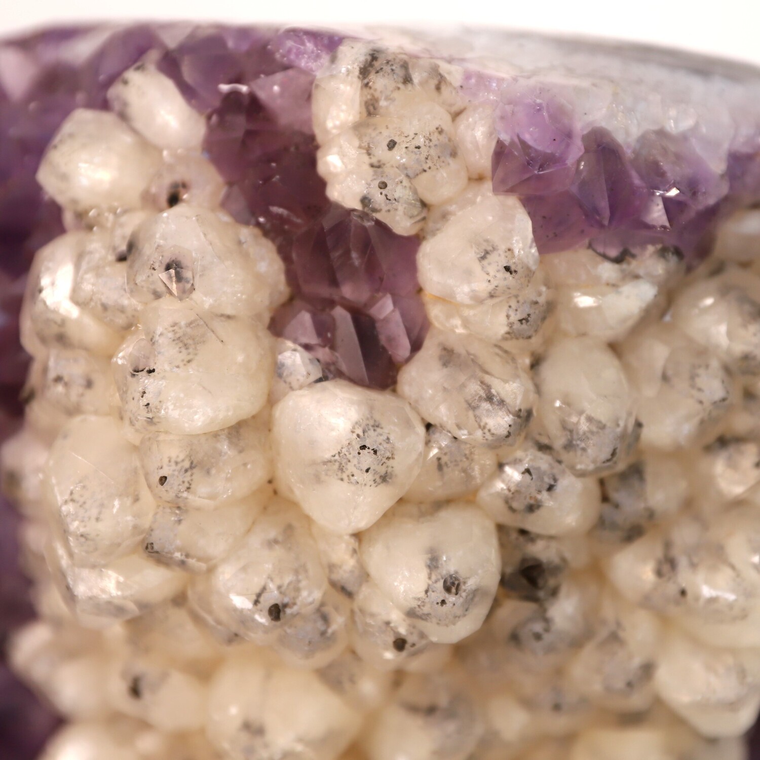 Geology: Amethyst is a variety of Quartz formed in the Earth from a combination of minerals, extreme heat and water, over 130 million years ago. It is found inside pyrogenic volcanic rocks commonly known as Basalts. Amethyst forms in fissures of volcanic rocks where there was once very hot volcanic lava, (50-250°c) silica enriched water, trace amounts (10-100ppm) of ferric iron (Fe3+).