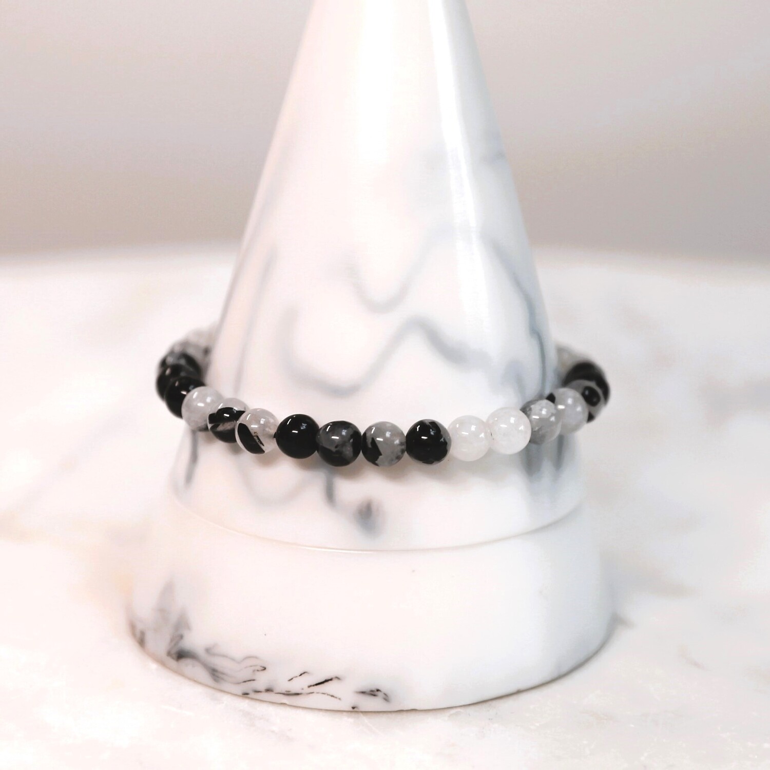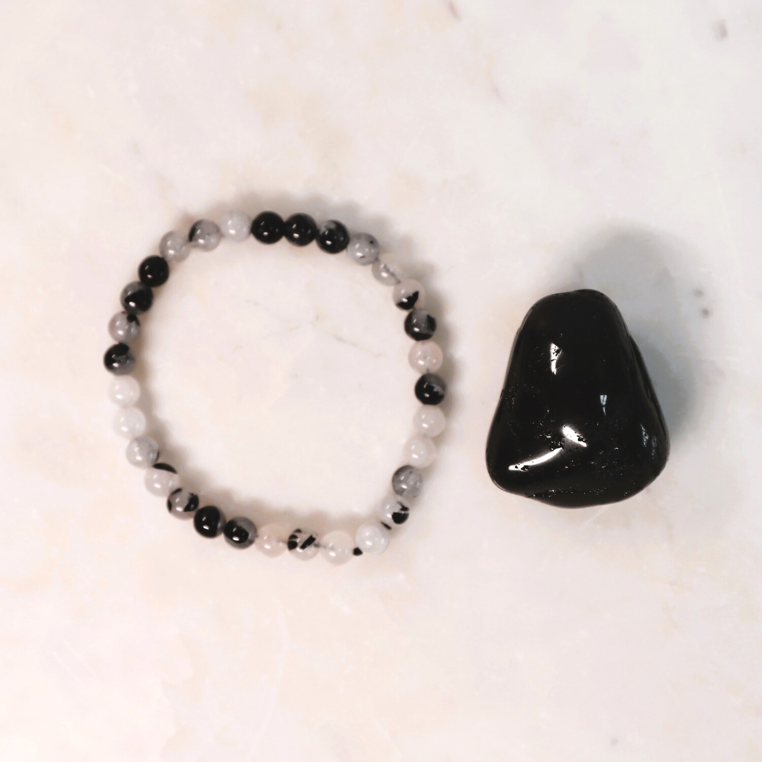 Black Tourmaline and Quartz Beaded Bracelet