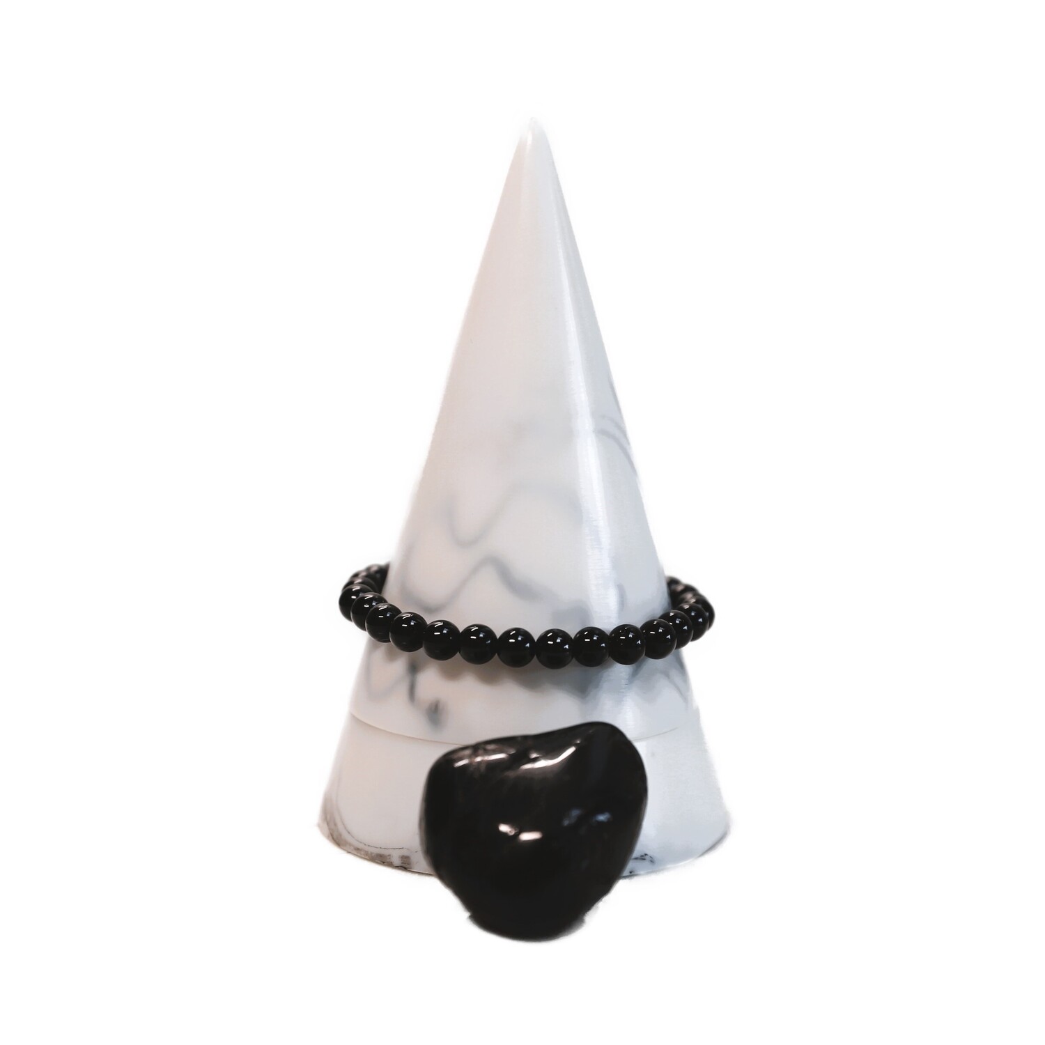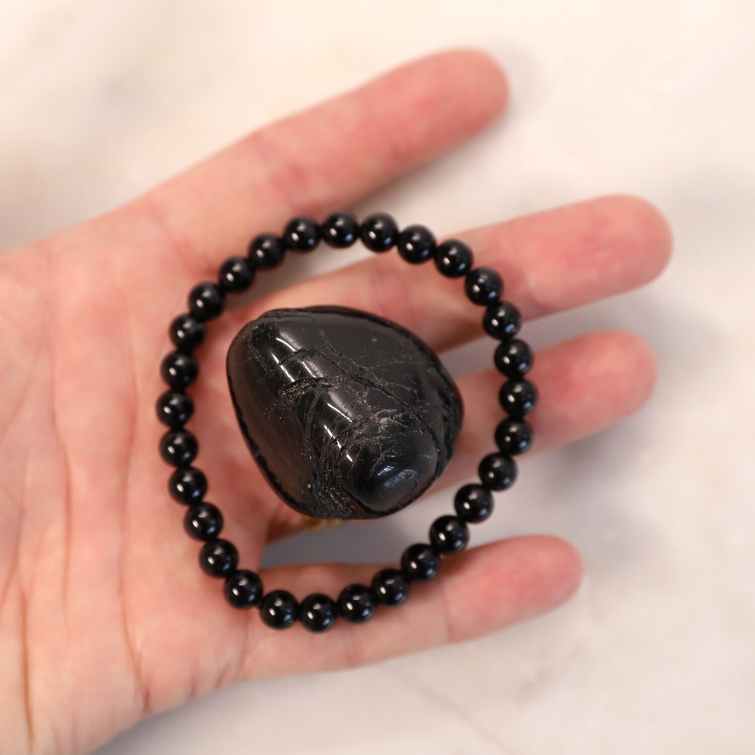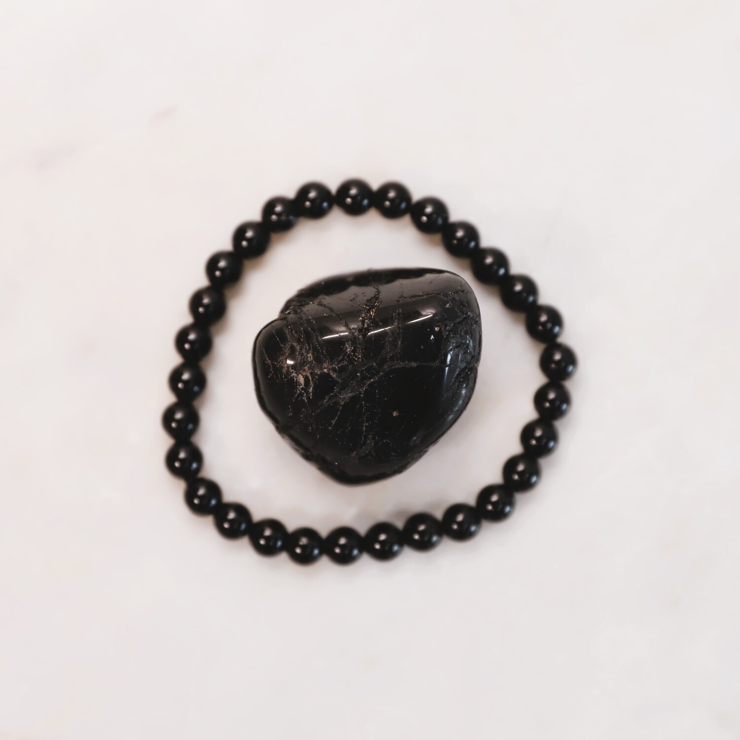 Geology: Black Tourmaline belongs to the trigonal crystal system and part of the aluminum borosilicate family and it specifically includes magnesium, iron and other metal elements that determine its colour. It’s found on every continent in the world. Tourmaline is produced in pegmatites. These are voids deep underground that are filled with hot liquid that is rich in different minerals like iron and silicone. When the liquid begins to cool, the minerals crystalize to form Tourmaline Crystals.