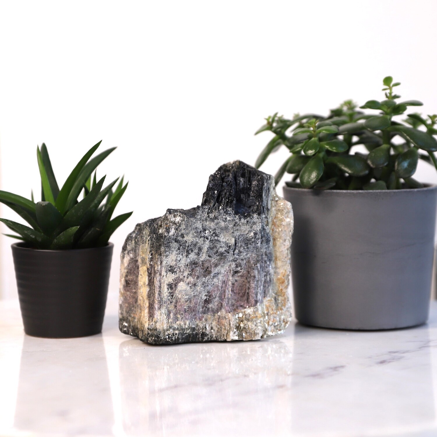 Geology: Black Tourmaline belongs to the trigonal crystal system and part of the aluminium borosilicate family and it specifically includes magnesium, iron and other metal elements that determine its colour. It’s found on every continent in the world. Tourmaline is produced in pegmatites. These are voids deep underground that are filled with hot liquid that is rich in different minerals like iron and silicone. When the liquid begins to cool, the minerals crystalize to form Tourmaline Crystals.
