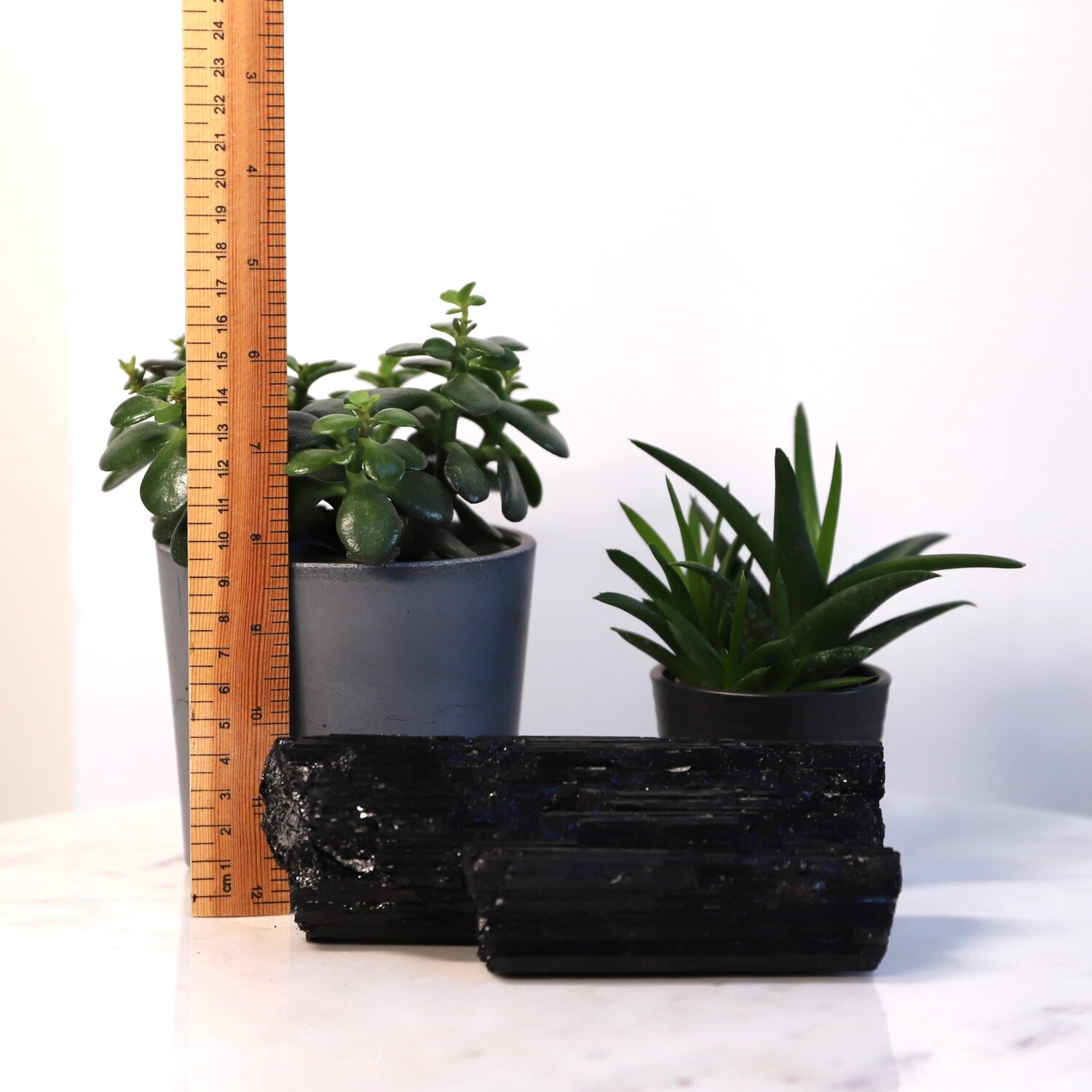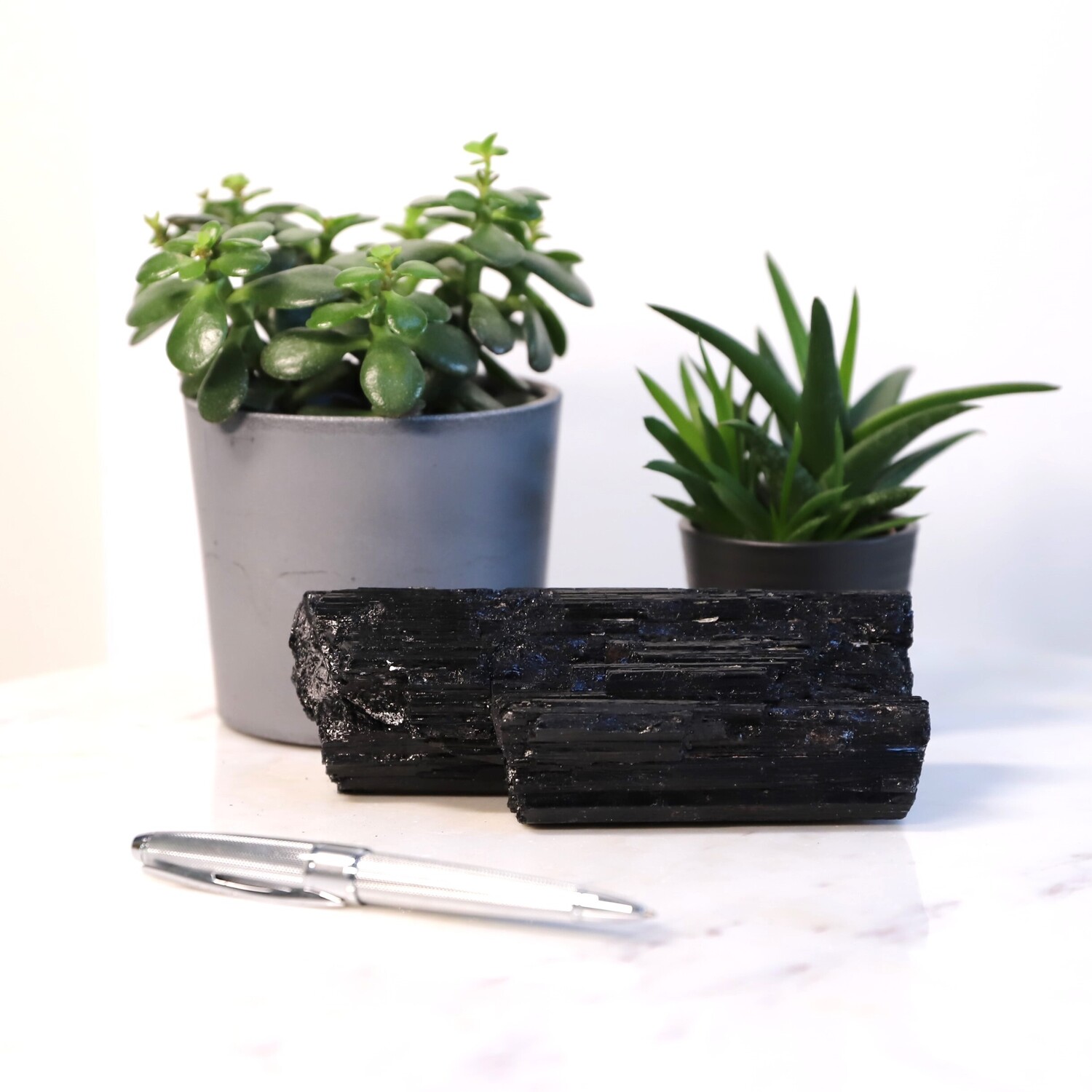 Geology: Black Tourmaline belongs to the trigonal crystal system and part of the aluminium borosilicate family and it specifically includes magnesium, iron and other metal elements that determine its colour. It’s found on every continent in the world. Tourmaline is produced in pegmatites. These are voids deep underground that are filled with hot liquid that is rich in different minerals like iron and silicone. When the liquid begins to cool, the minerals crystalize to form Tourmaline Crystals.
