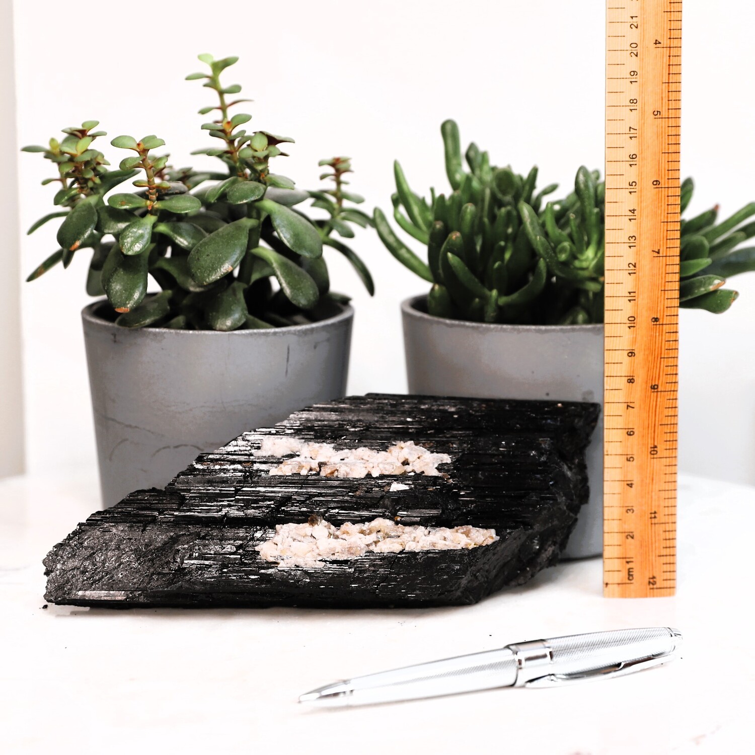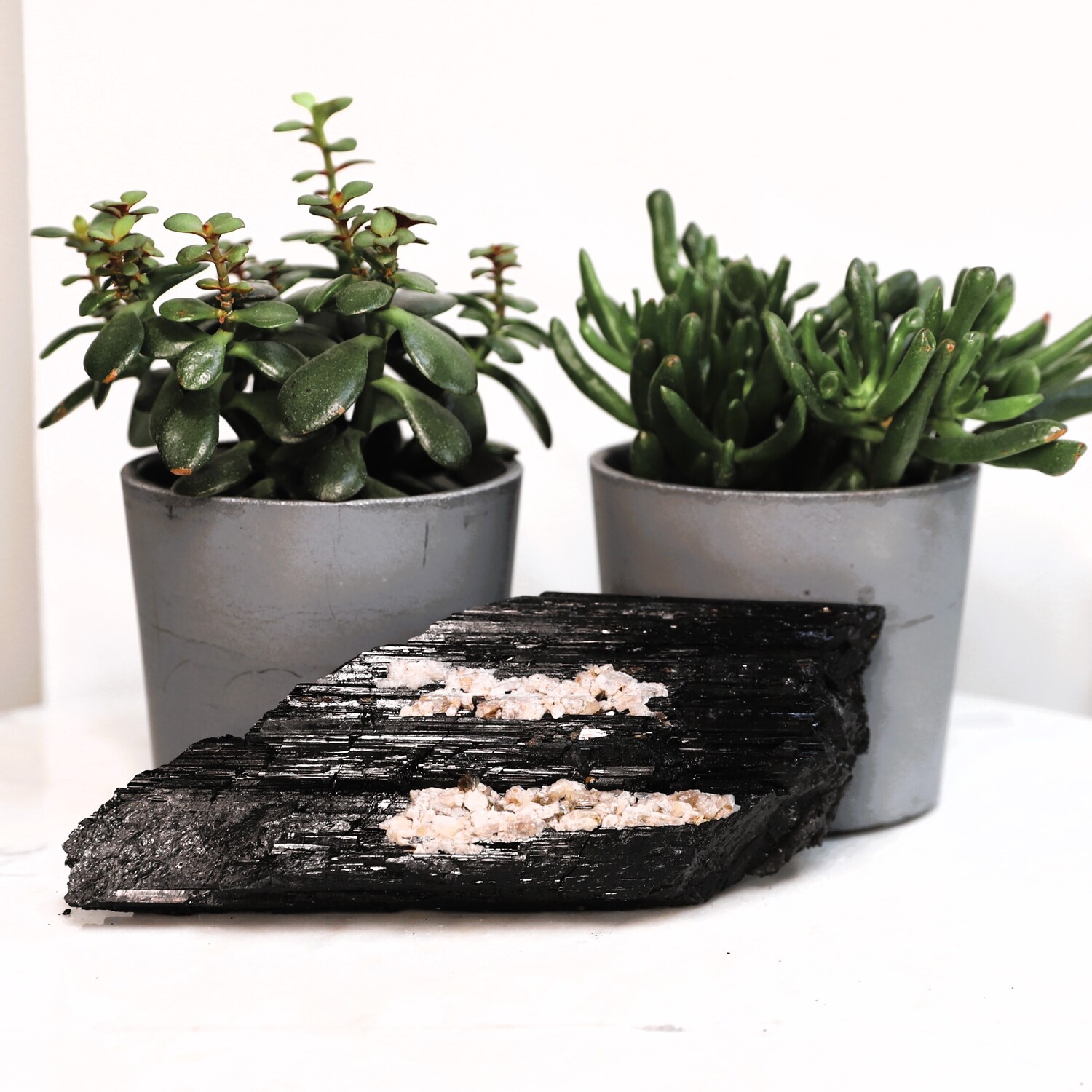 Geology: Black Tourmaline belongs to the trigonal crystal system and part of the aluminium borosilicate family and it specifically includes magnesium, iron and other metal elements that determine its colour. It’s found on every continent in the world. Tourmaline is produced in pegmatites. These are voids deep underground that are filled with hot liquid that is rich in different minerals like iron and silicone. When the liquid begins to cool, the minerals crystalize to form Tourmaline Crystals.