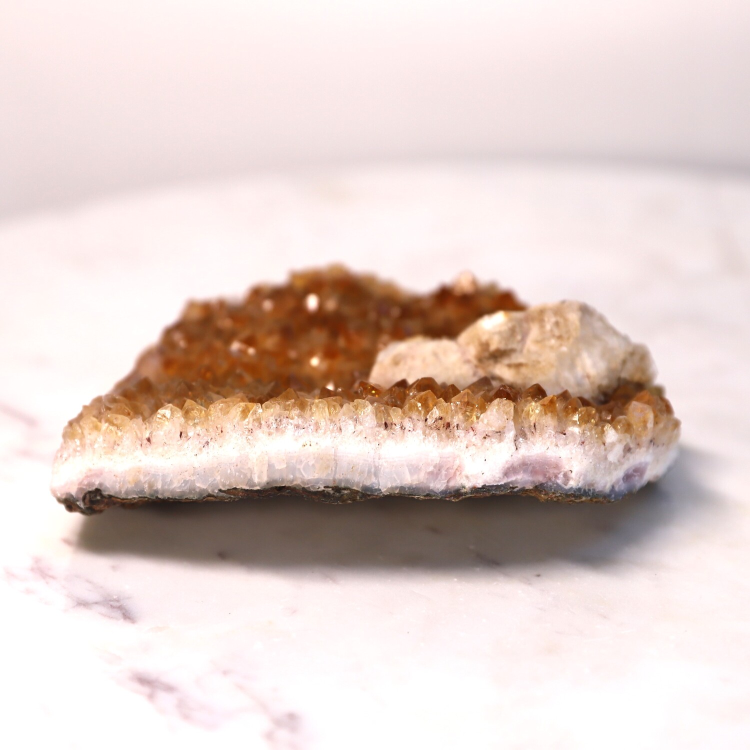 Brazilian Citrine Cluster with Calcite Cube inclusions.