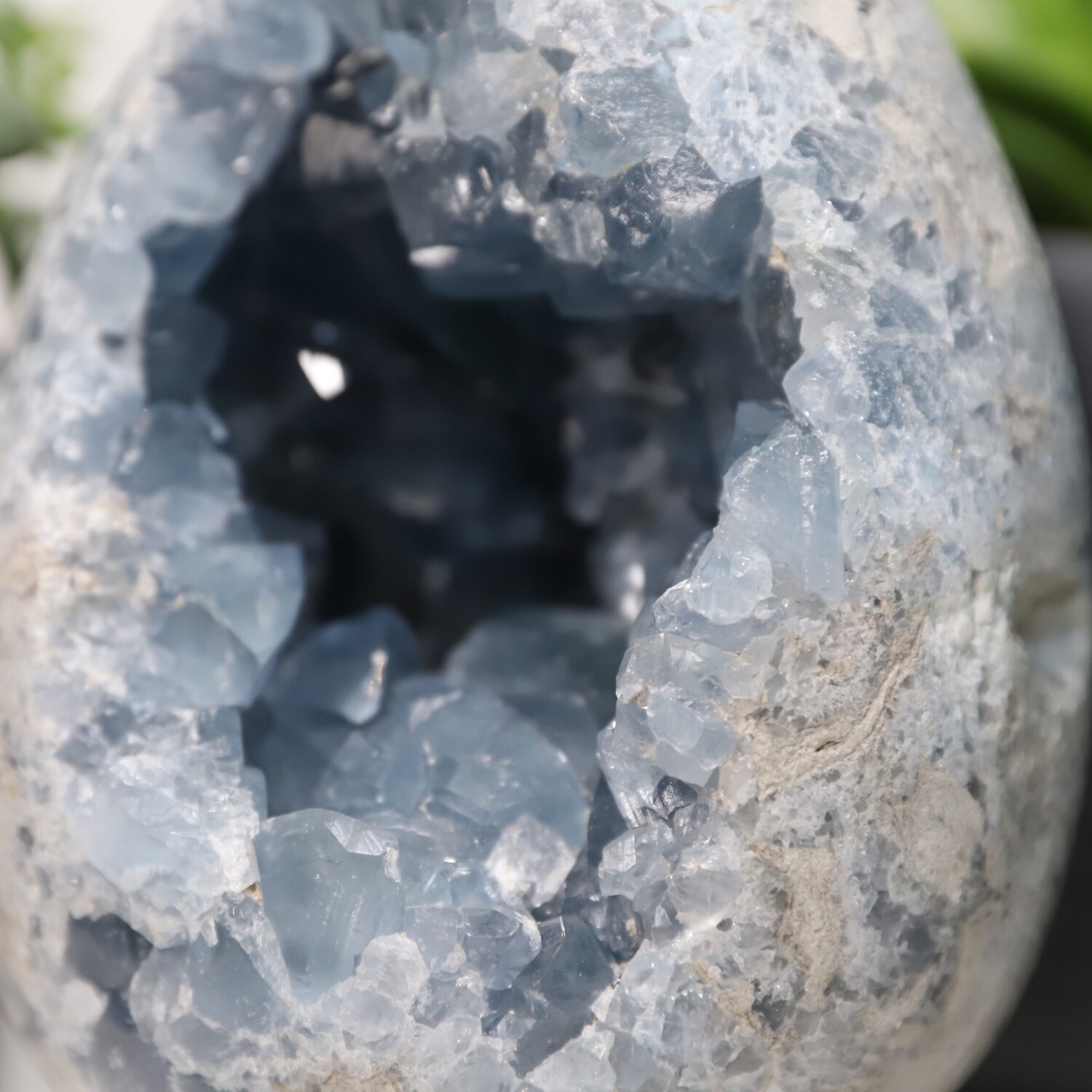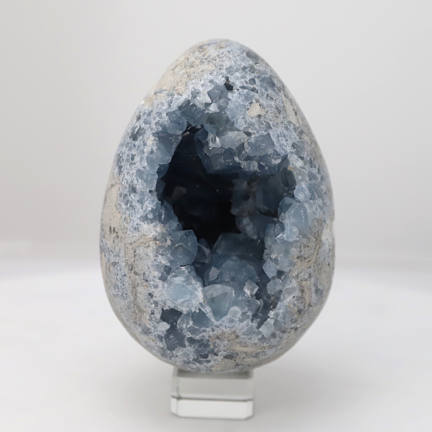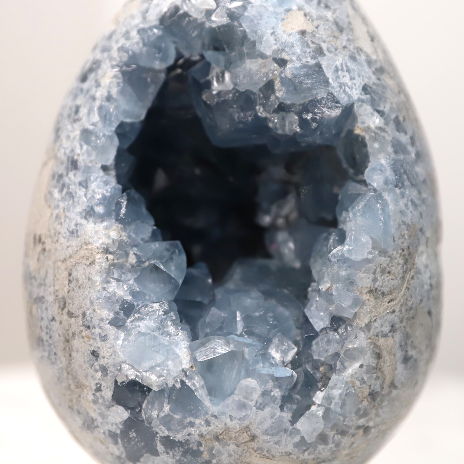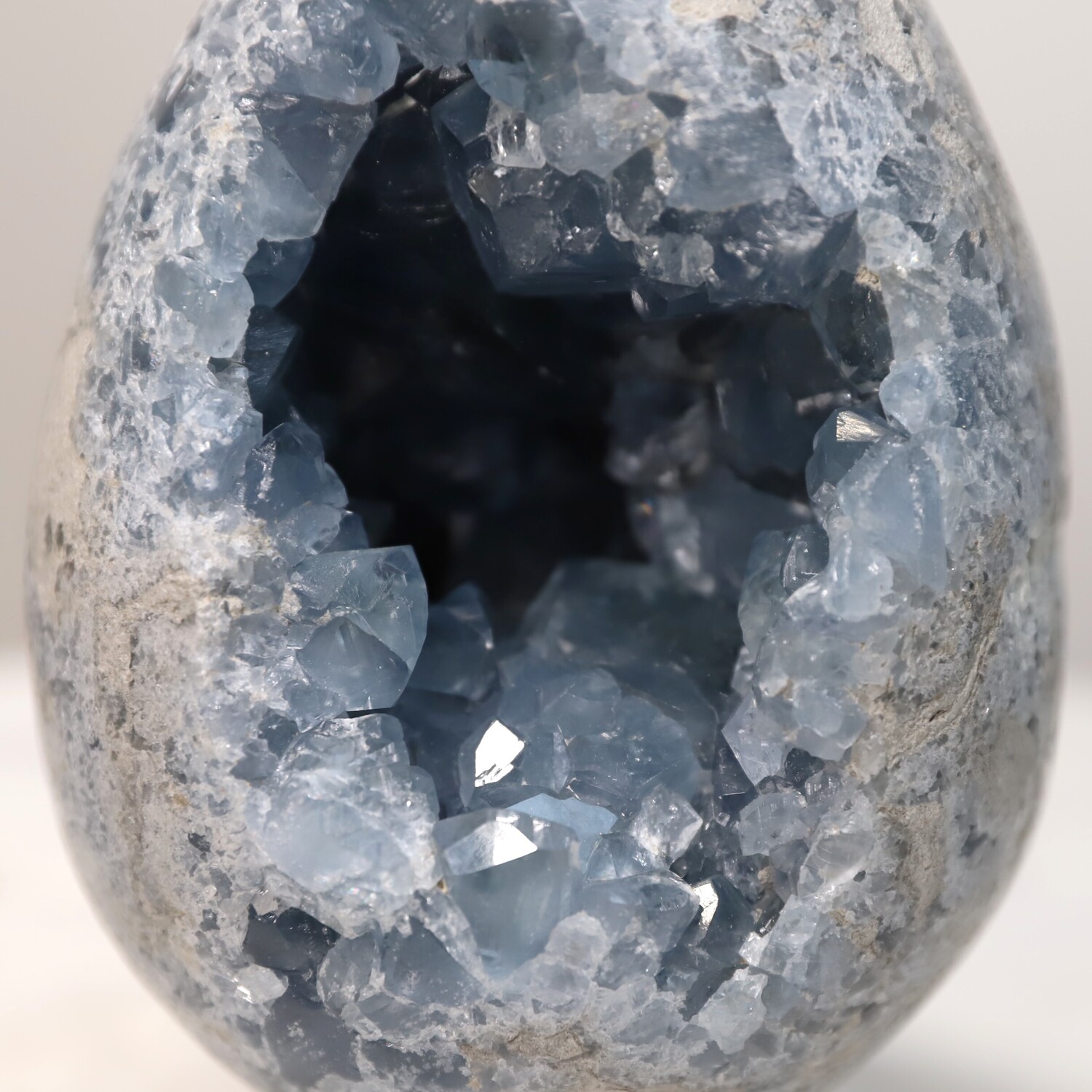 Celestite is also known by the name Celestine. It has been thought that it promotes purity of heart and attracts good fortune. These beautiful crystals are a classic shade of blue, blue-grey, dark blue and light blue.
