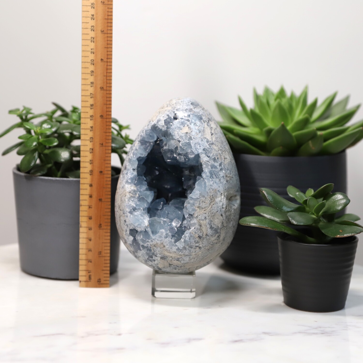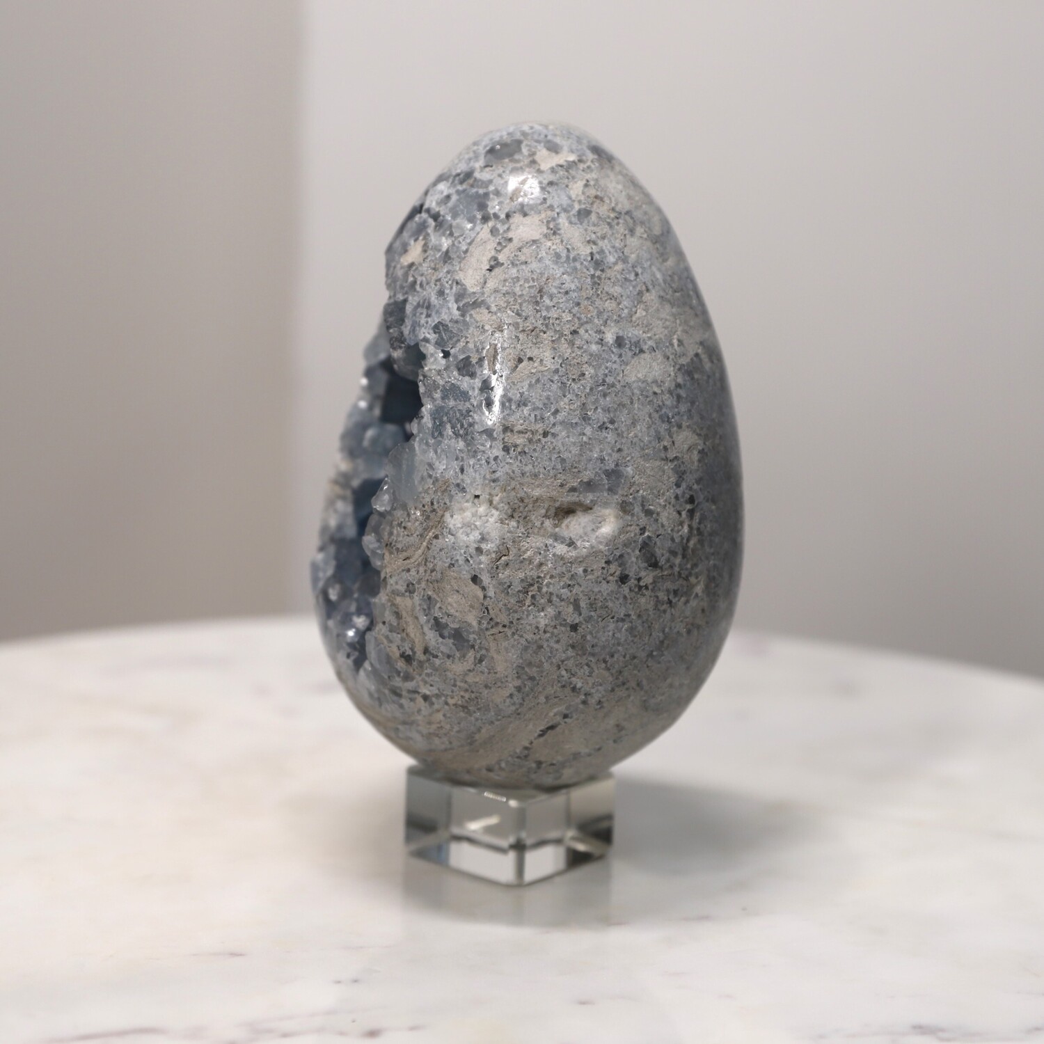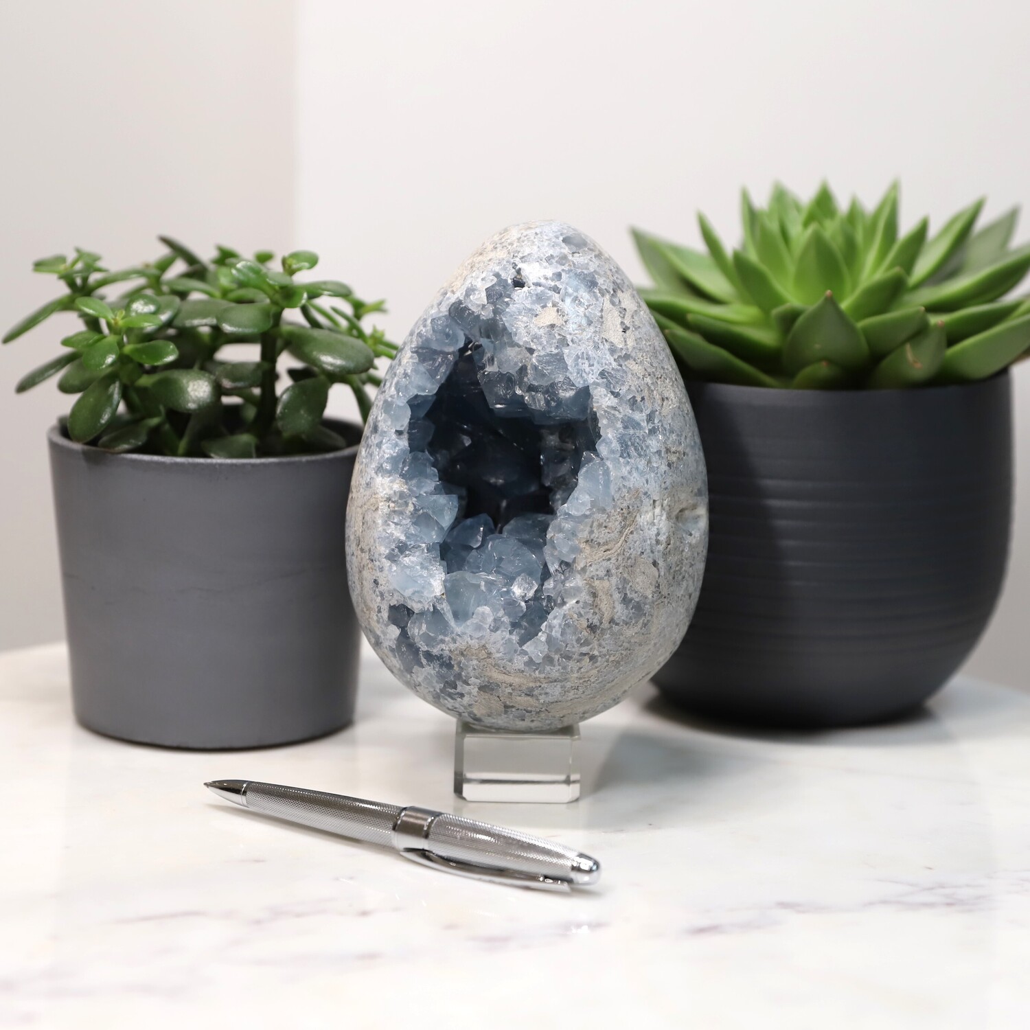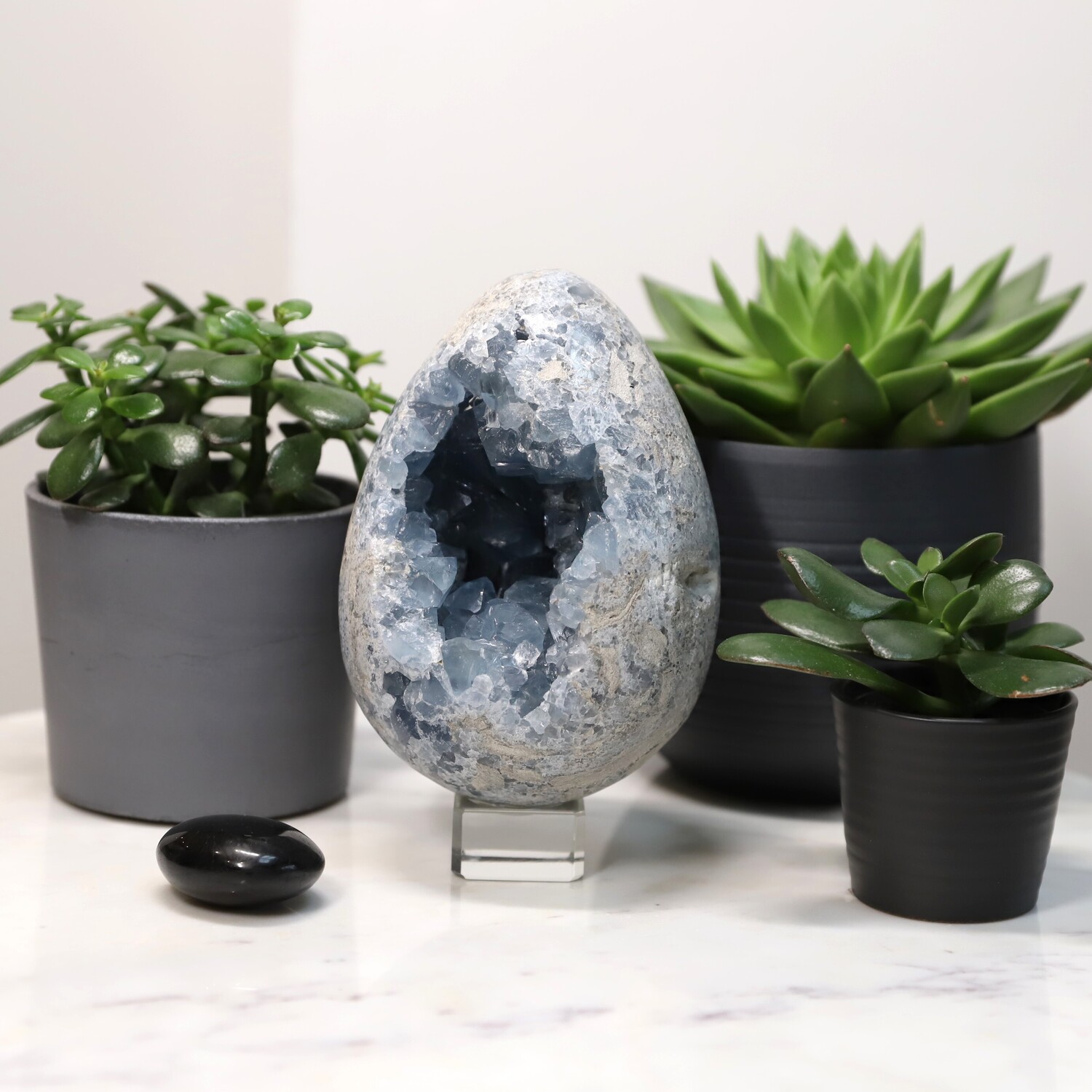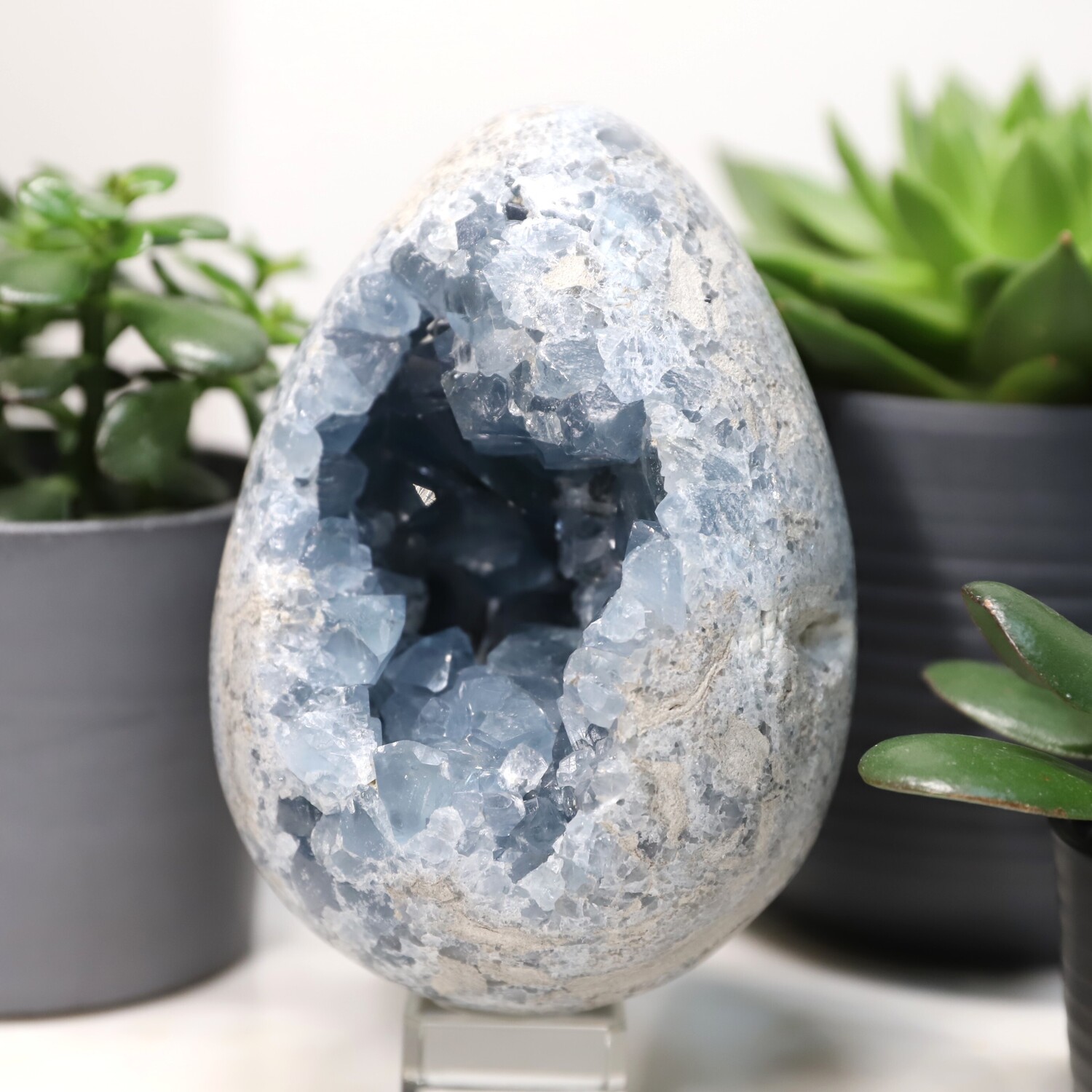 Celestite is also known by the name Celestine. It has been thought that it promotes purity of heart and attracts good fortune. These beautiful crystals are a classic shade of blue, blue-grey, dark blue and light blue.