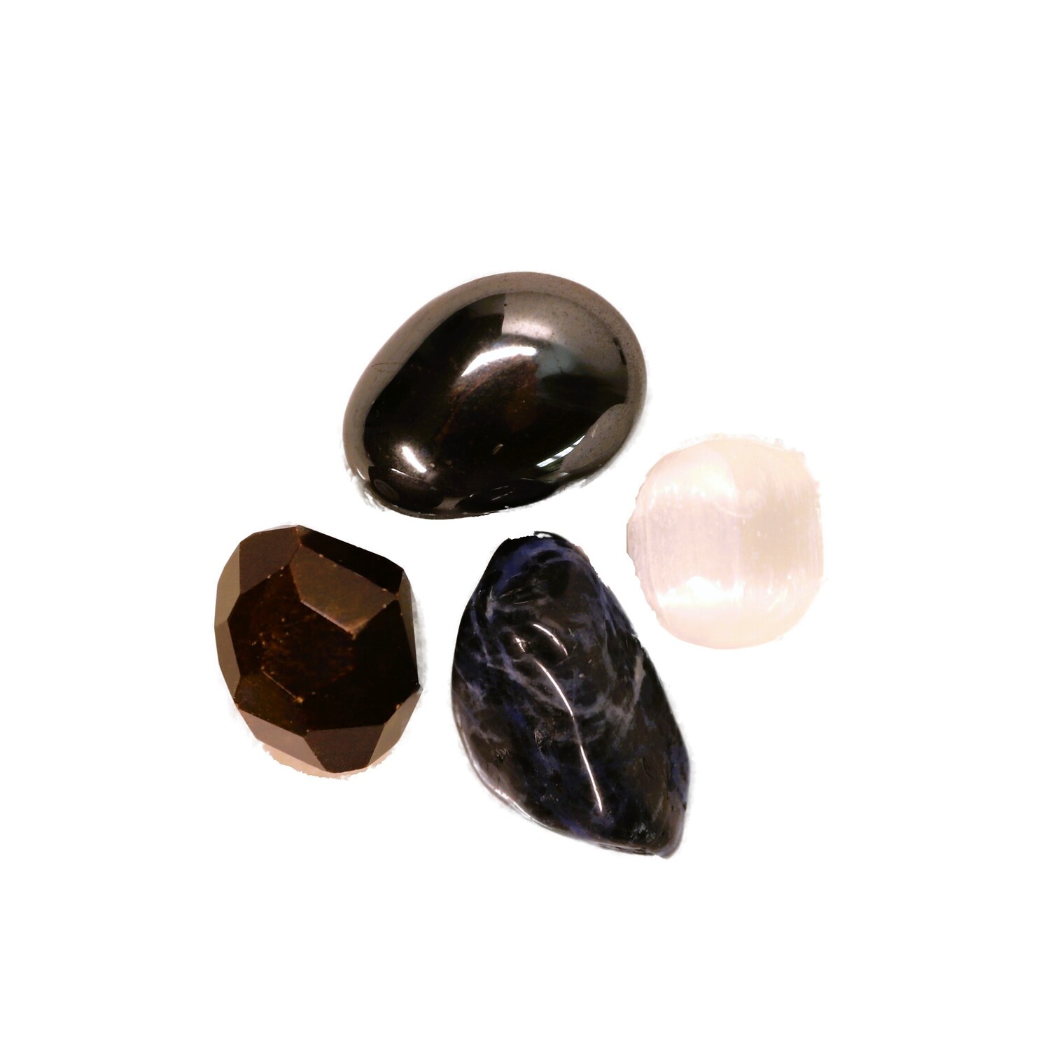 4 crystals: 1 x Almandine Faceted Garnet, 1 x Sodalite large tumble stone,