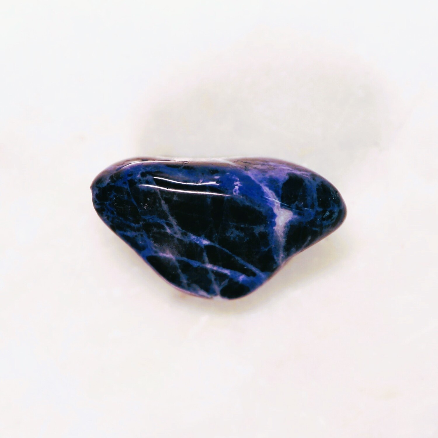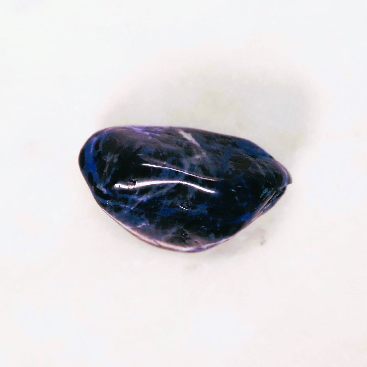 1 x Sodalite large tumble stone, 25mm h x 45mm w x 25mm d.