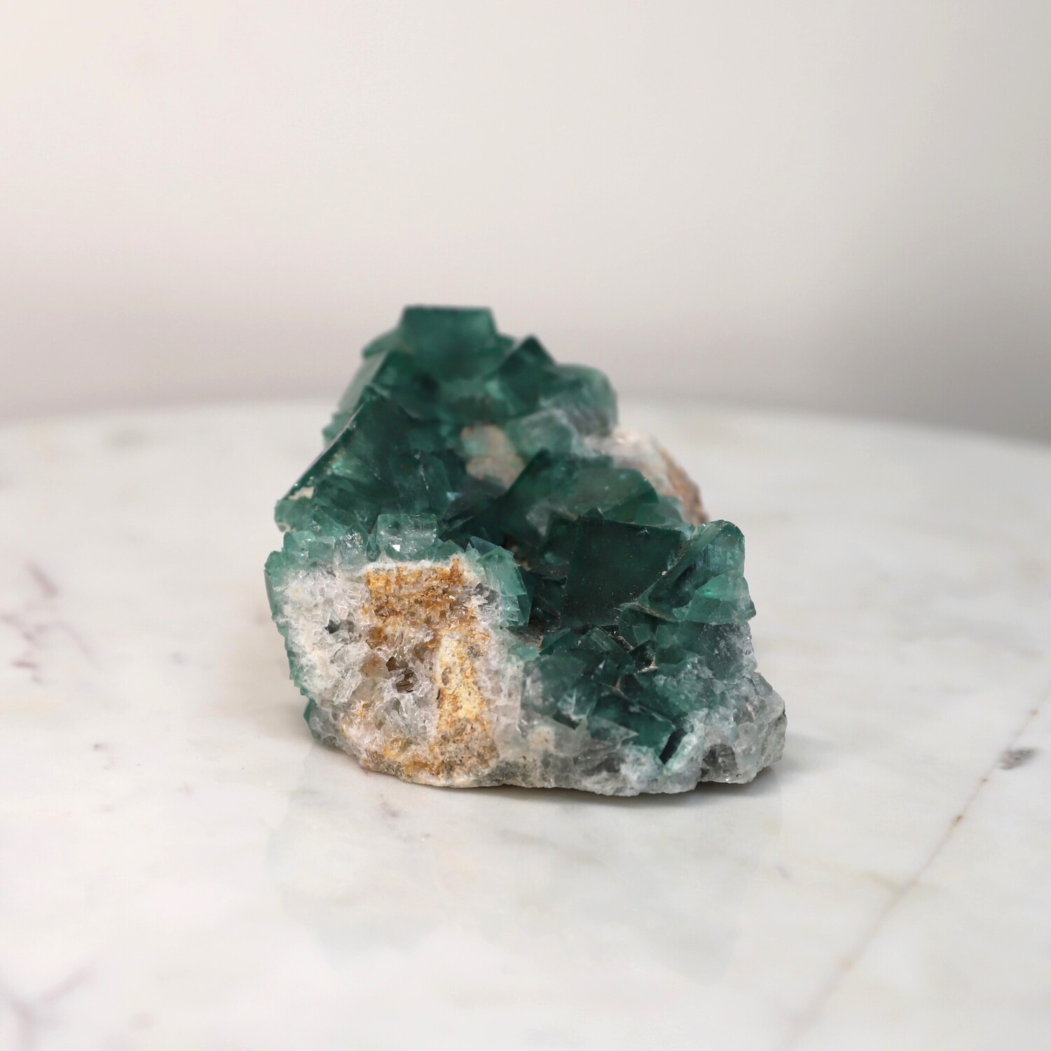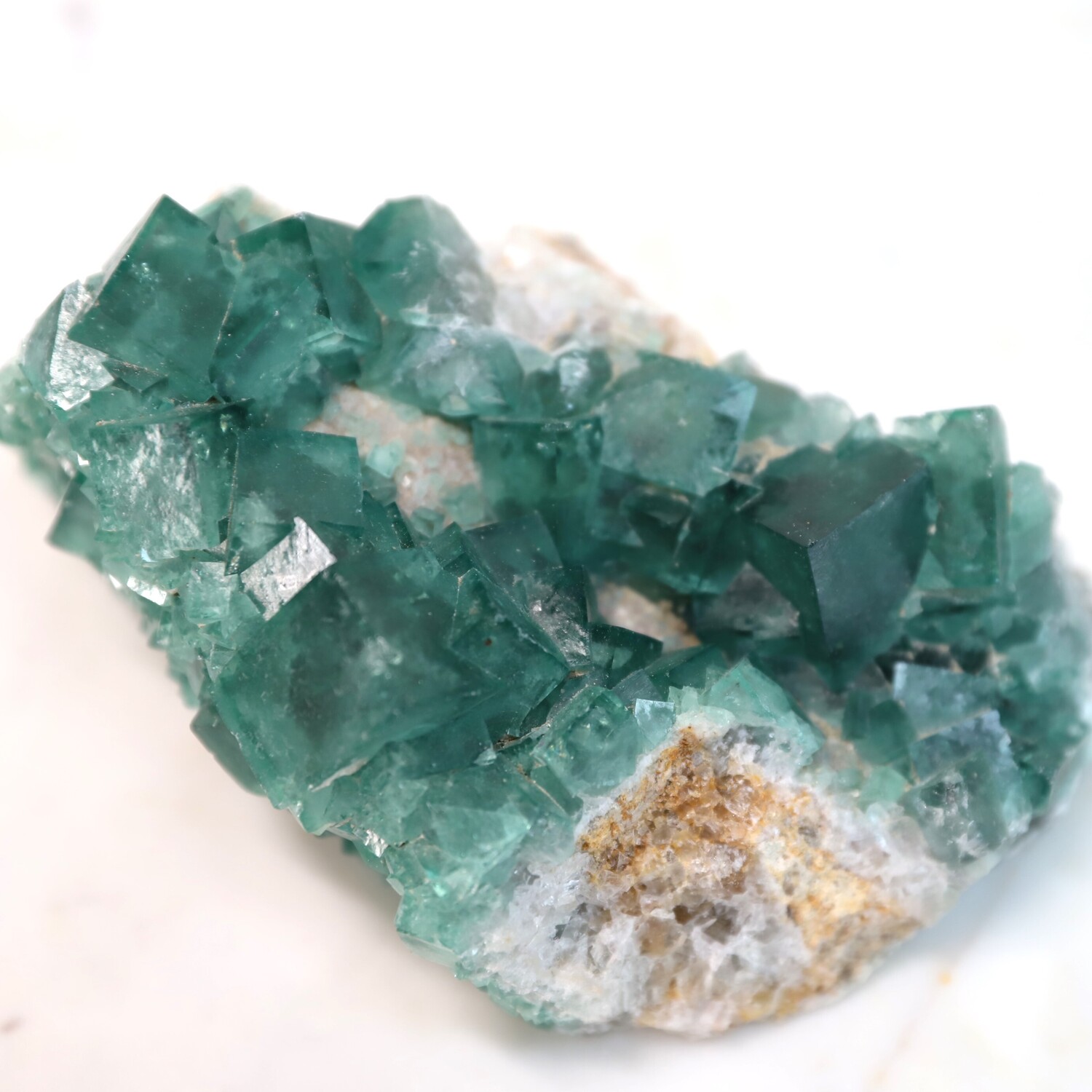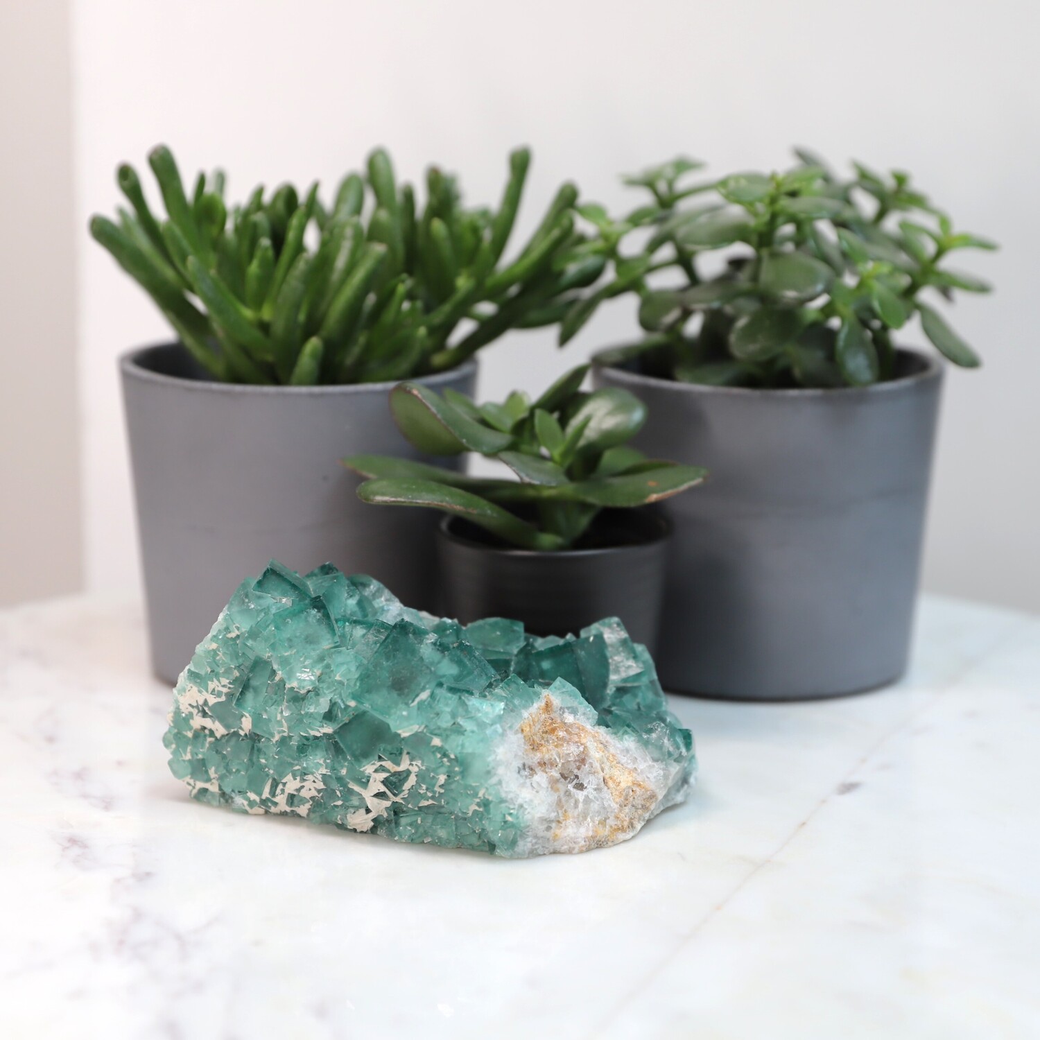 Known as the Stone of Progress; Fluorite comes in many colour variations: green, purple, clear, blue, yellow, brown and combinations of all these colours as rainbow fluorite.