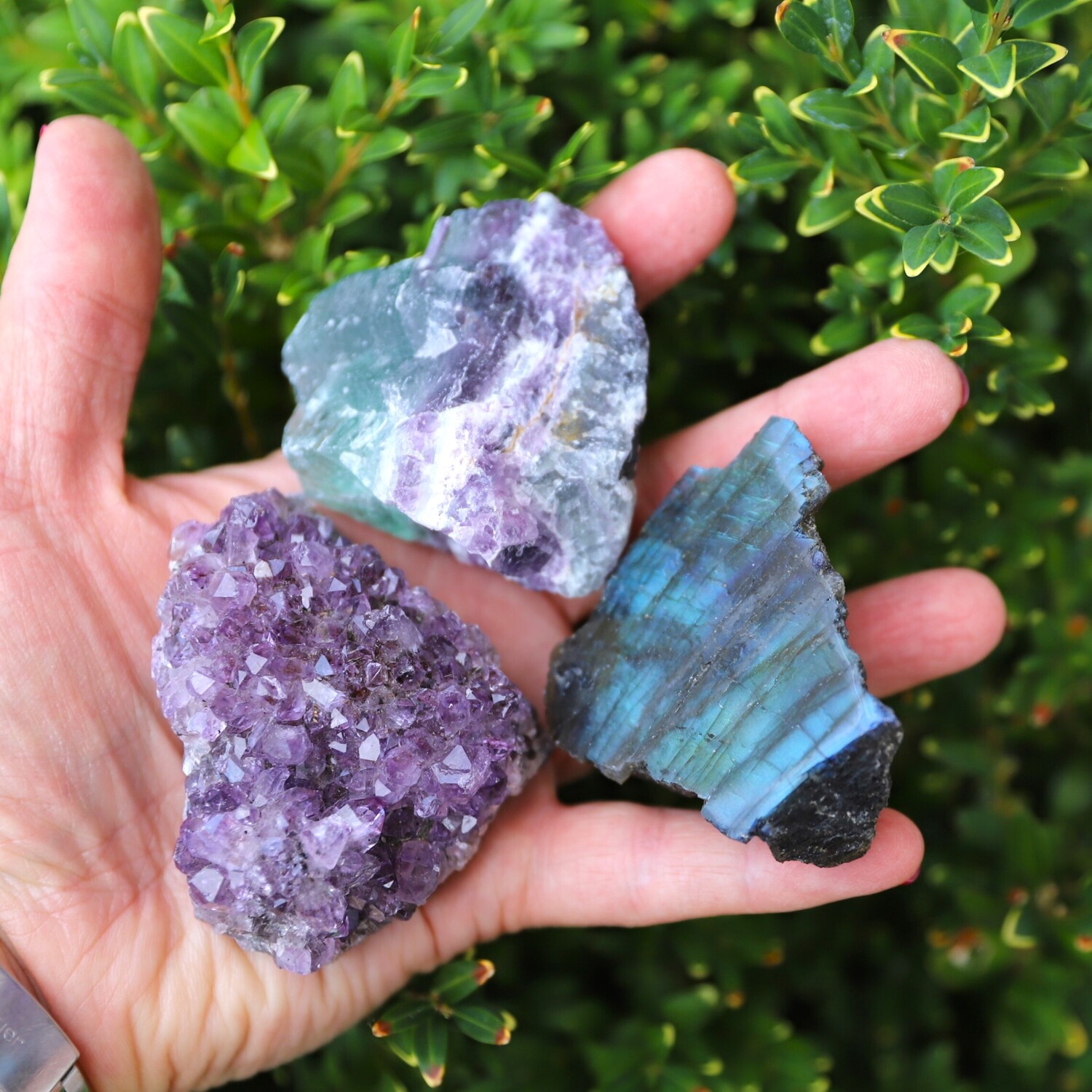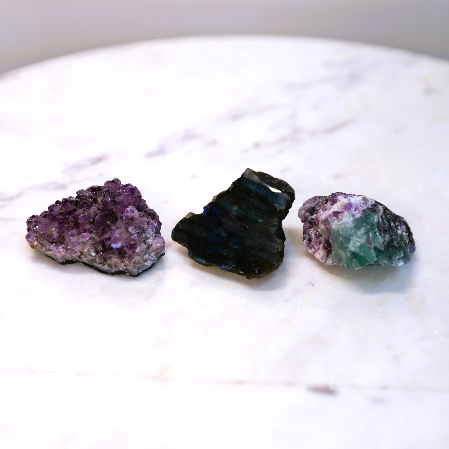Labradorite, Fluorite & Amethyst Geode Mini Set