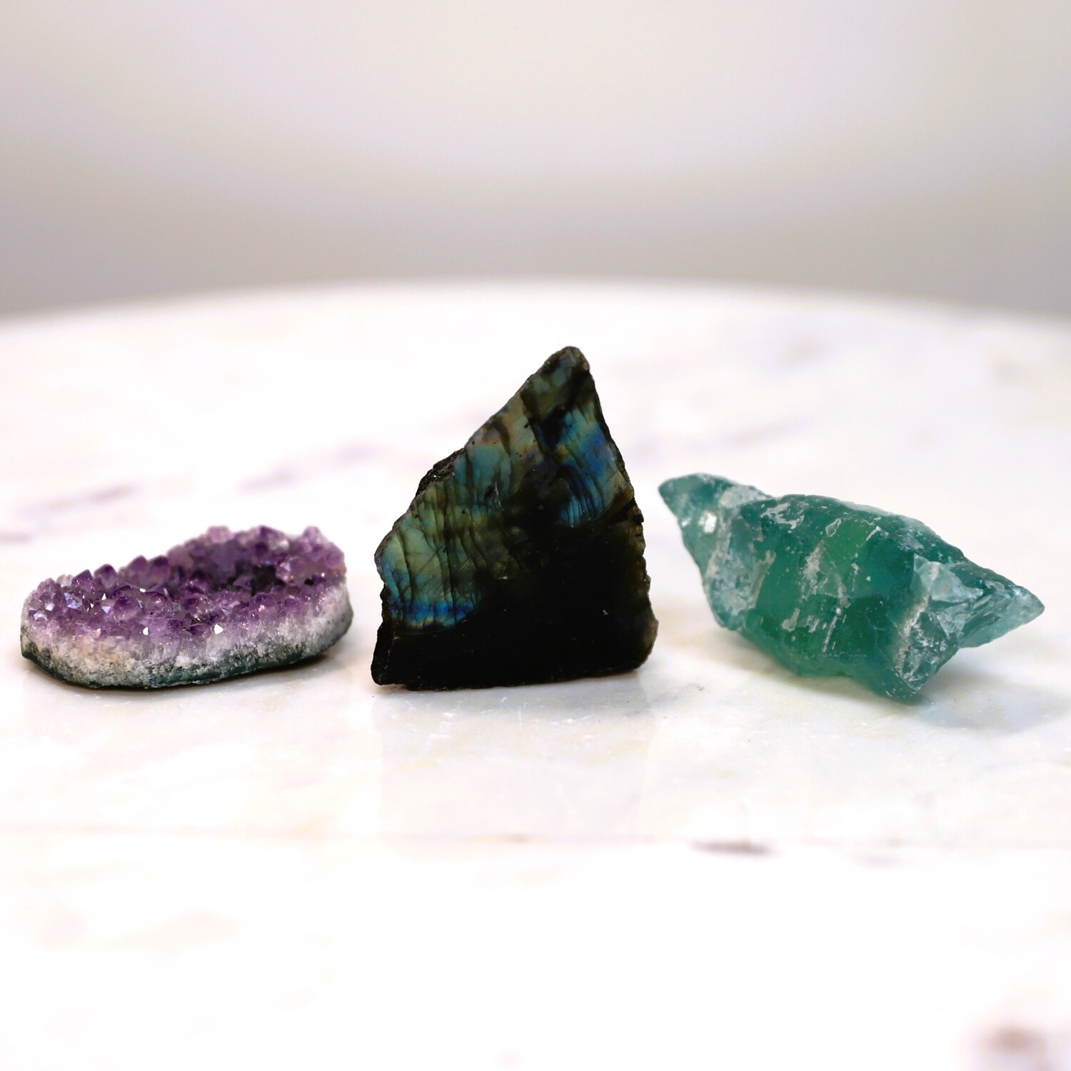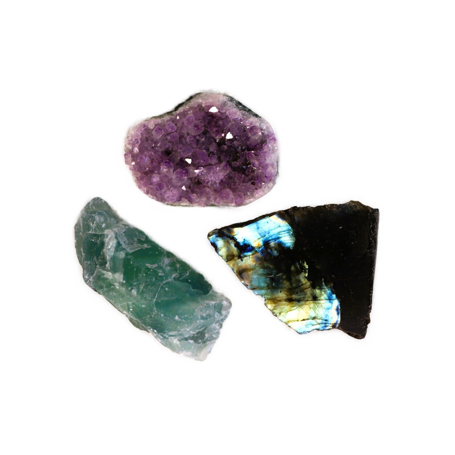 Labradorite, Fluorite & Amethyst Geode Mini Set