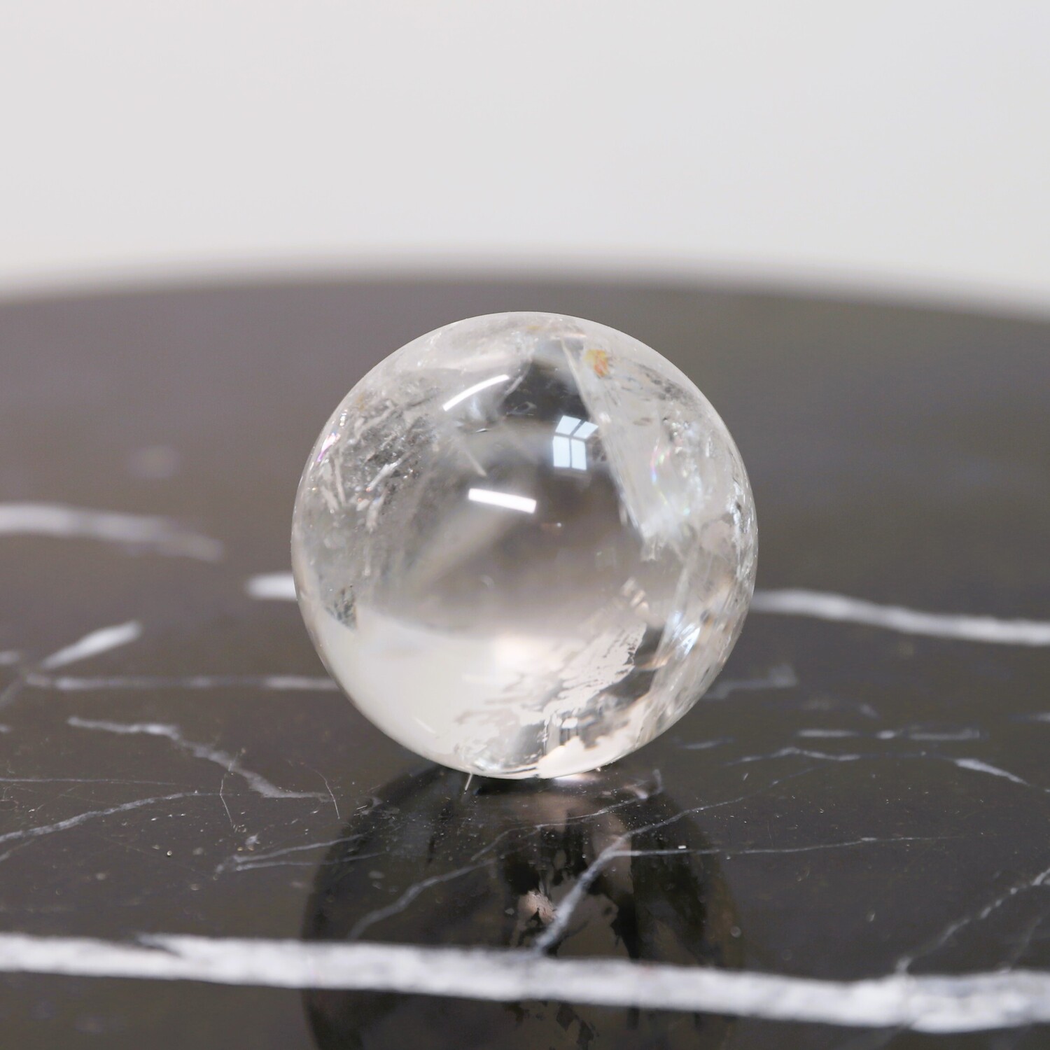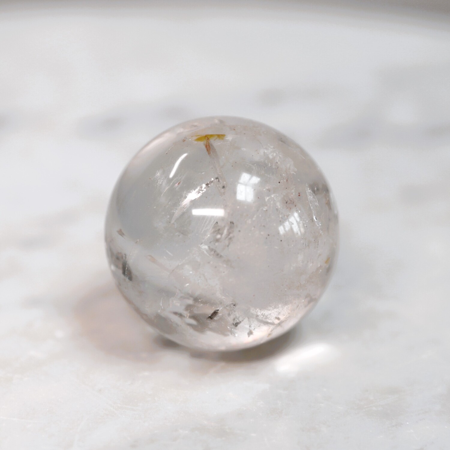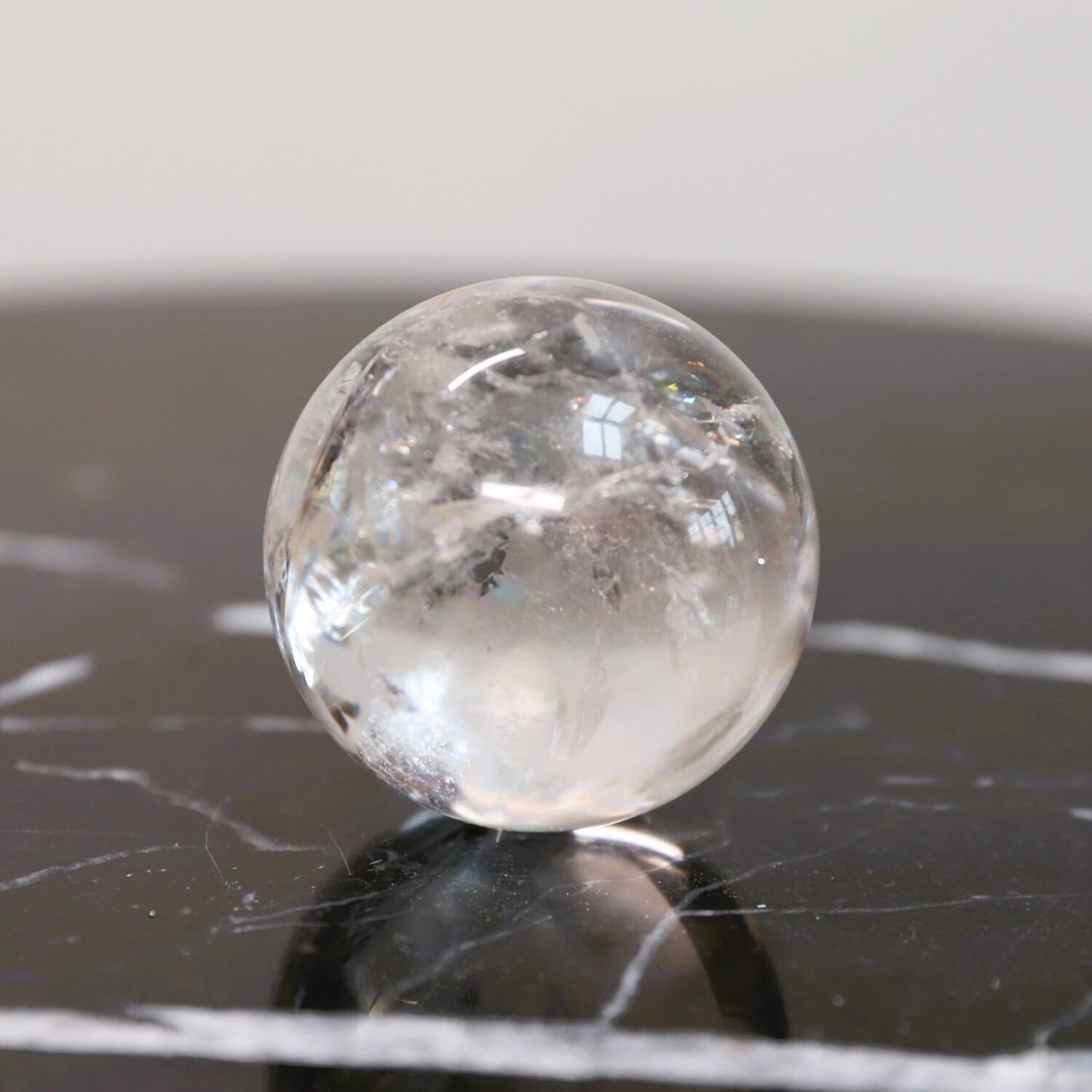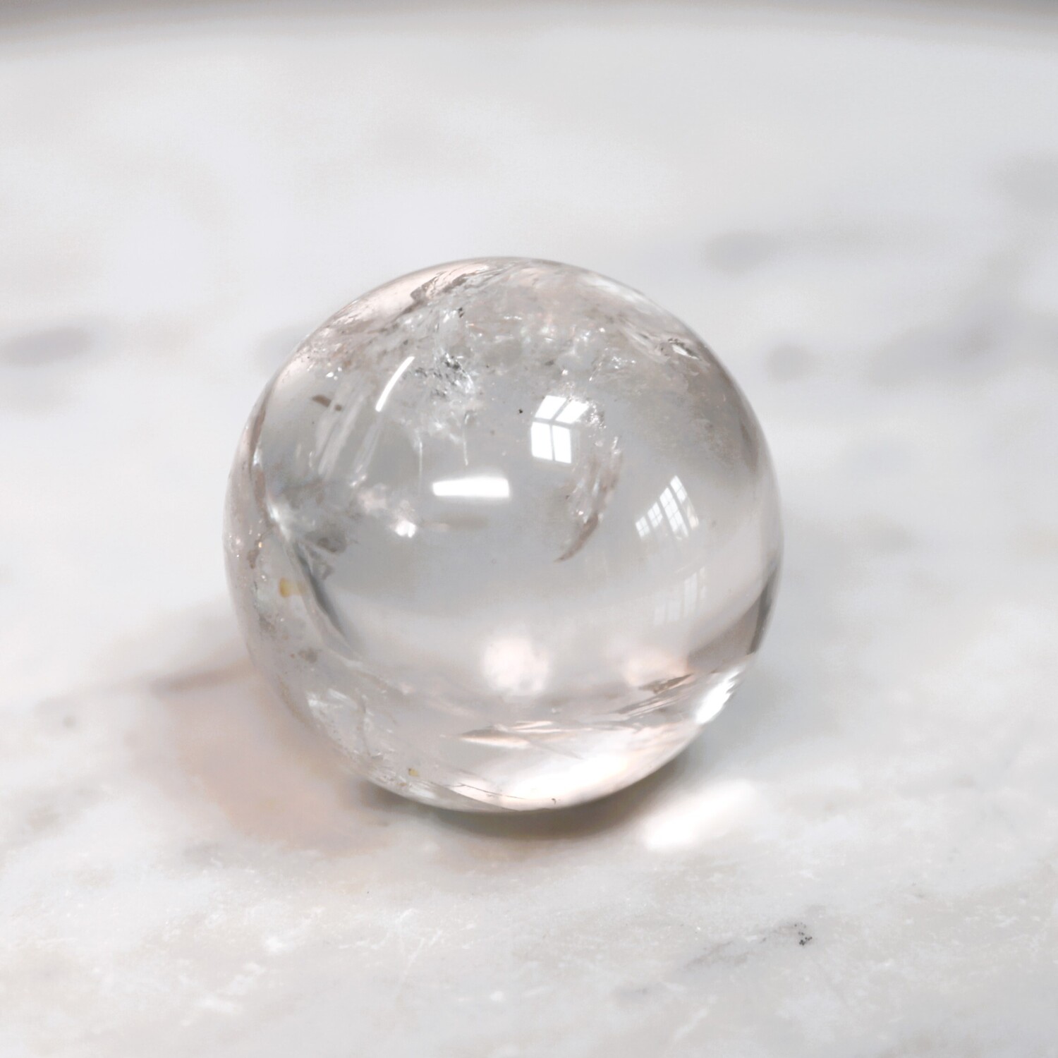 1 Lemurian Quartz polished sphere with amazing water clarity & inclusions. Beautiful rainbow colours when held in the light.