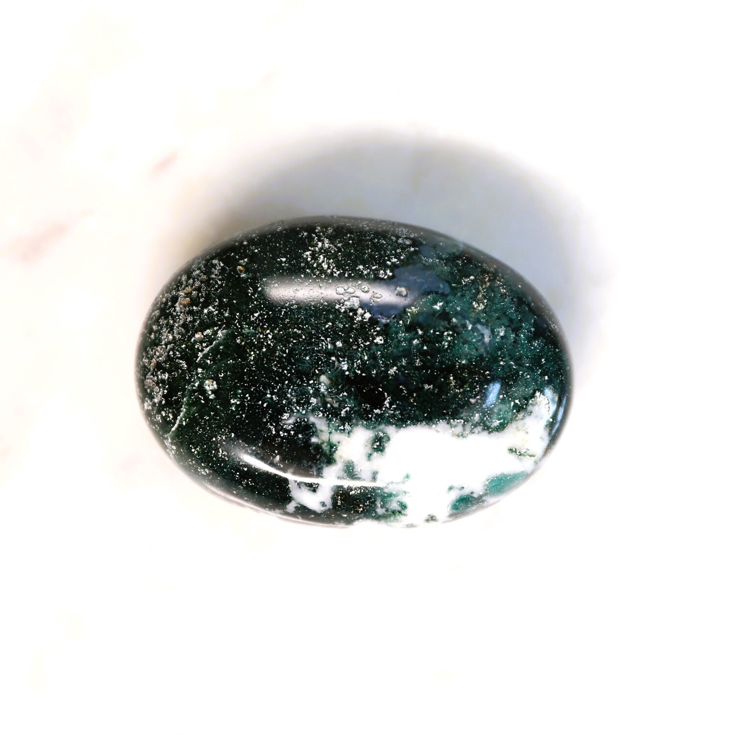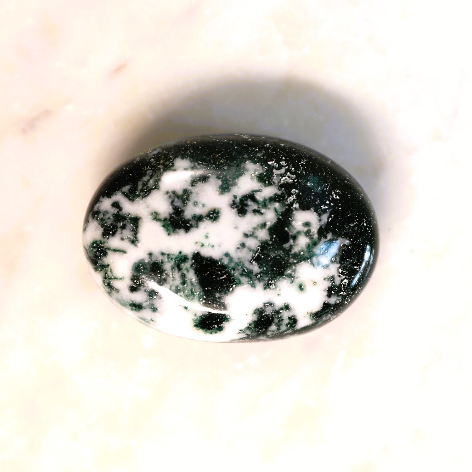 1 x Green Moss Agate palm stone, approx 25mm h x 55mm w x 40mm d.