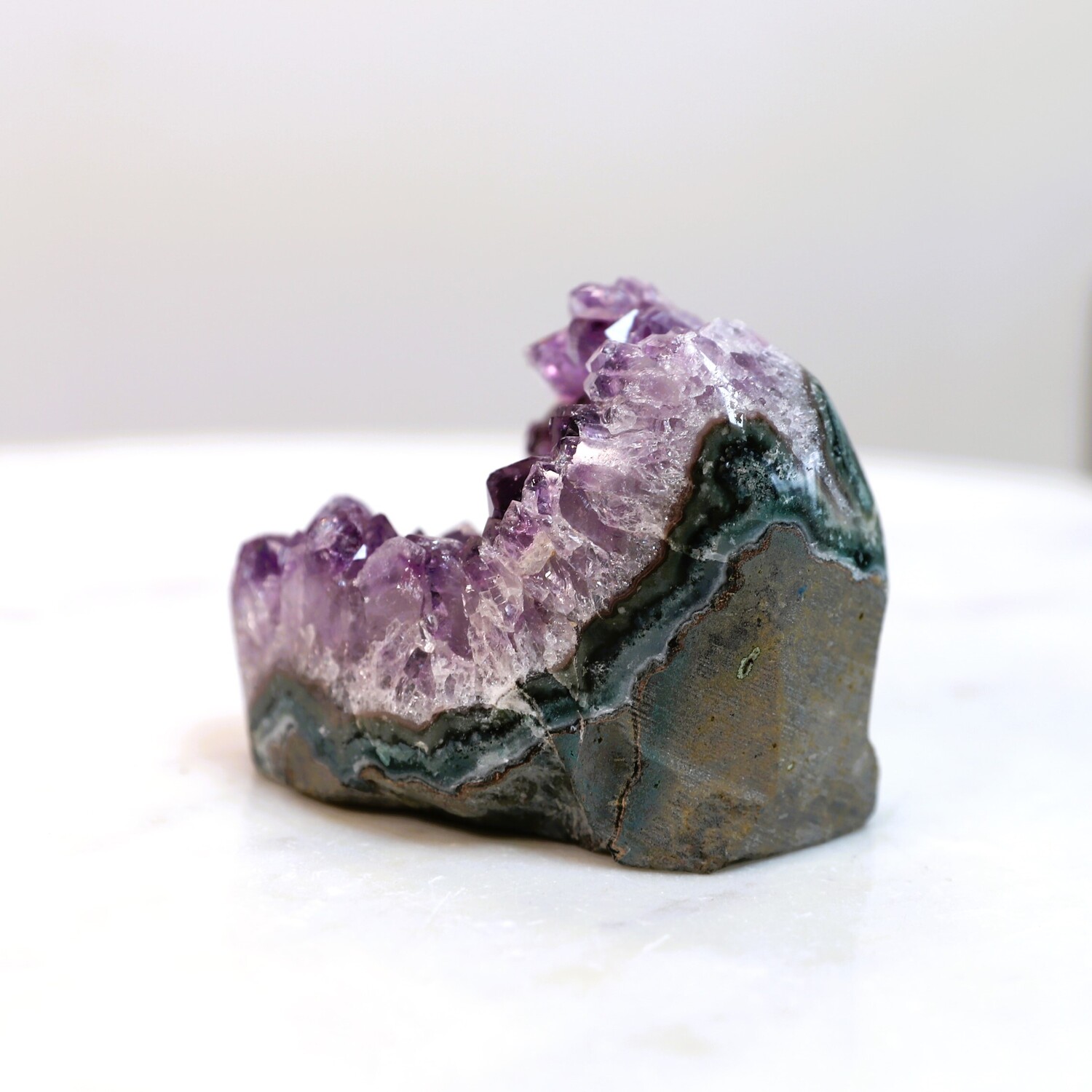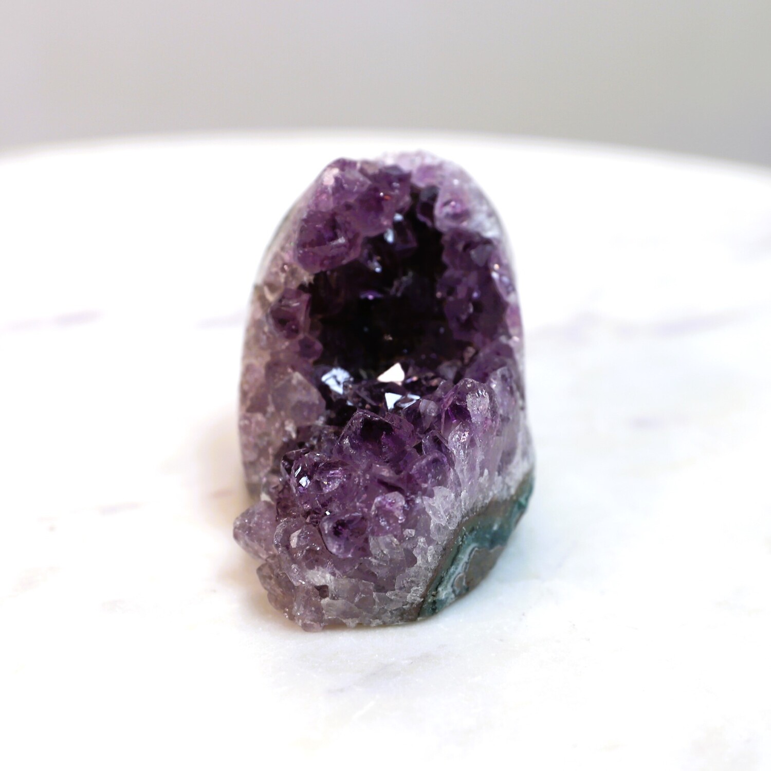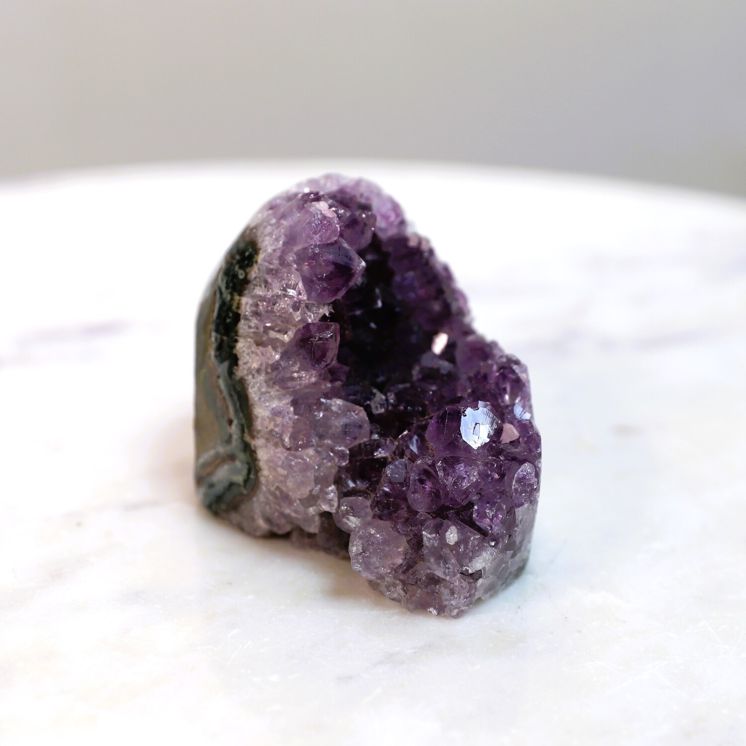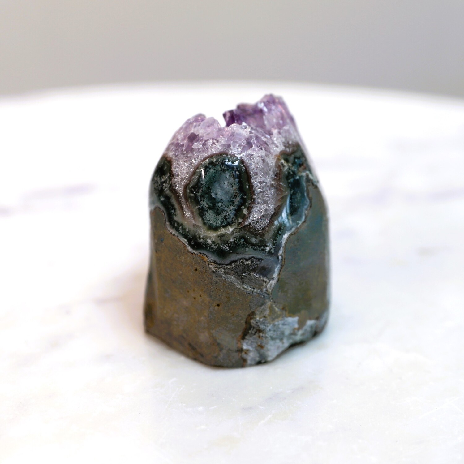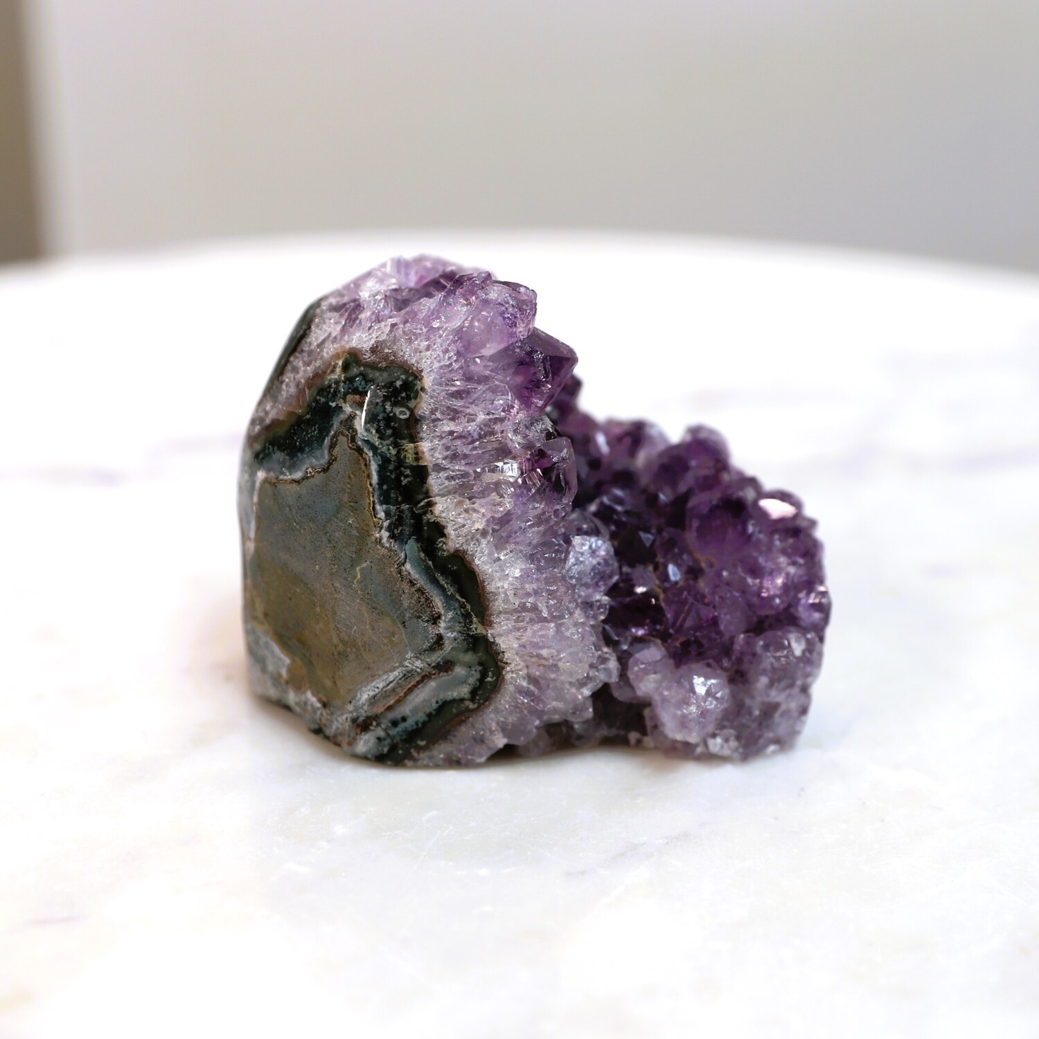 1 x Amethyst Mini Geode Cluster (mid-coloured violet with small points, polished edges & lovely Agate banding around the edges).