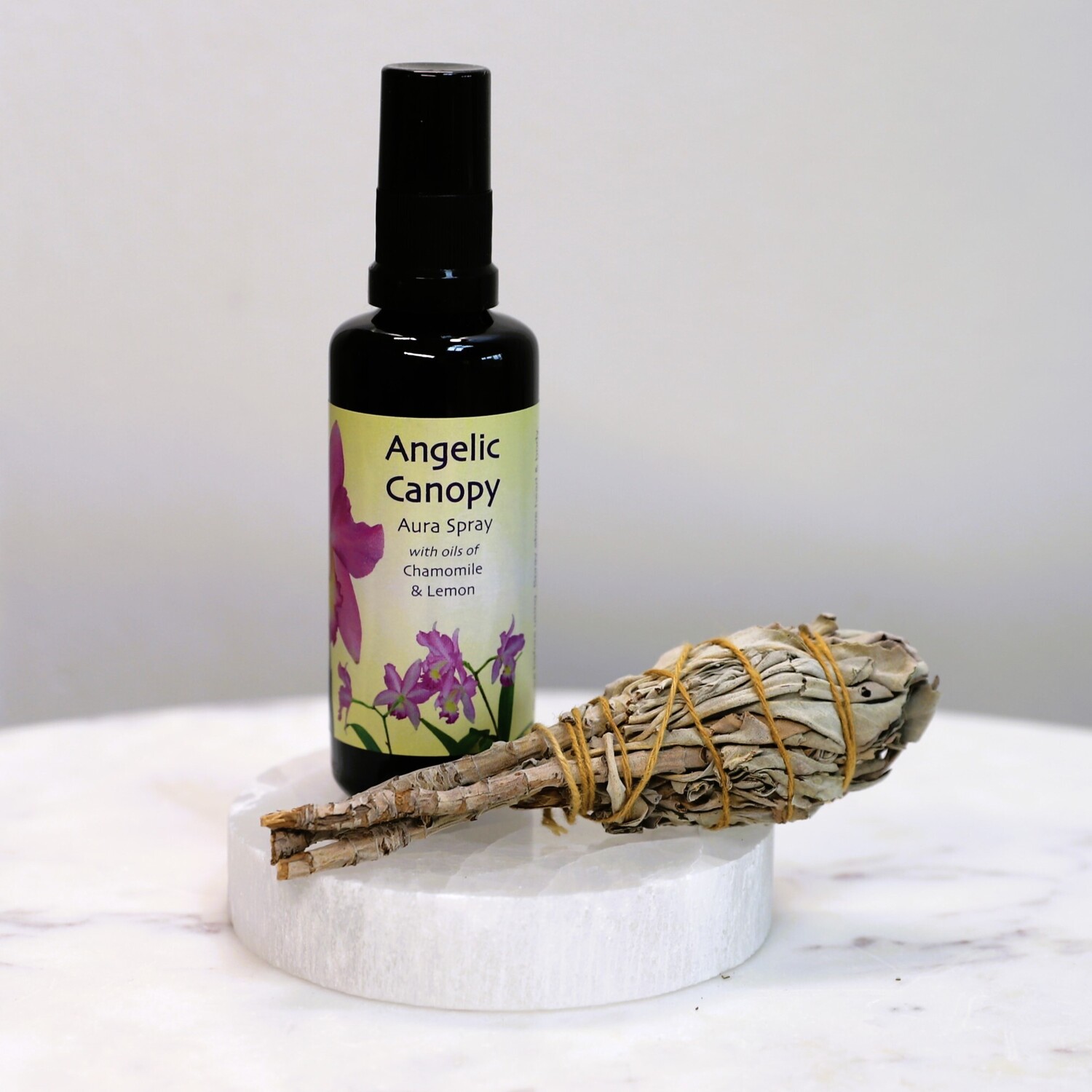 Plus 1 x Angelic Canopy Aura Spray 50ml, (Chamomile & Lemon). For external use only. Spray above head & body. 130mm height bottle.
