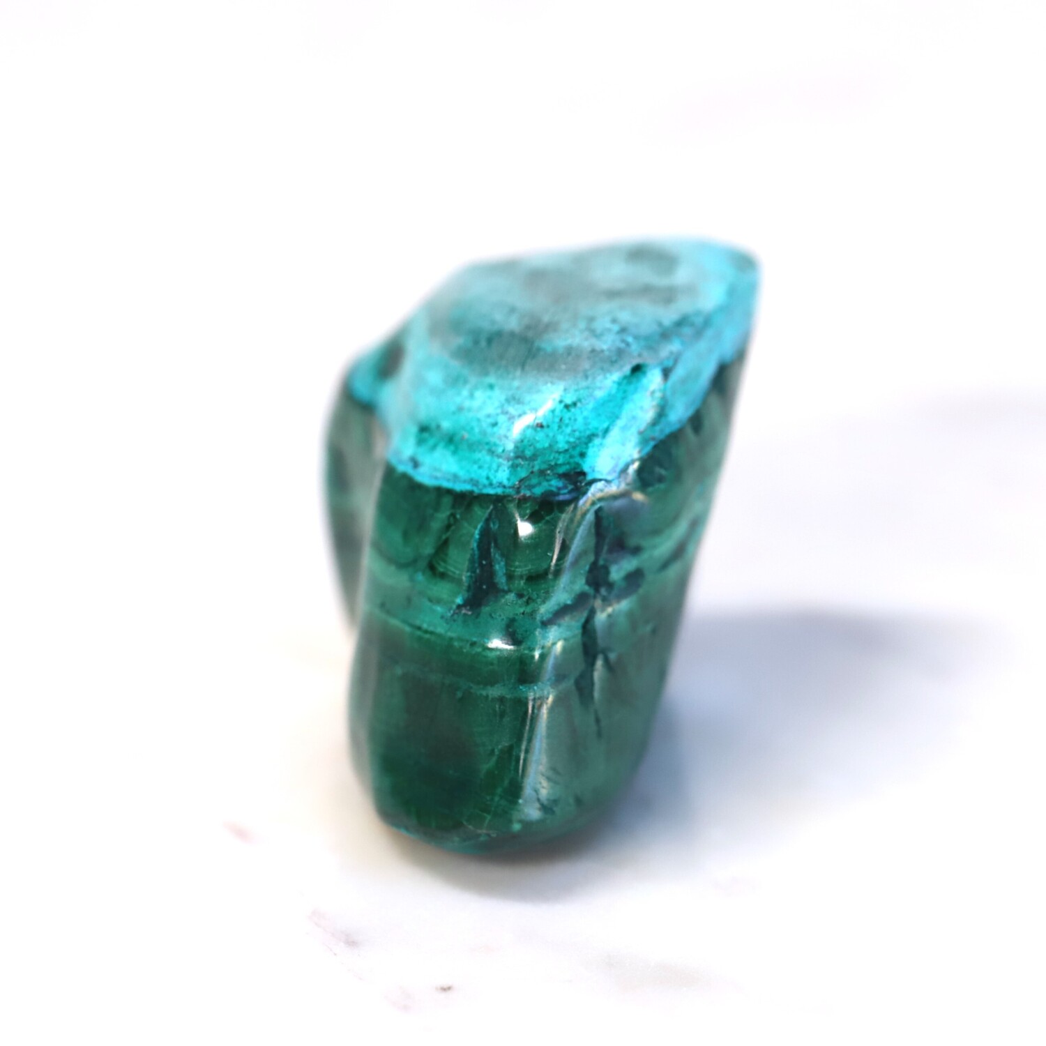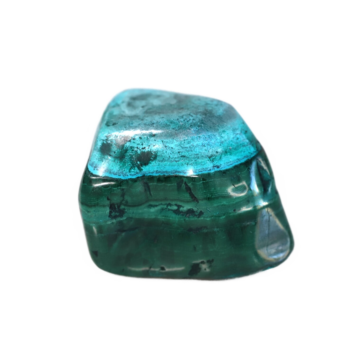 Due to the softer nature of this stone, it is best kept away from water. Water marks will dull the appearance of polished Malachite.