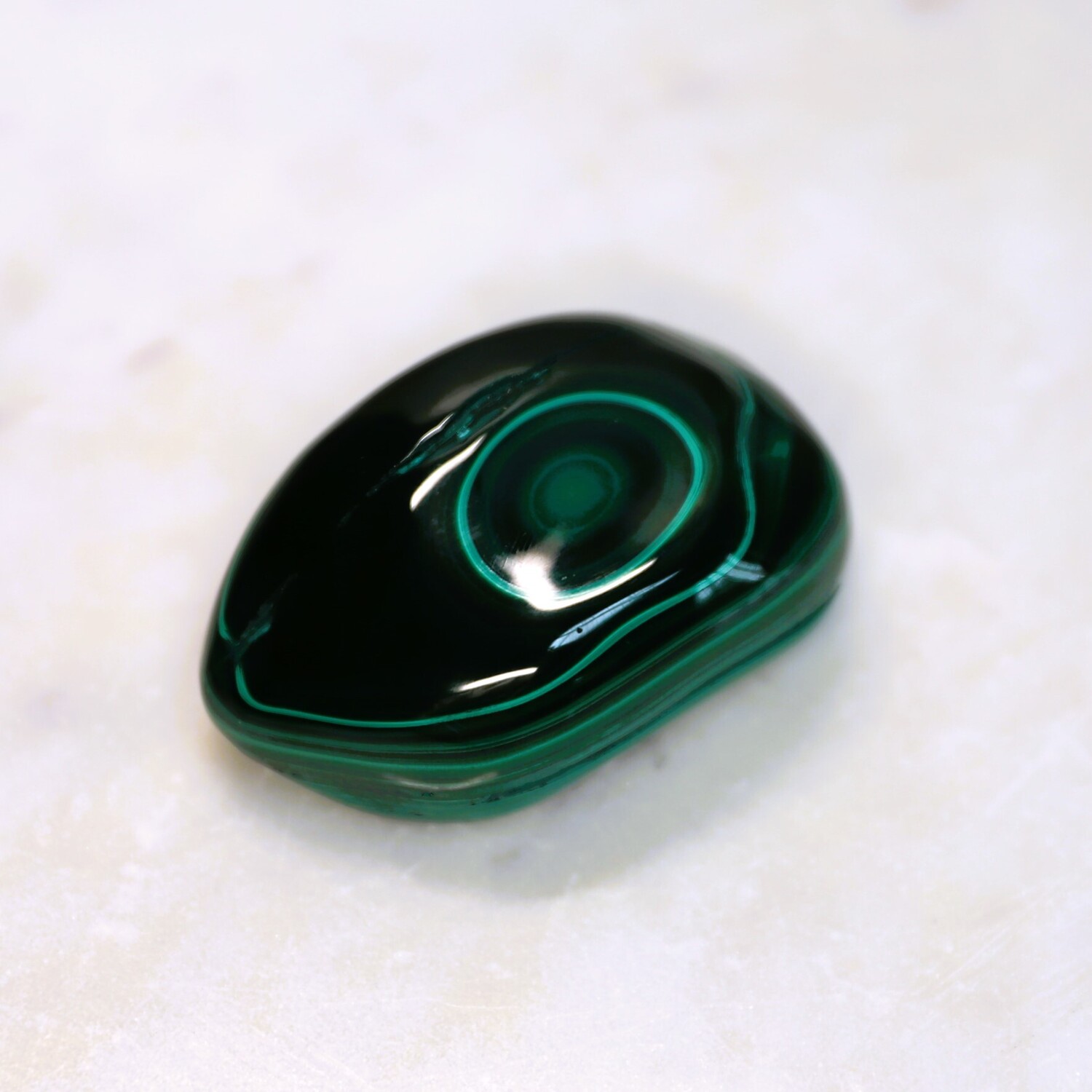 Malachite has historically been known as the stone of transformation, and naturally occurs in swirling shades of green from very dark emerald to brighter greens. It takes its beautiful Green colour from Copper and is often used as a Copper ore. It often appears to have a silky luster with a rippling, patterned surface. Malachite has a varied appearance with a variety of shades and swirls with thick and thin lines, speckles and circles. The value of Malachite will vary according to the size and quality of the piece.