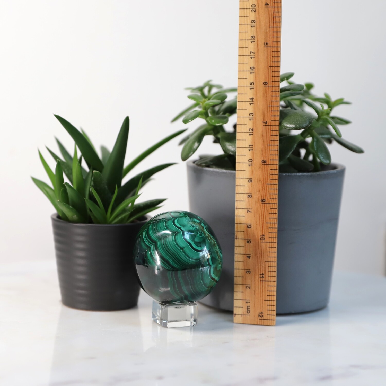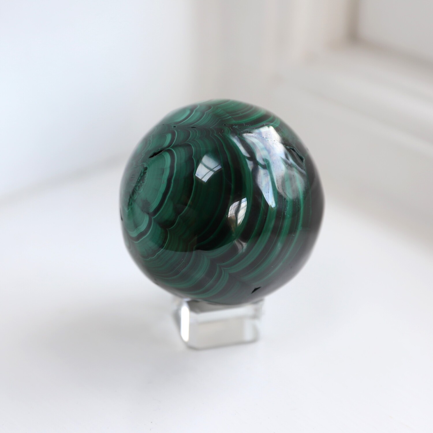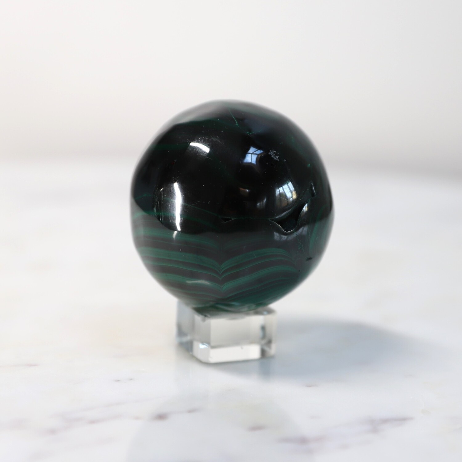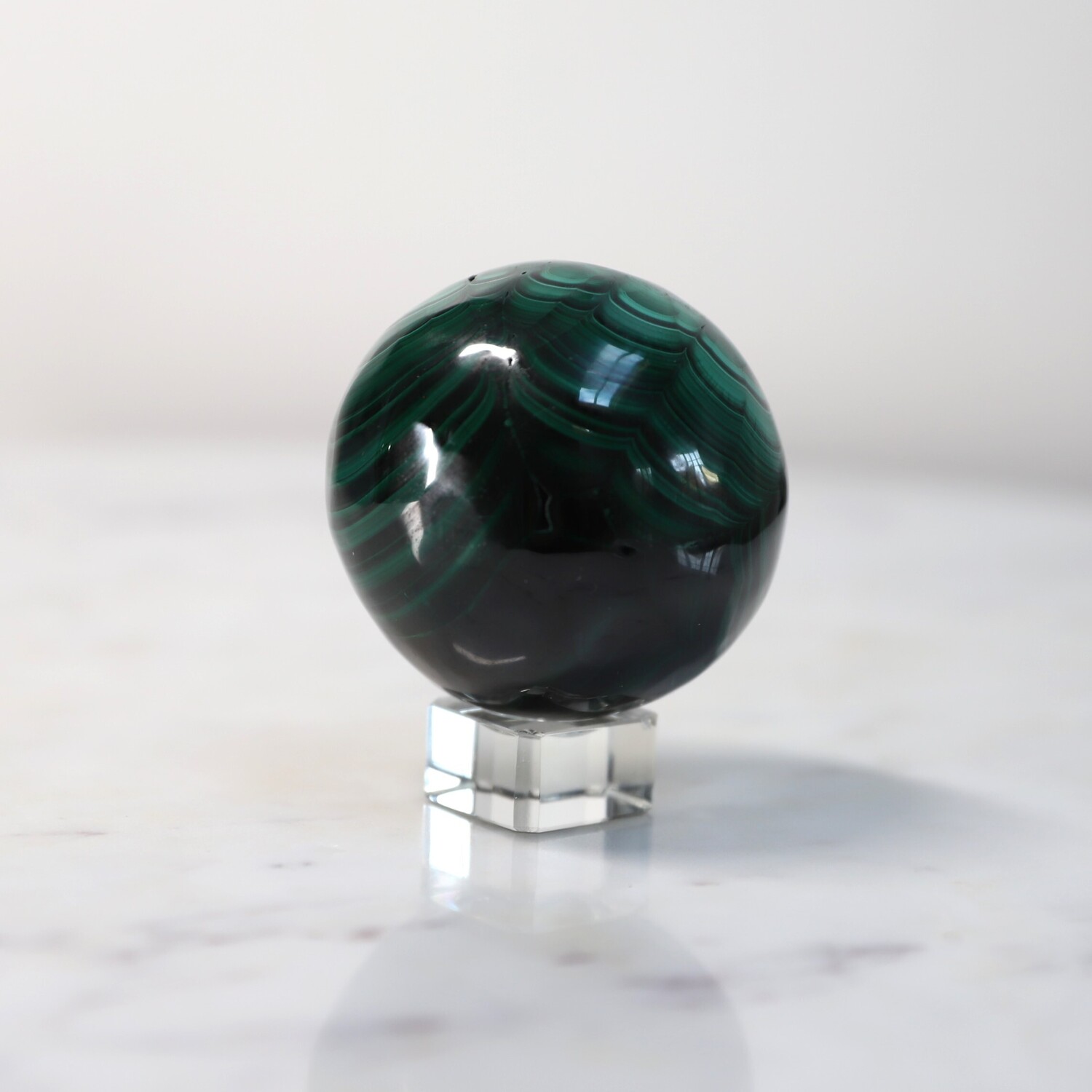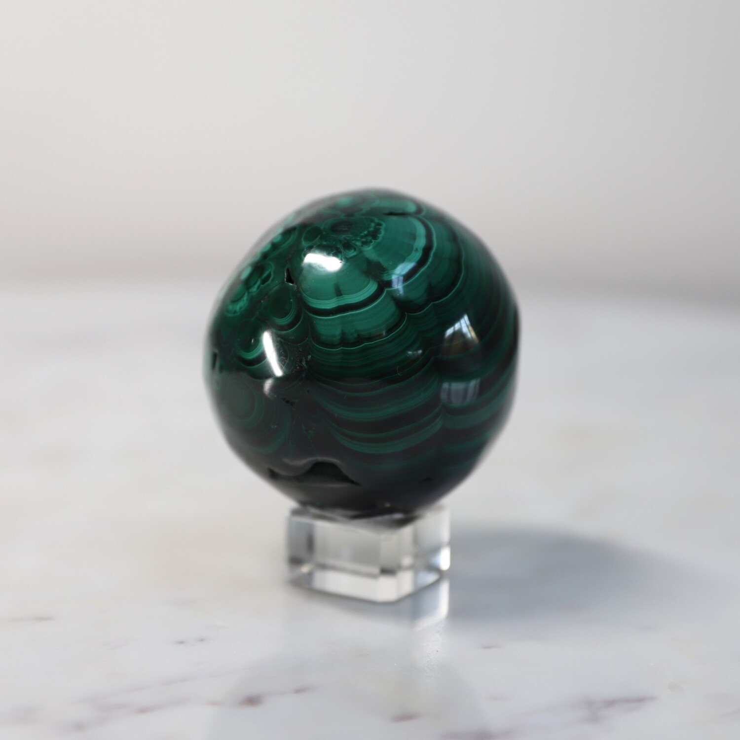 Due to the softer nature of this stone, it is best kept away from water. Water marks will dull the appearance of polished Malachite.