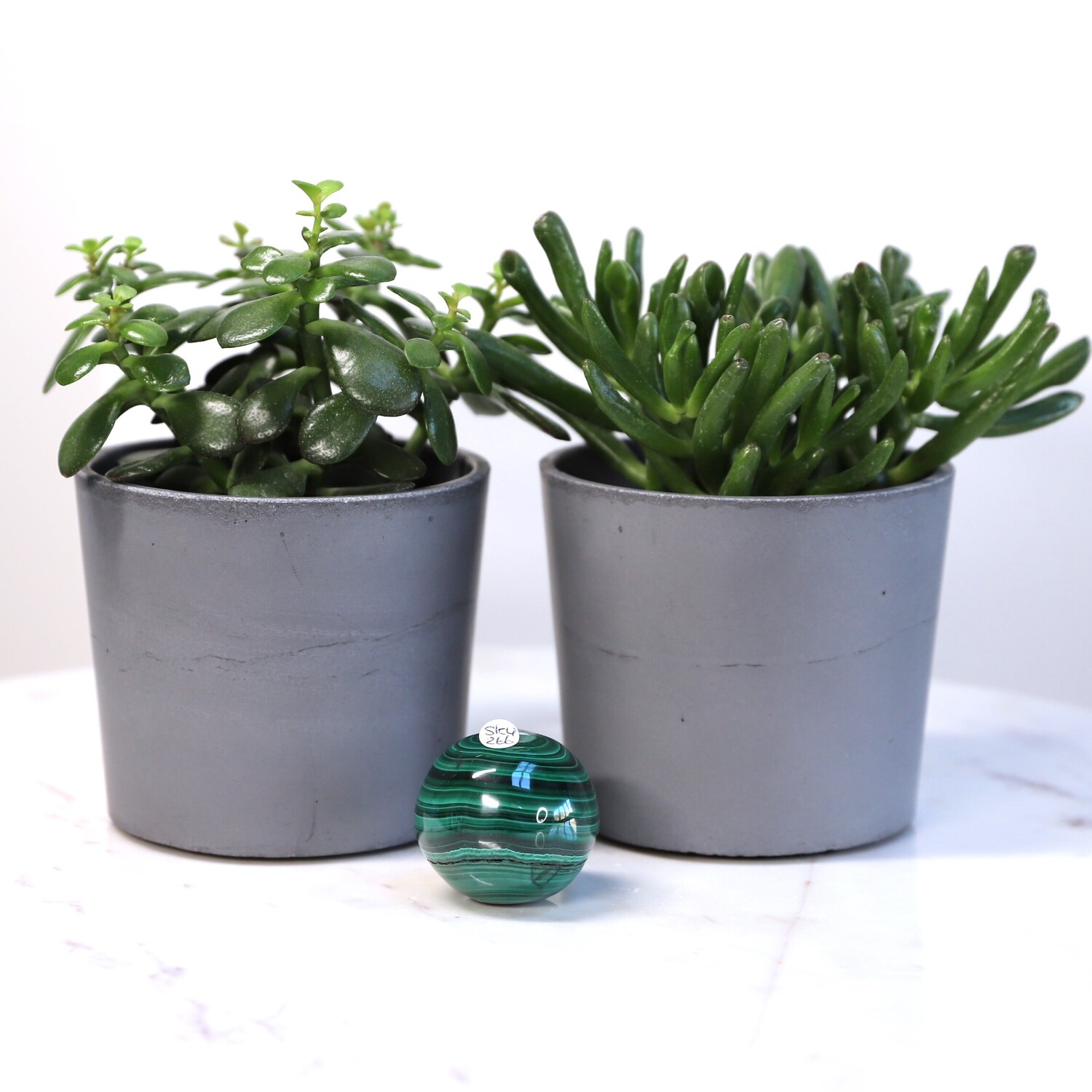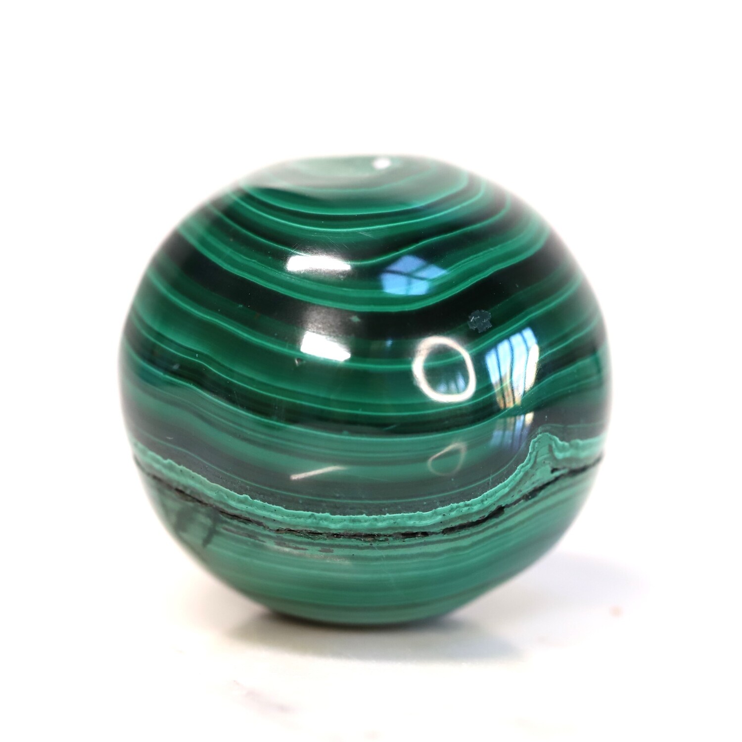 Due to the softer nature of this stone, it is best kept away from water. Water marks will dull the appearance of polished Malachite.