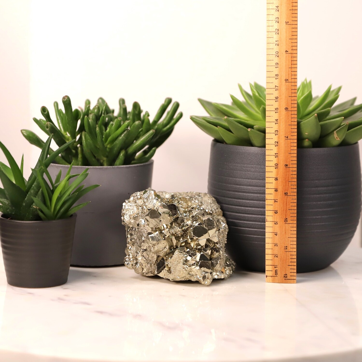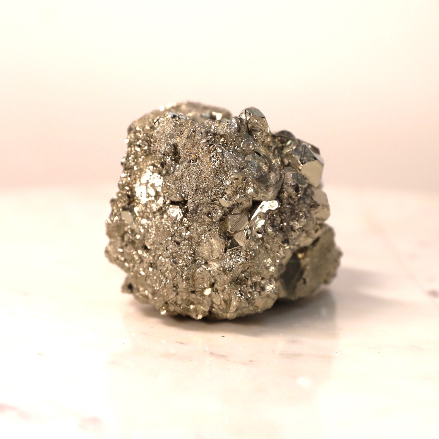 As Pyrite has a high Iron content, avoid putting it into contact with water or liquids as it may lead to rusting or changes in colour. Keep it dry.