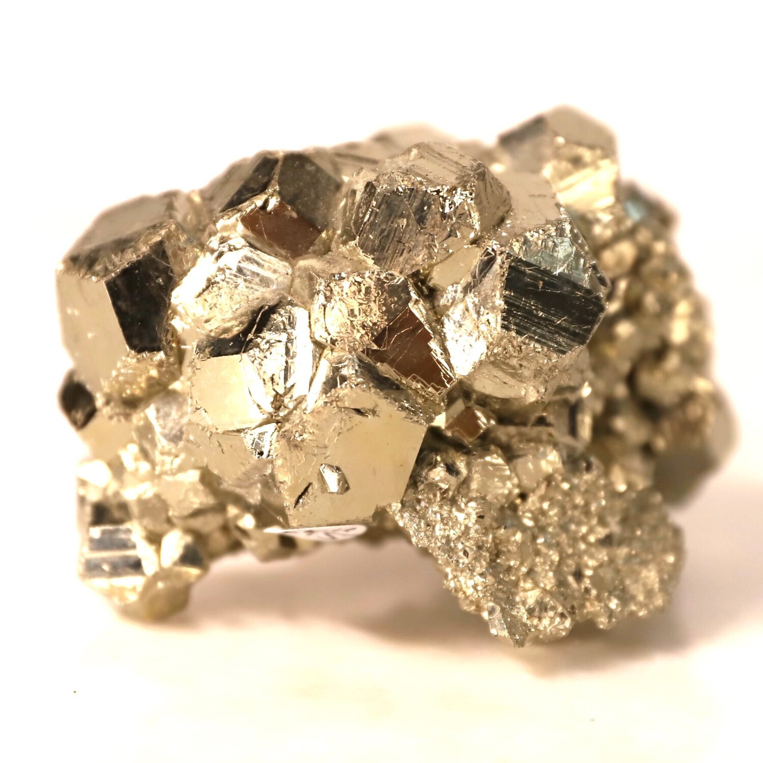 Geology: Pyrite comes from the Cubic crystal system and is an iron Sulphide, one of the most abundant sulphide minerals. It forms in the Earth alongside other Sulphides or Oxides in Quartz Veins. Pyrite can often be found in mines alongside gold deposits and so it is found as both a primary mineral, present in the original sediments and as a secondary mineral deposited during diagenesis (physical and chemical changes in sediments caused by water-rock interactions). Pyrite is commonly found as an accessory mineral in Shale where it is formed by precipitation from anoxic seawater.