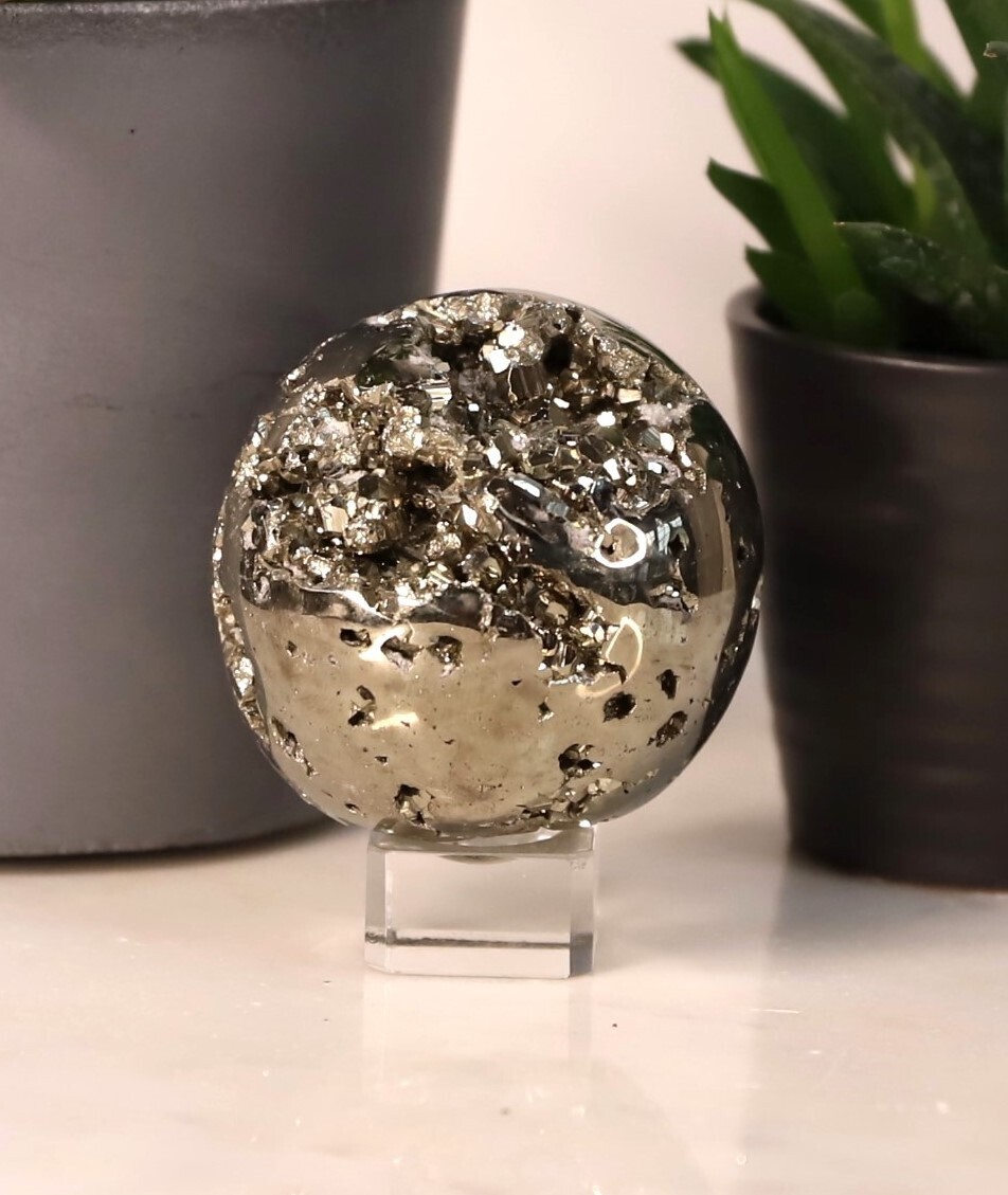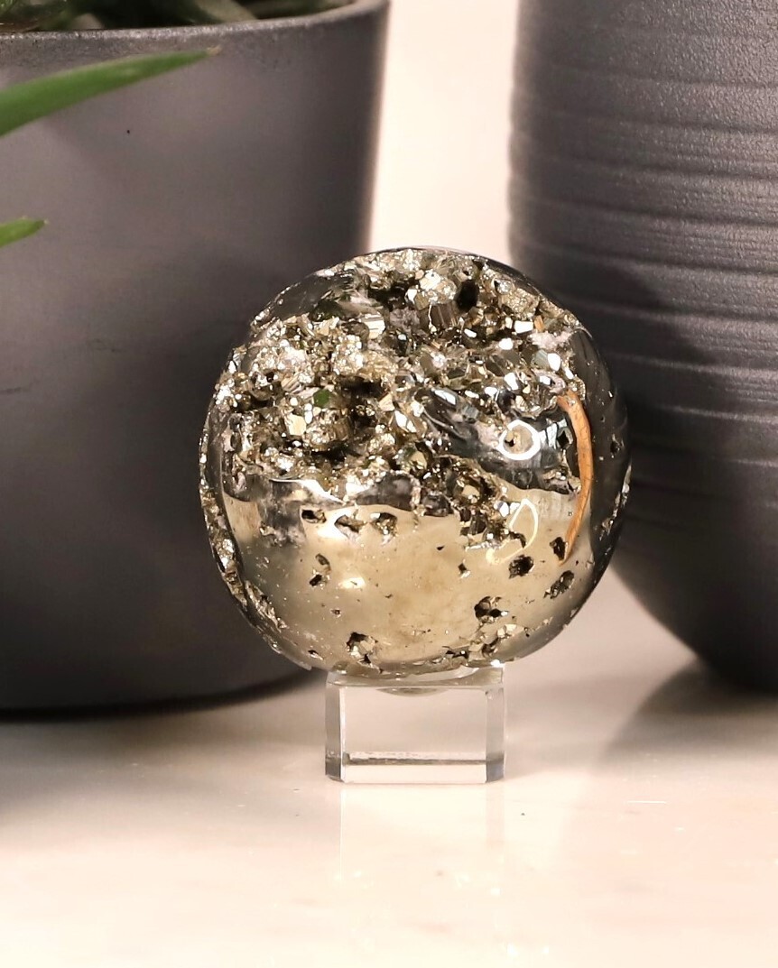 As Pyrite has a high Iron content, avoid putting it into contact with water or liquids as it may lead to rusting or changes in colour. Keep it dry.