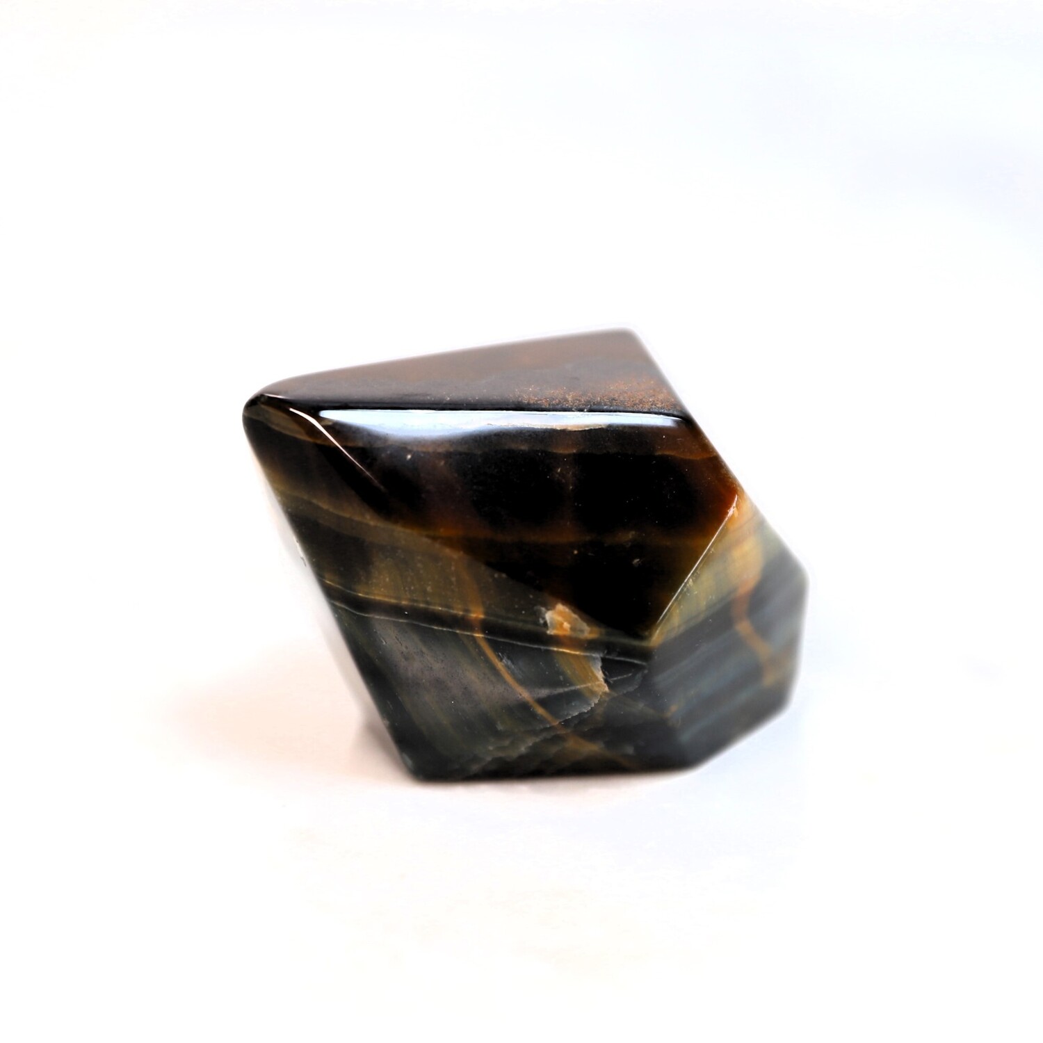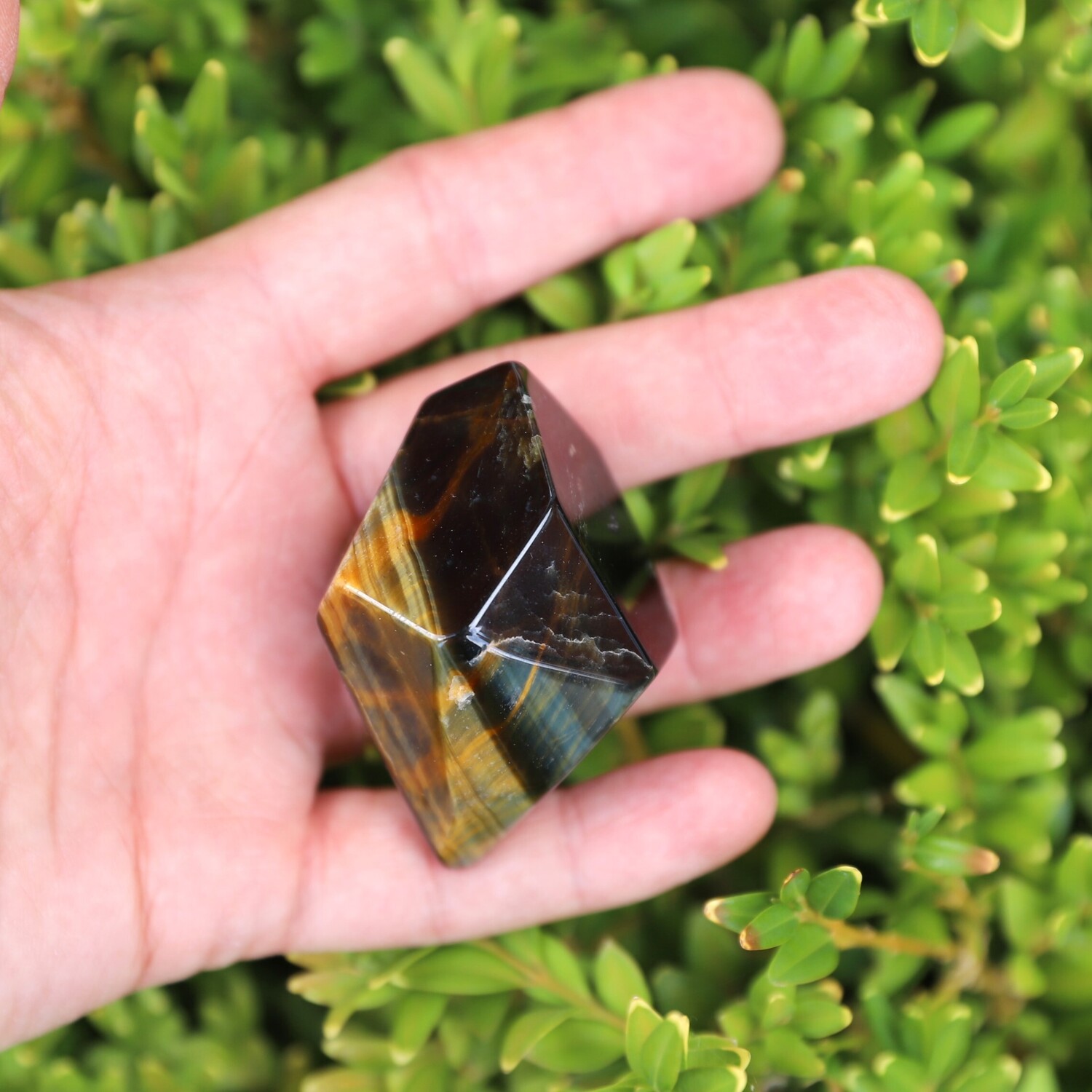 Tigers Eye Palm Stone Faceted sides.
