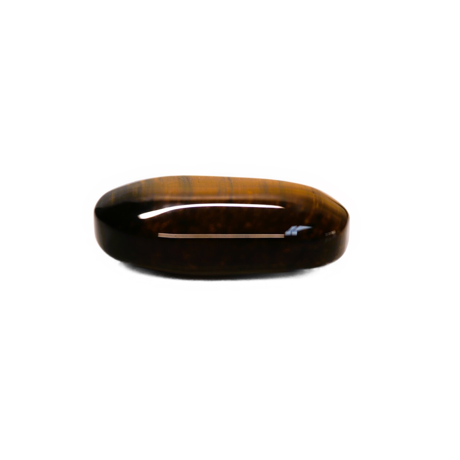 Tigers Eye is often referred to as the ‘shapeshifter’. Its earthy rich colour with golden bands, flecks of golden sand colour and smudges of inky black and brown. It’s a gemstone that displays a chatoyancy (cat’s eye) when polished stone is moved back and forth in light. The best specimens of Tigers Eye are usually cut ‘en cobochon’, in an orientation that shows the best display of chatoyancy.