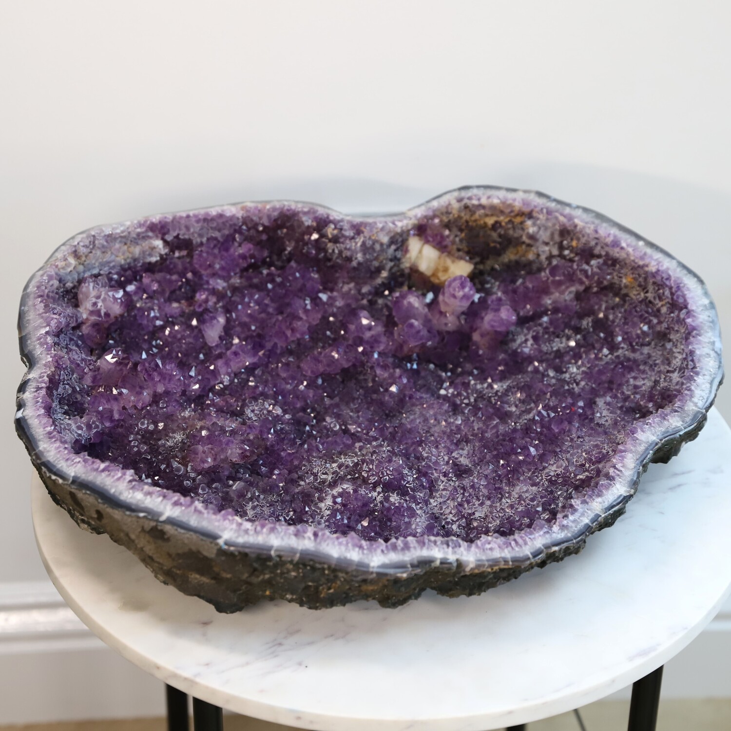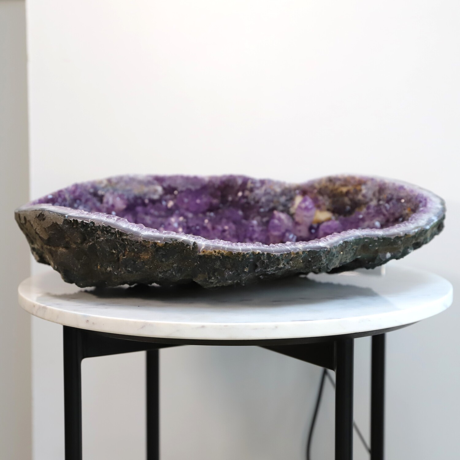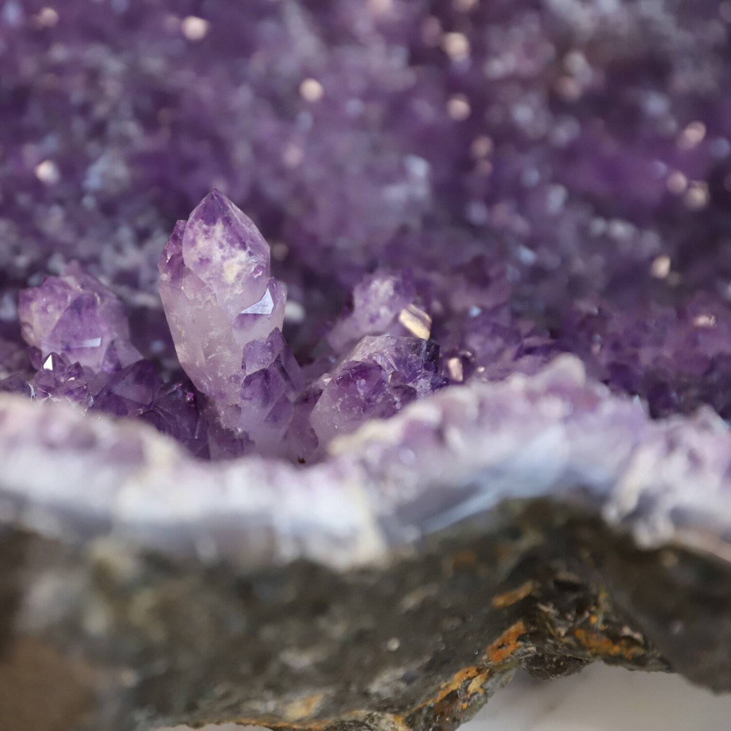 Geology: Amethyst is a variety of Quartz formed in the Earth from a combination of minerals, extreme heat and water, over 130 million years ago. It is found inside pyrogenic volcanic rocks commonly known as Basalts. Amethyst forms in fissures of volcanic rocks where there was once very hot volcanic lava, (50-250°c) silica enriched water, trace amounts (10-100ppm) of ferric iron (Fe3+).
