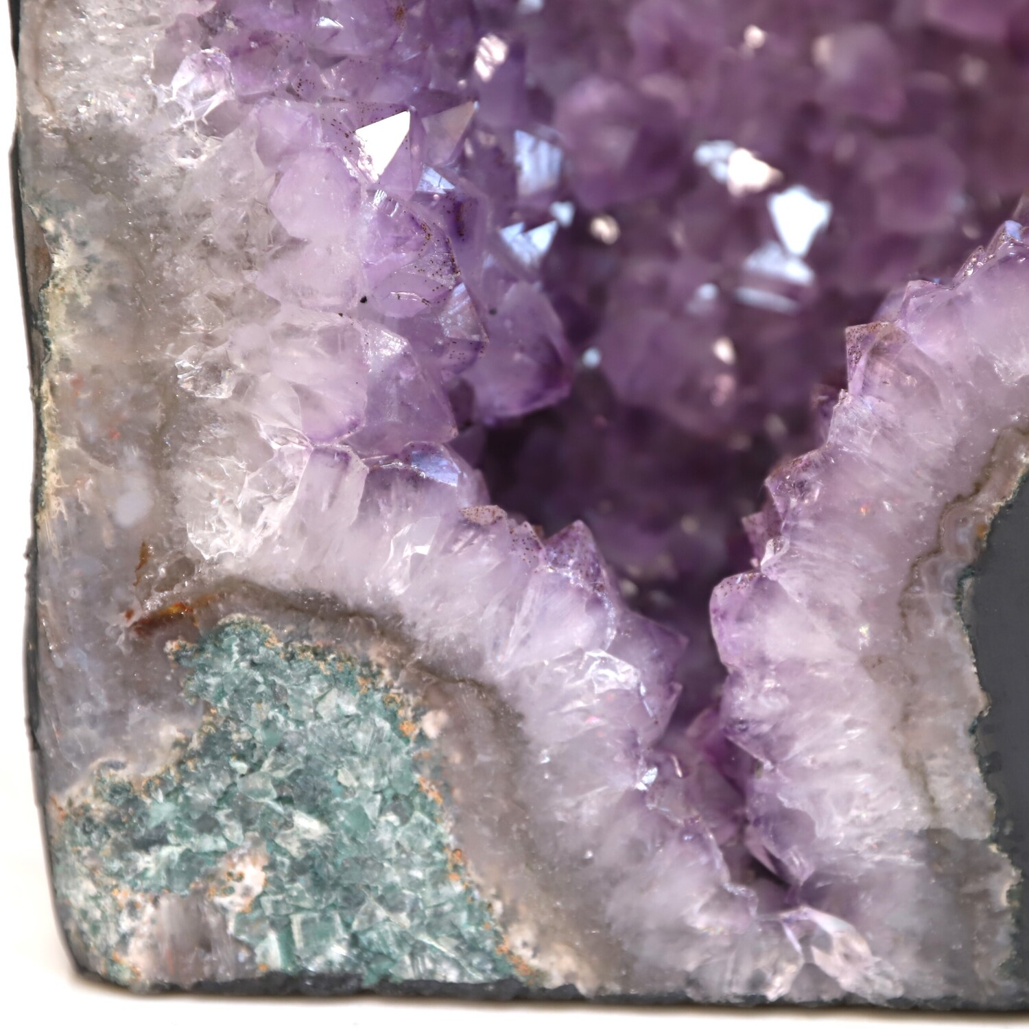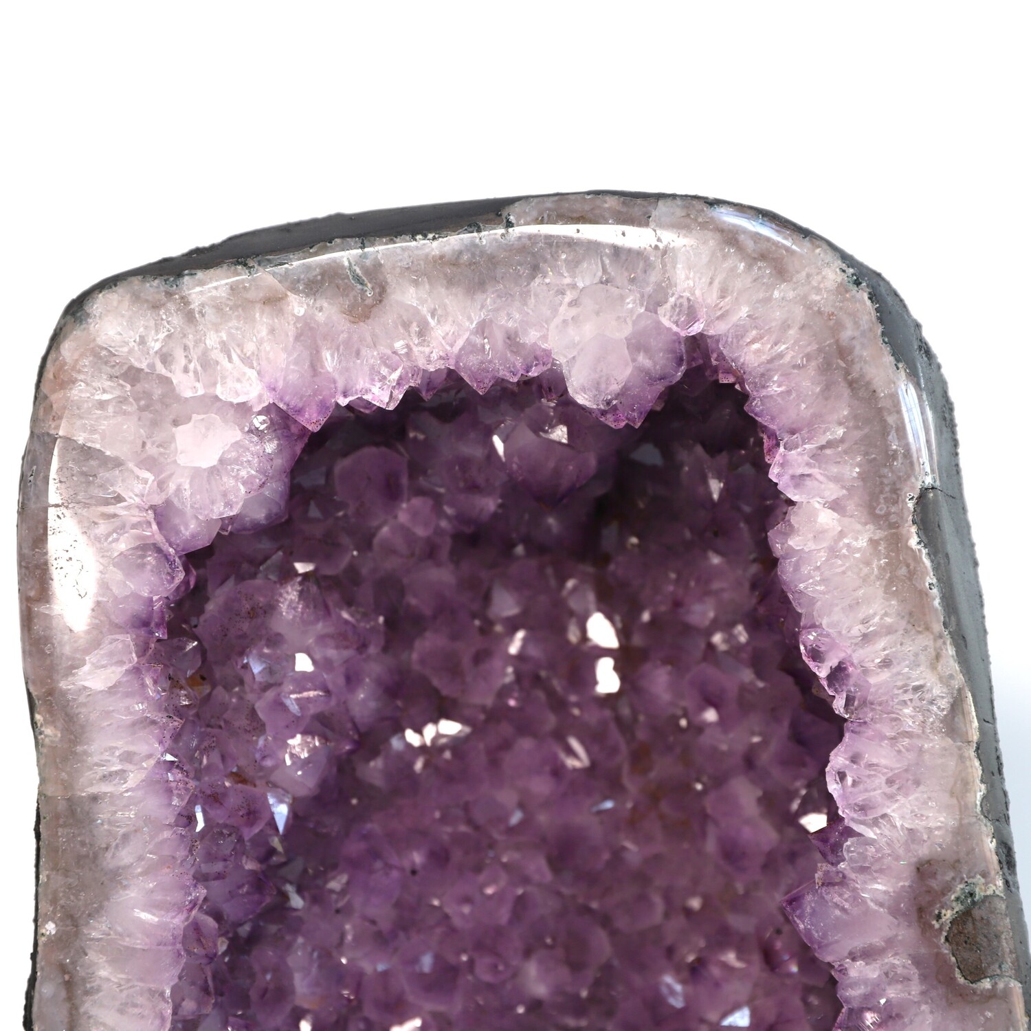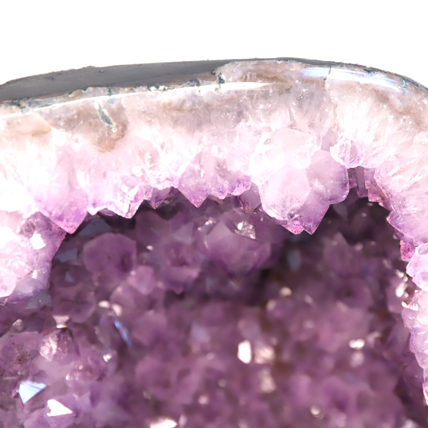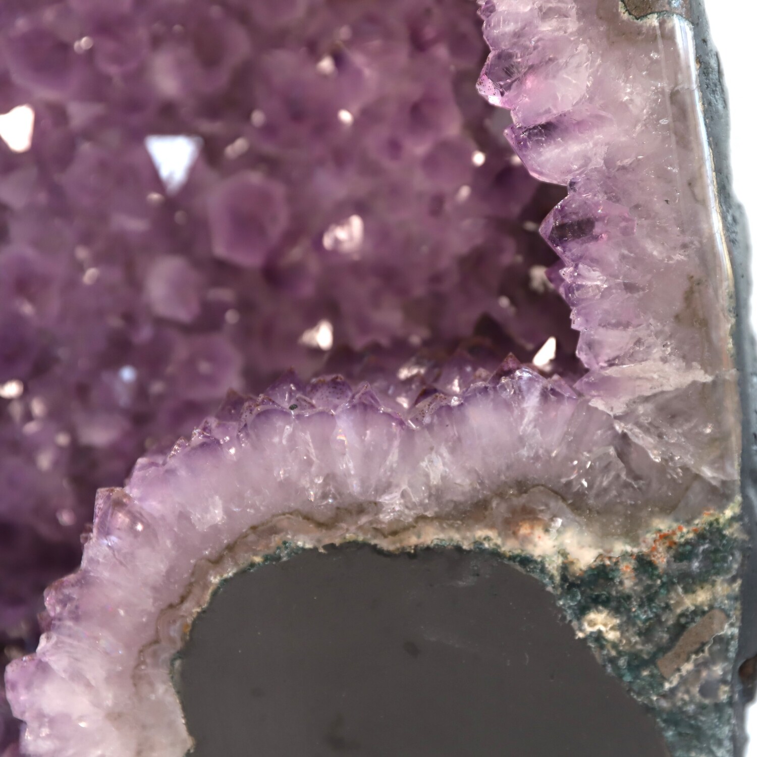 Geology: Amethyst is a variety of Quartz formed in the Earth from a combination of minerals, extreme heat and water, over 130 million years ago. It is found inside pyrogenic volcanic rocks commonly known as Basalts. Amethyst forms in fissures of volcanic rocks where there was once very hot volcanic lava, (50-250°c) silica enriched water, trace amounts (10-100ppm) of ferric iron (Fe3+).