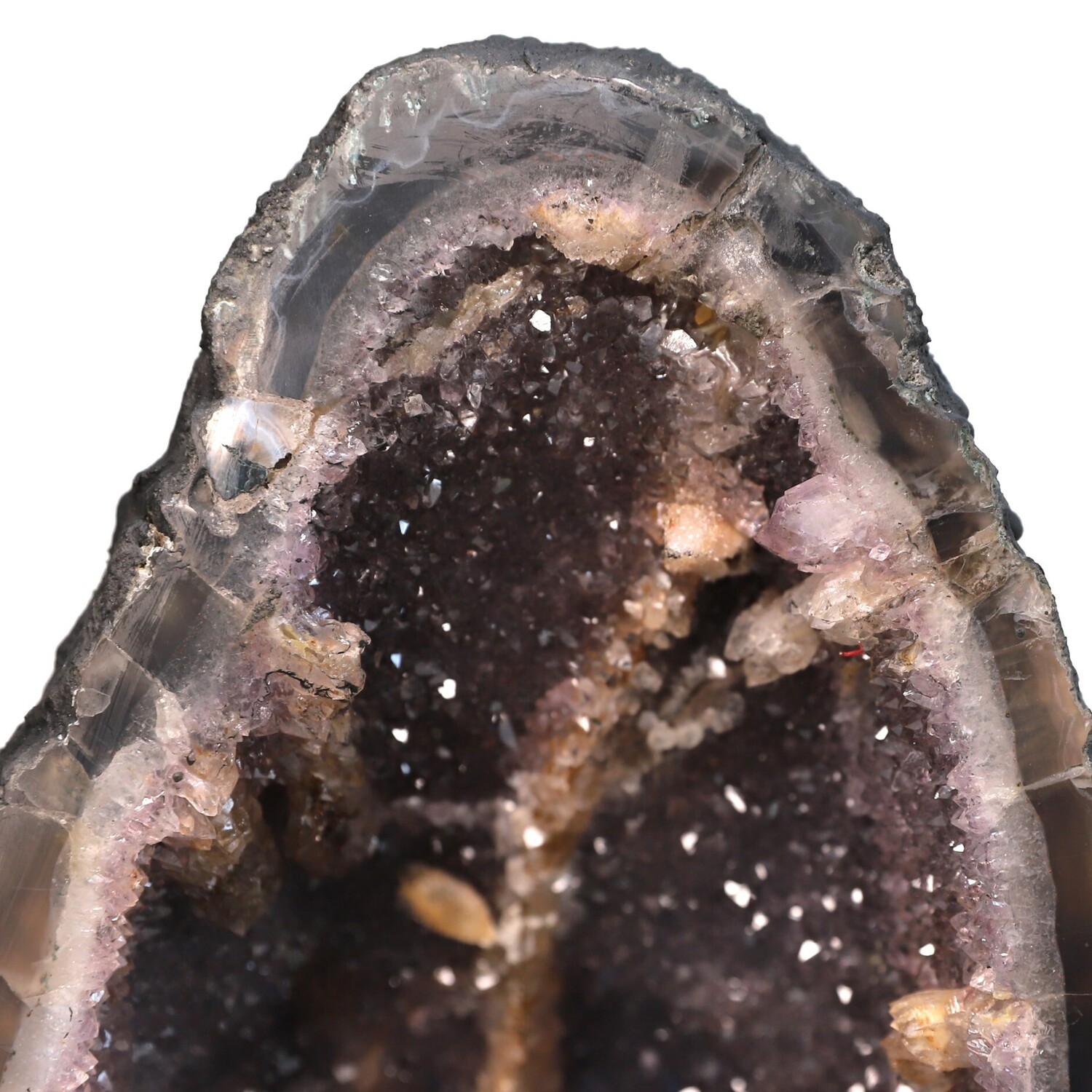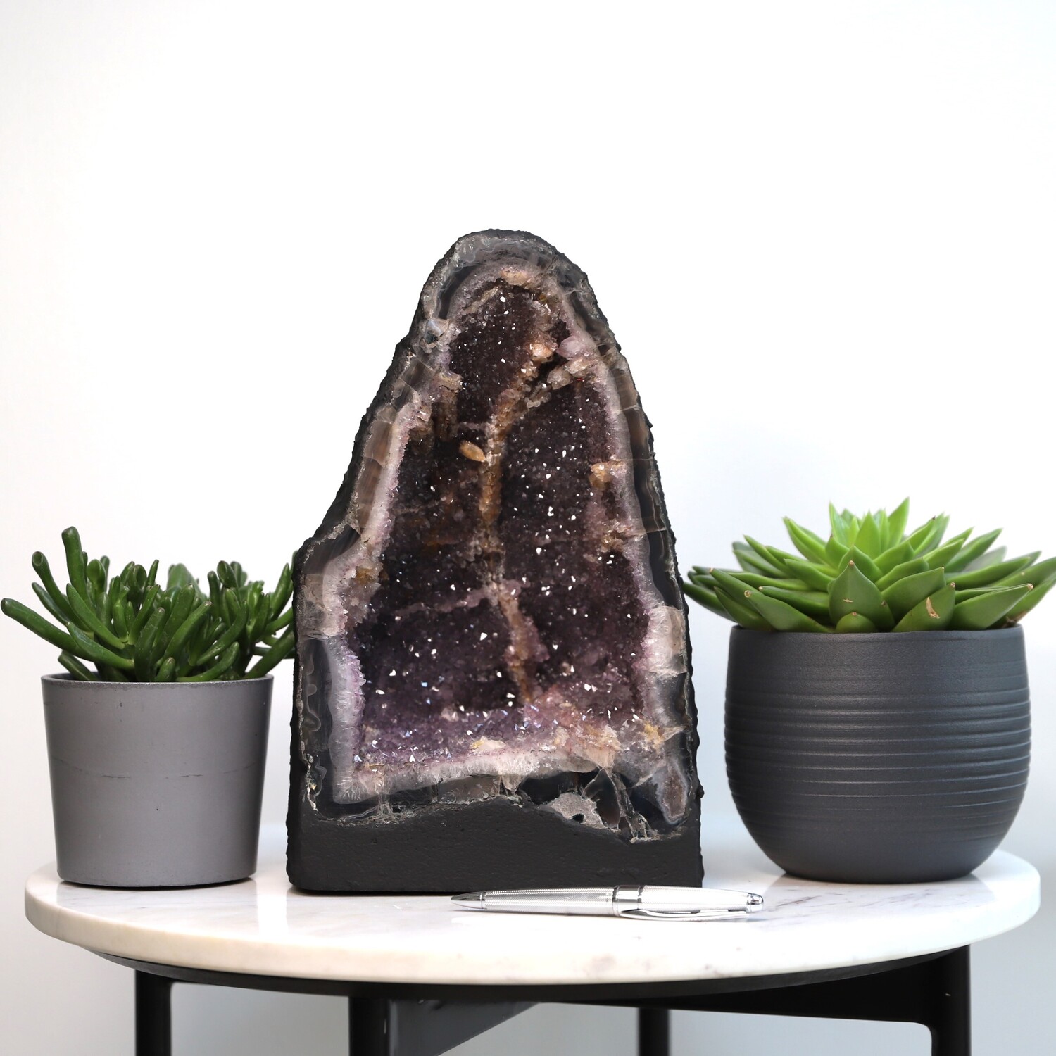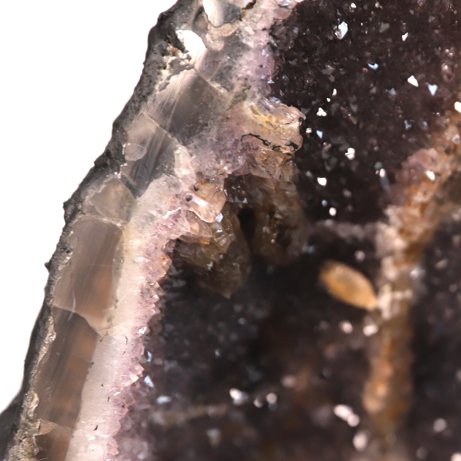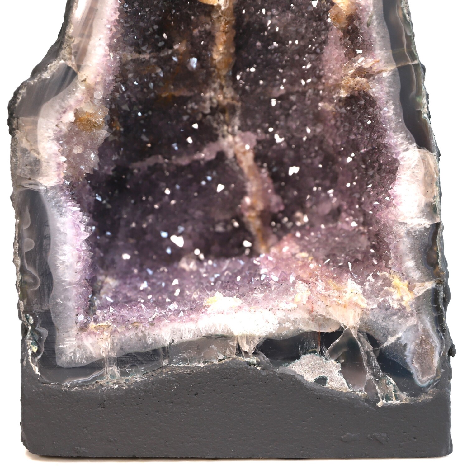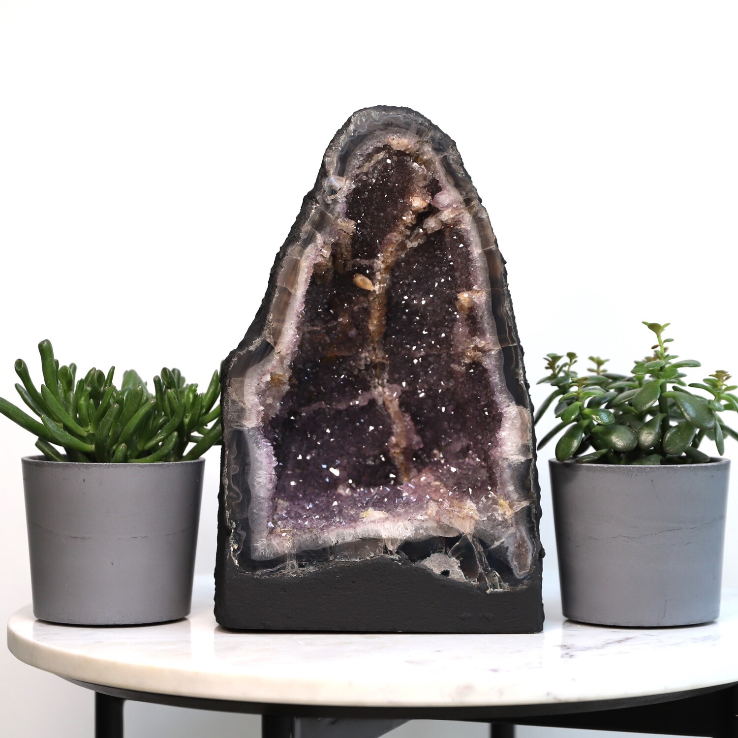 Geology: Amethyst is a variety of Quartz formed in the Earth from a combination of minerals, extreme heat and water, over 130 million years ago. It is found inside pyrogenic volcanic rocks commonly known as Basalts. Amethyst forms in fissures of volcanic rocks where there was once very hot volcanic lava, (50-250°c) silica enriched water, trace amounts (10-100ppm) of ferric iron (Fe3+).