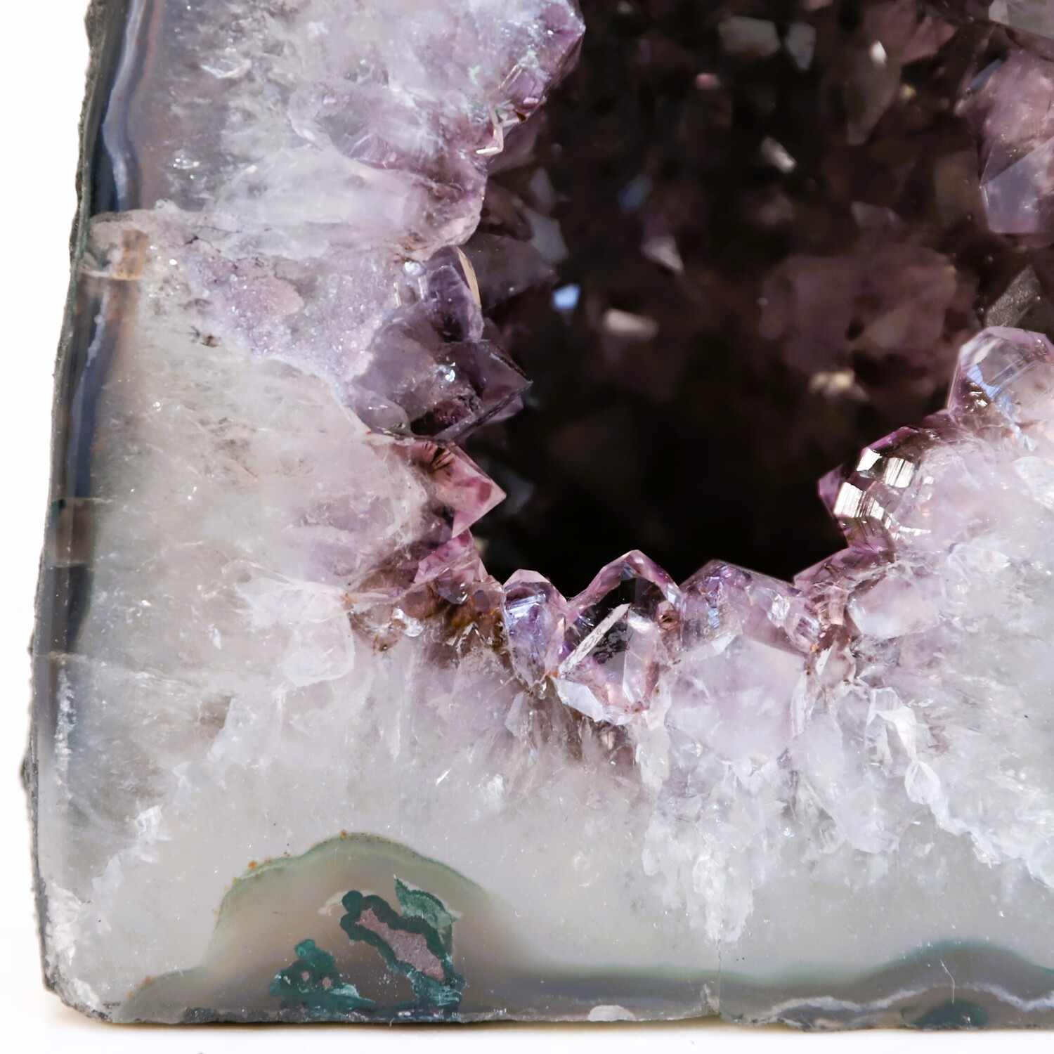Geology: Amethyst is a variety of Quartz formed in the Earth from a combination of minerals, extreme heat and water, over 130 million years ago. It is found inside pyrogenic volcanic rocks commonly known as Basalts. Amethyst forms in fissures of volcanic rocks where there was once very hot volcanic lava, (50-250°c) silica enriched water, trace amounts (10-100ppm) of ferric iron (Fe3+).