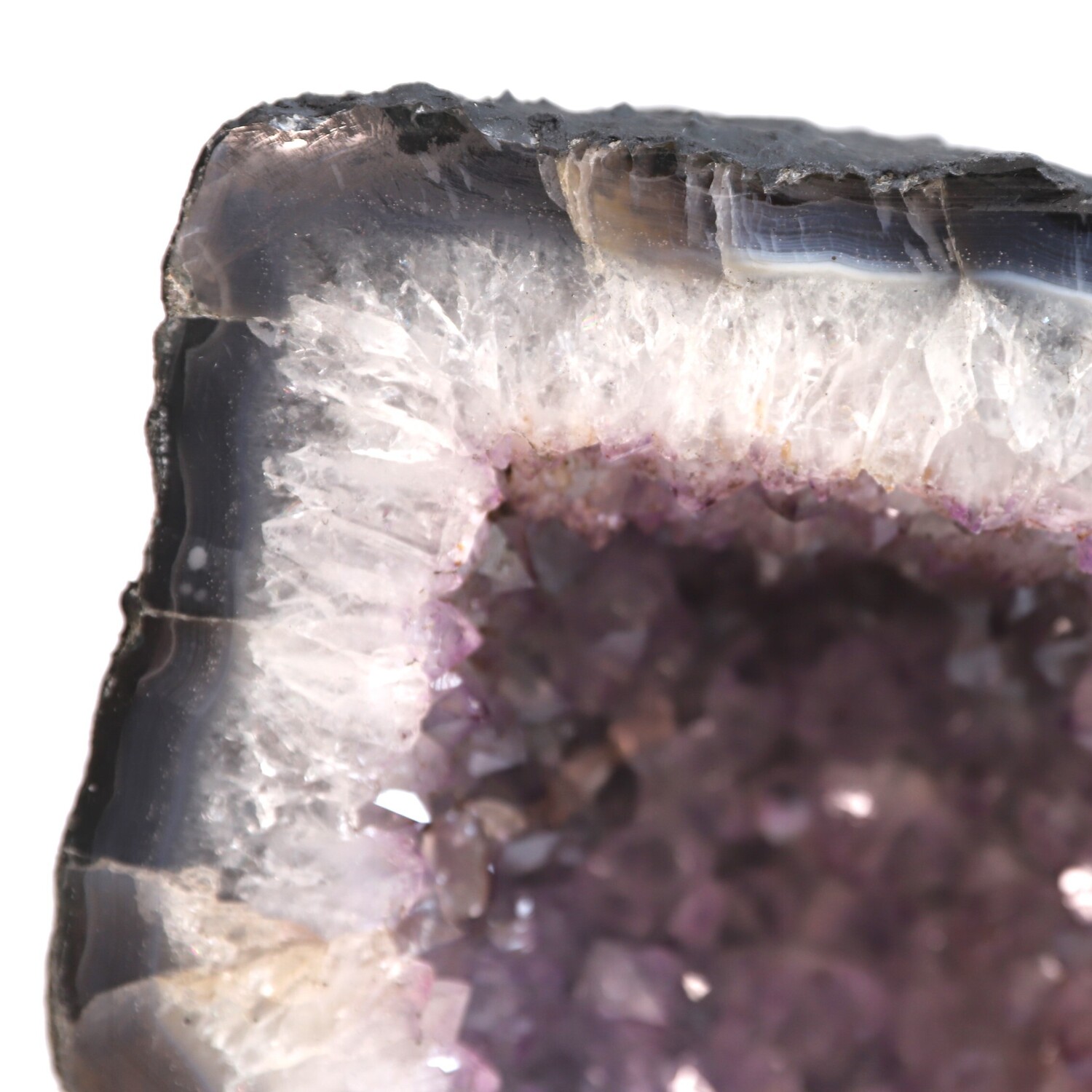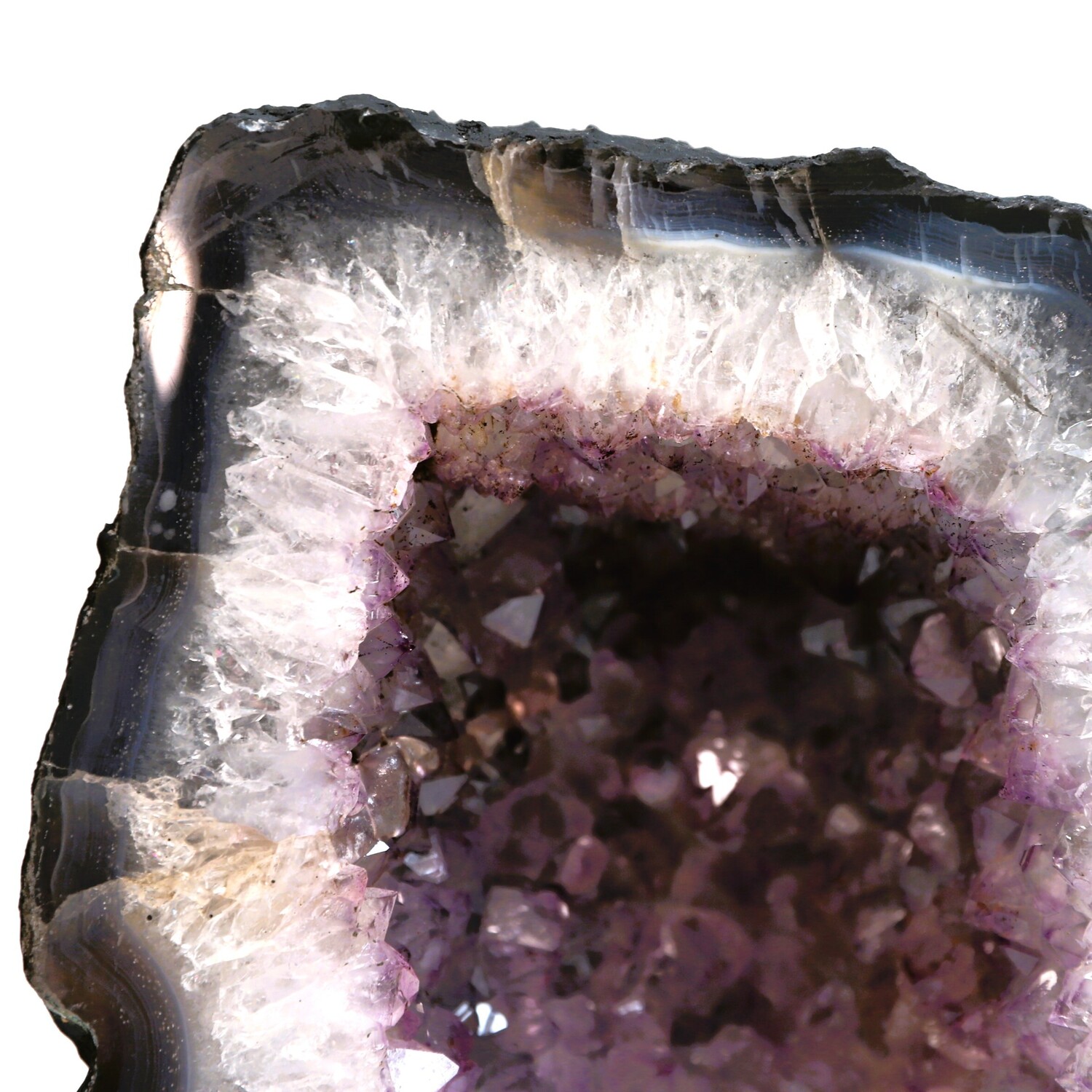 Geology: Amethyst is a variety of Quartz formed in the Earth from a combination of minerals, extreme heat and water, over 130 million years ago. It is found inside pyrogenic volcanic rocks commonly known as Basalts. Amethyst forms in fissures of volcanic rocks where there was once very hot volcanic lava, (50-250°c) silica enriched water, trace amounts (10-100ppm) of ferric iron (Fe3+).
