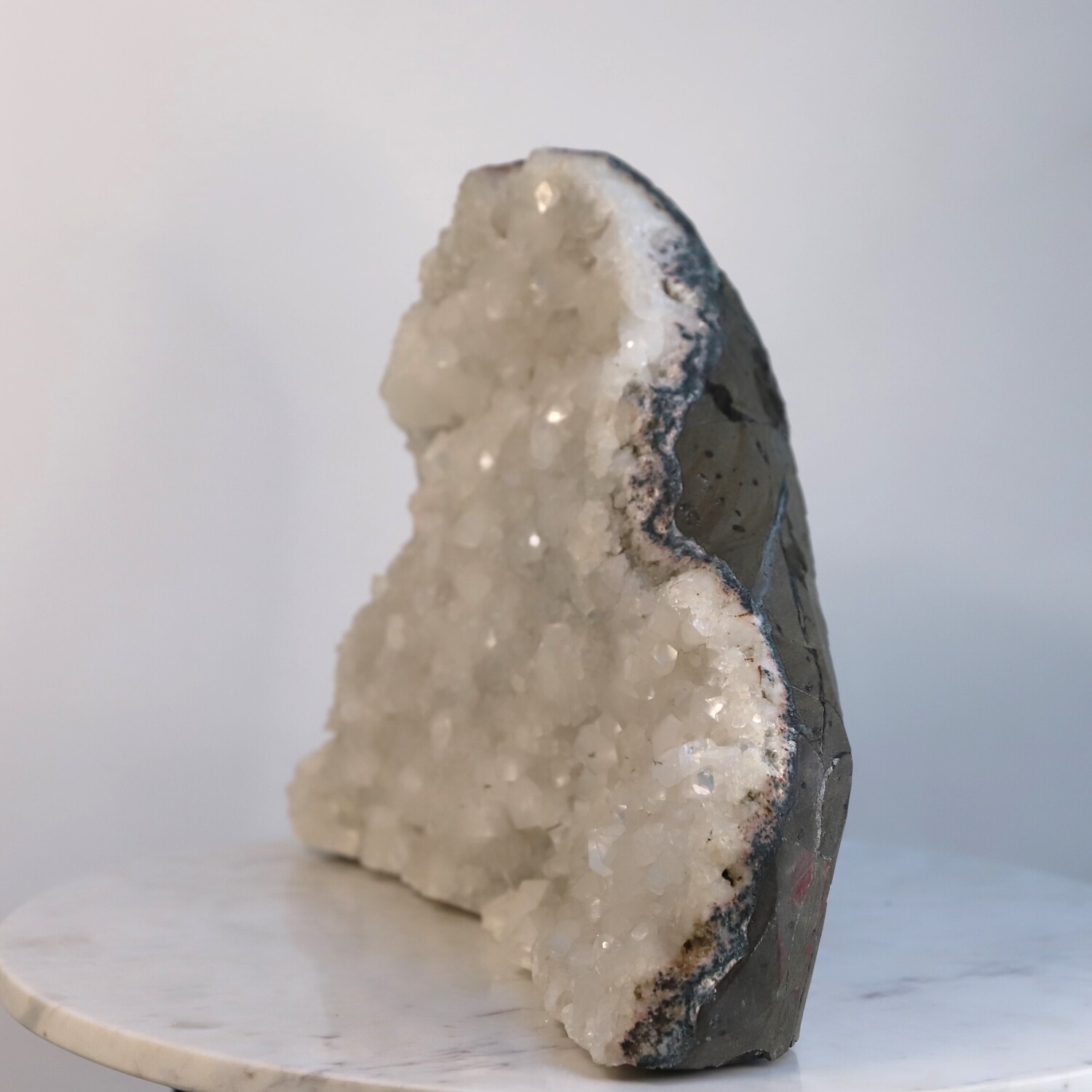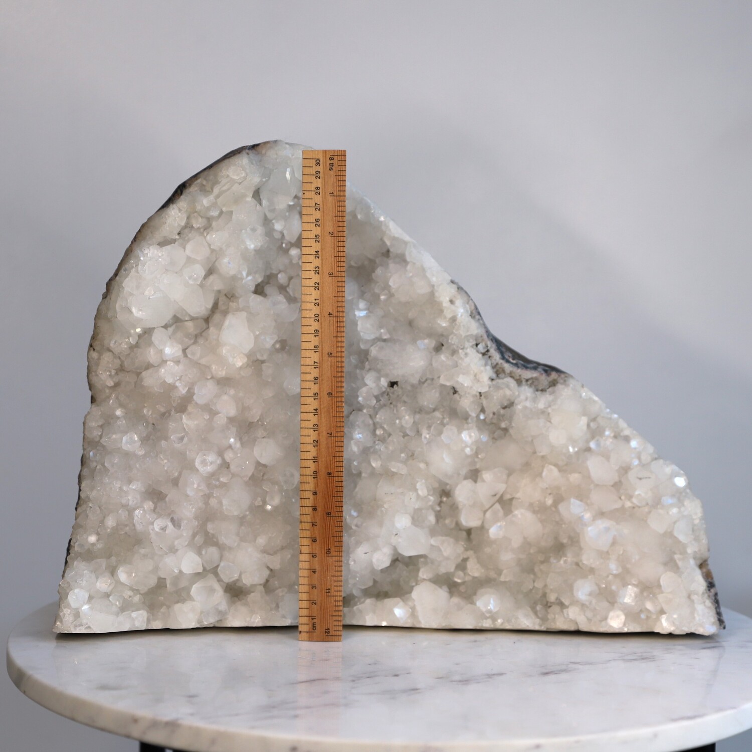 Apophyllite is striking in appearance due to its vitreous and pearly lustre and therefore makes a great ornament in the home. It was used for centuries in the ‘art of gazing’ where a stone was passed down for generations as a mirror for the past so that a person could reflect on the story of their elders. Throughout history, the Tibetans would also this stone to help with breathing problems.