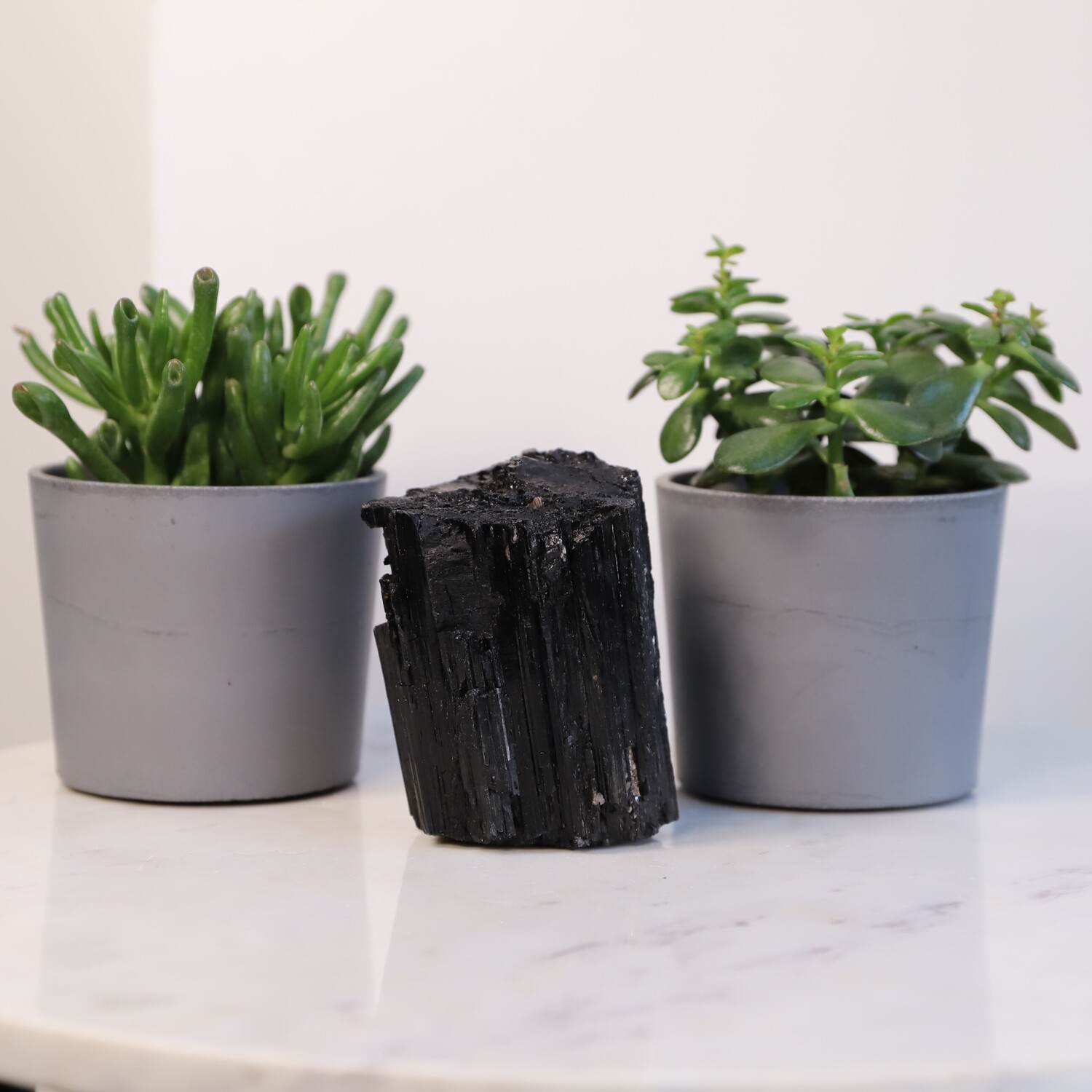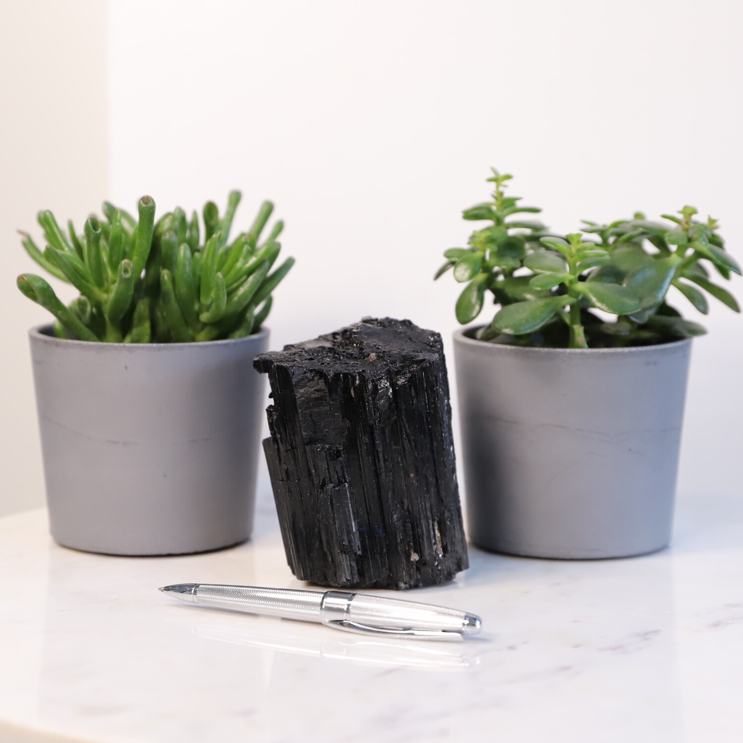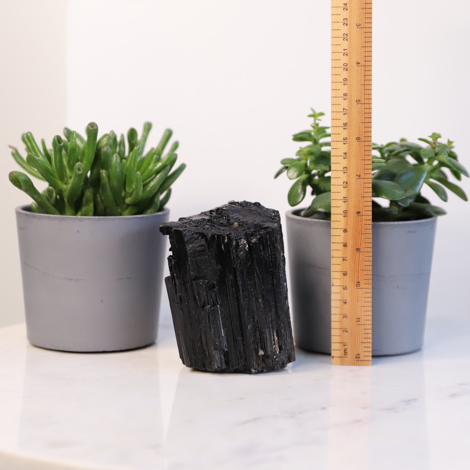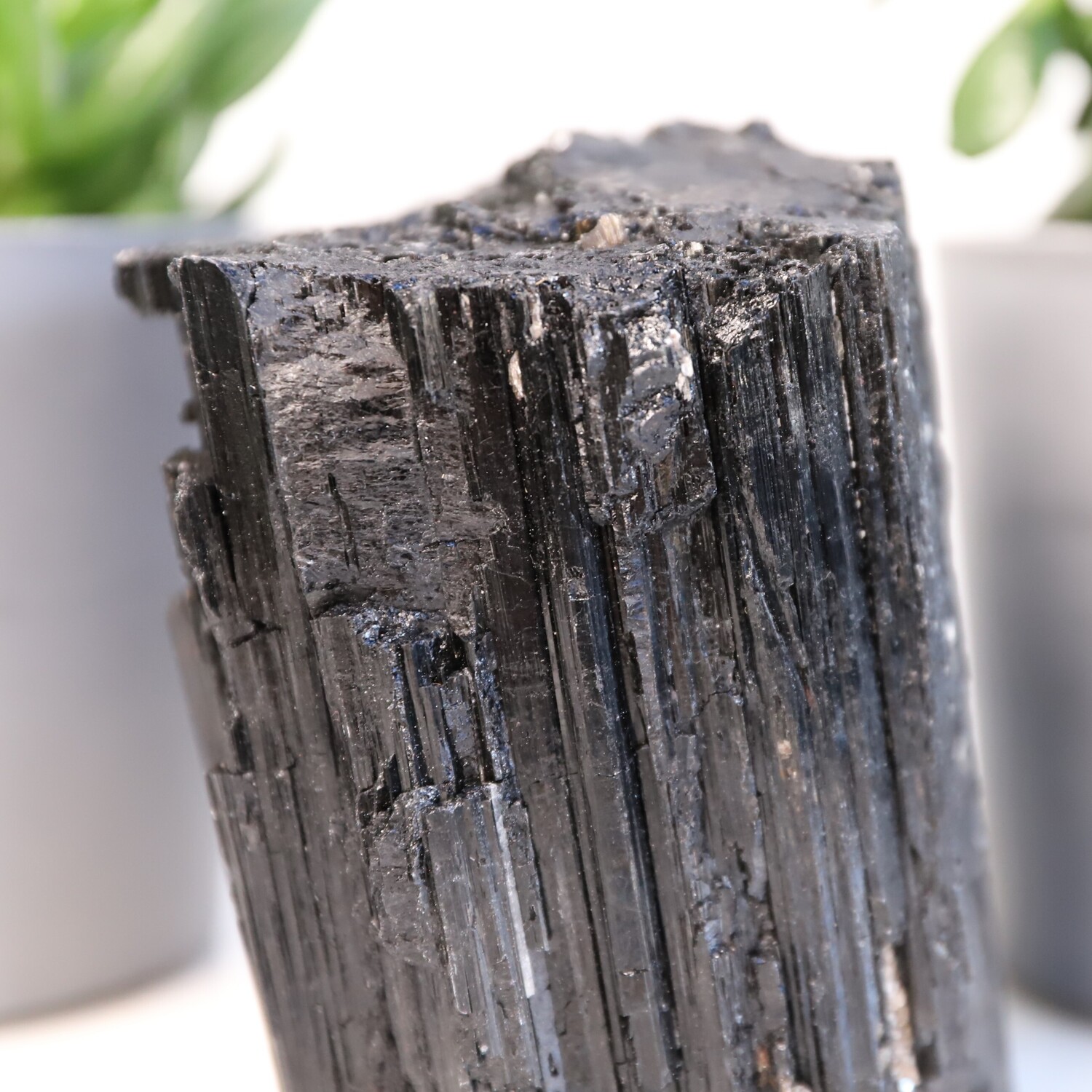 Geology: Black Tourmaline belongs to the trigonal crystal system and part of the aluminium borosilicate family and it specifically includes magnesium, iron and other metal elements that determine its colour. It’s found on every continent in the world. Tourmaline is produced in pegmatites. These are voids deep underground that are filled with hot liquid that is rich in different minerals like iron and silicone. When the liquid begins to cool, the minerals crystalize to form Tourmaline Crystals.