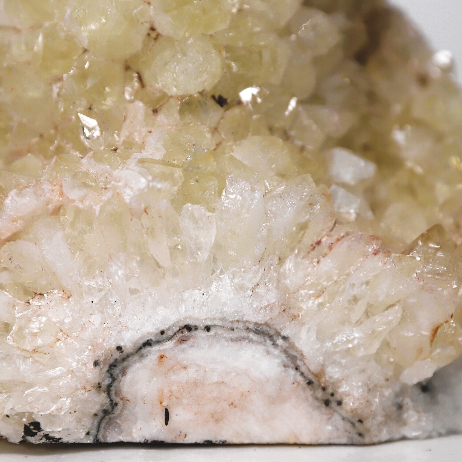 Geology: Citrine is a microcrystalline form of Quartz, as is Amethyst, a mineral based on silicon dioxide. Its physical properties are those of Quartz. Citrine can be found in the same geological environments as smoky quartz and is often intergrown with it. Found in metamorphic and igneous rocks. Contrary to Amethyst, Citrine crystals my show a macro mosaic structure and become very large. It is said to have vitreous lustre which becomes duller in large stones.