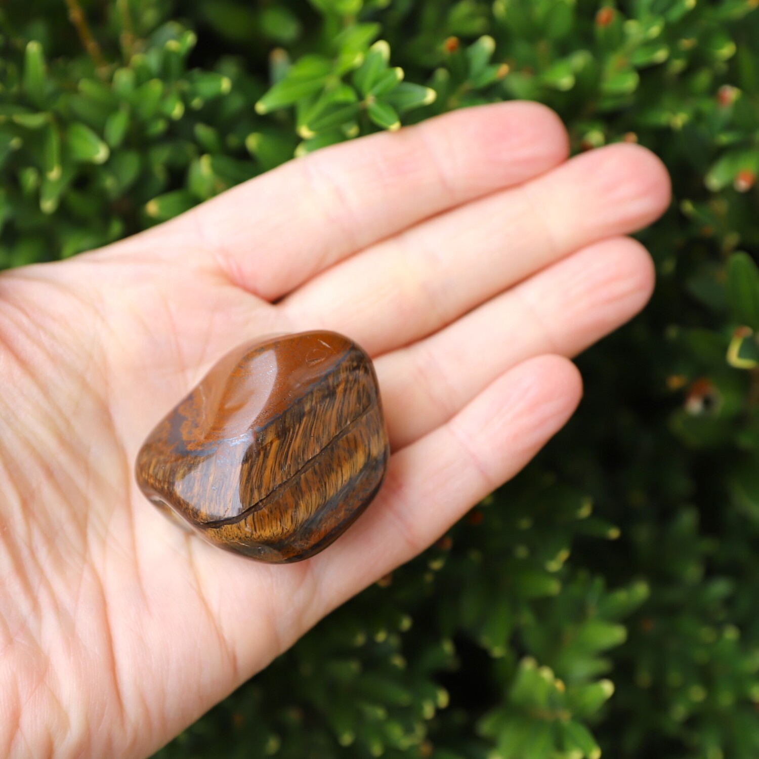 Tigers Eye is often referred to as the ‘shapeshifter’. Its earthy rich colour with golden bands, flecks of golden sand colour and smudges of inky black and brown. It’s a gemstone that displays a chatoyancy (cat’s eye) when polished stone is moved back and forth in light. The best specimens of Tigers Eye are usually cut ‘en cobochon’, in an orientation that shows the best display of chatoyancy.